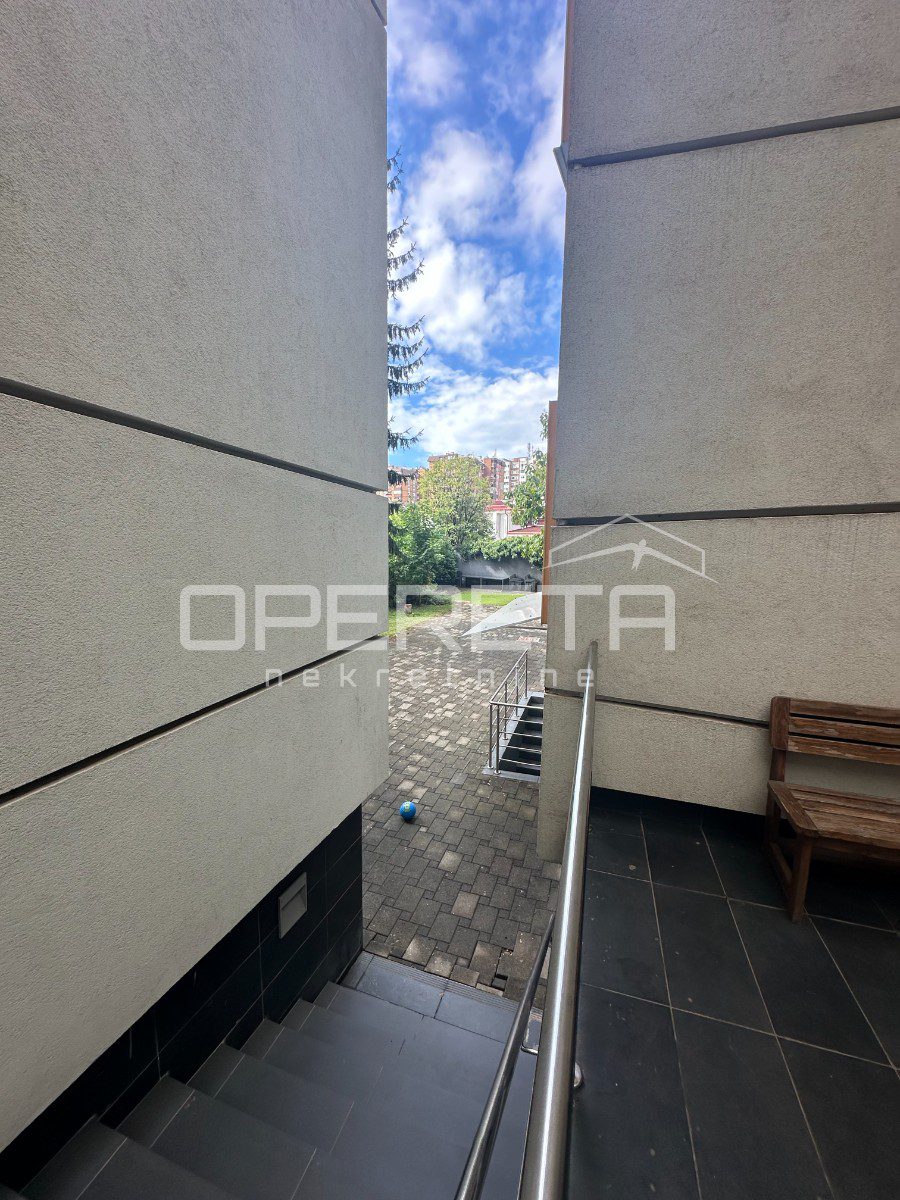 Sastoji se od dvije etaže i pripadaju mu 2 garaže na daljinsko otvaranje-zatvaranje u podzemnoj garaži. Zgrada ima natkriveni zajednički prostor u dvorištu, kao i veliku intimnu zelenu zonu za druženje i vrlo sigurno igralište idealno za malu djecu.