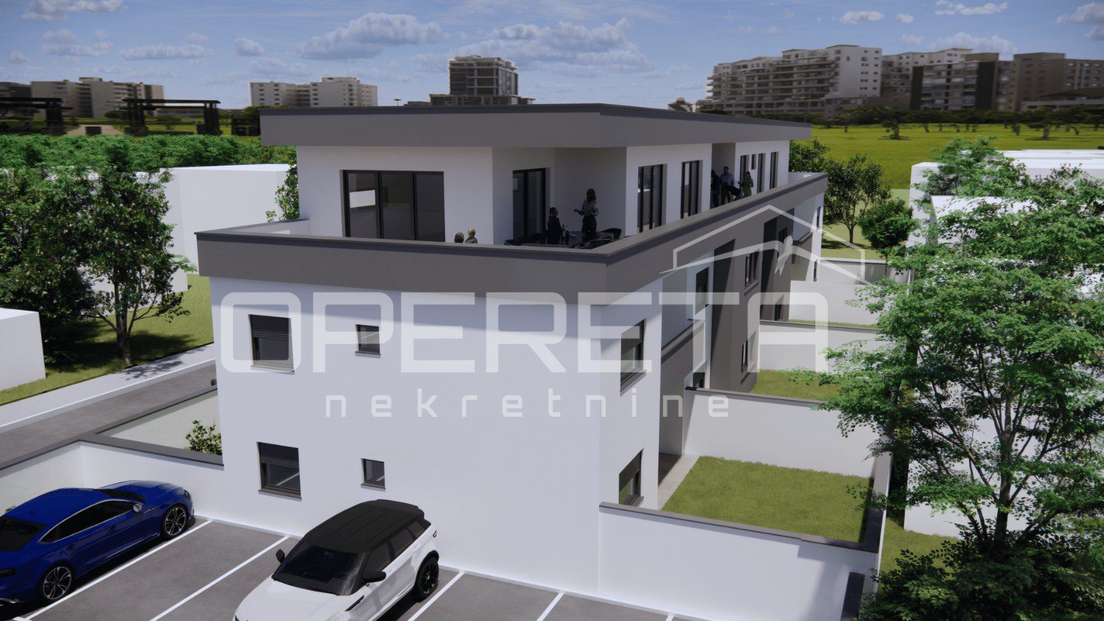 Na odličnoj lokaciji u gradu, novogradnja s useljenjem ljeto/2027.g. urbana vila s predivnim -sobnim stanom u prizemlju kojem pripada i vrt površine 62,30 m (dodatno se plaća).