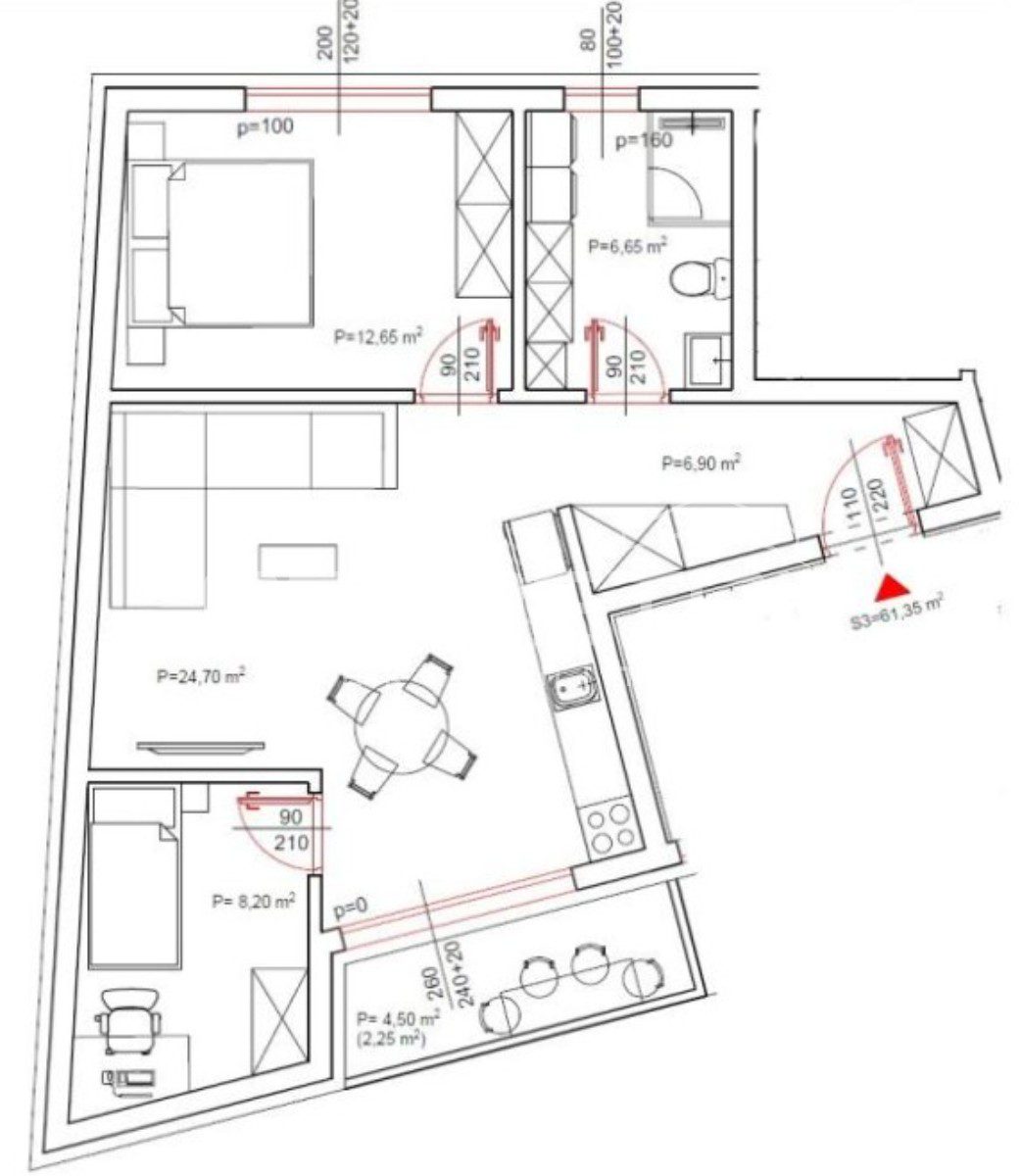 3-SOBAN STAN OD 61,35 m2 . SPREMIŠTE I PARKING, , NATKRIVENA LOĐA.