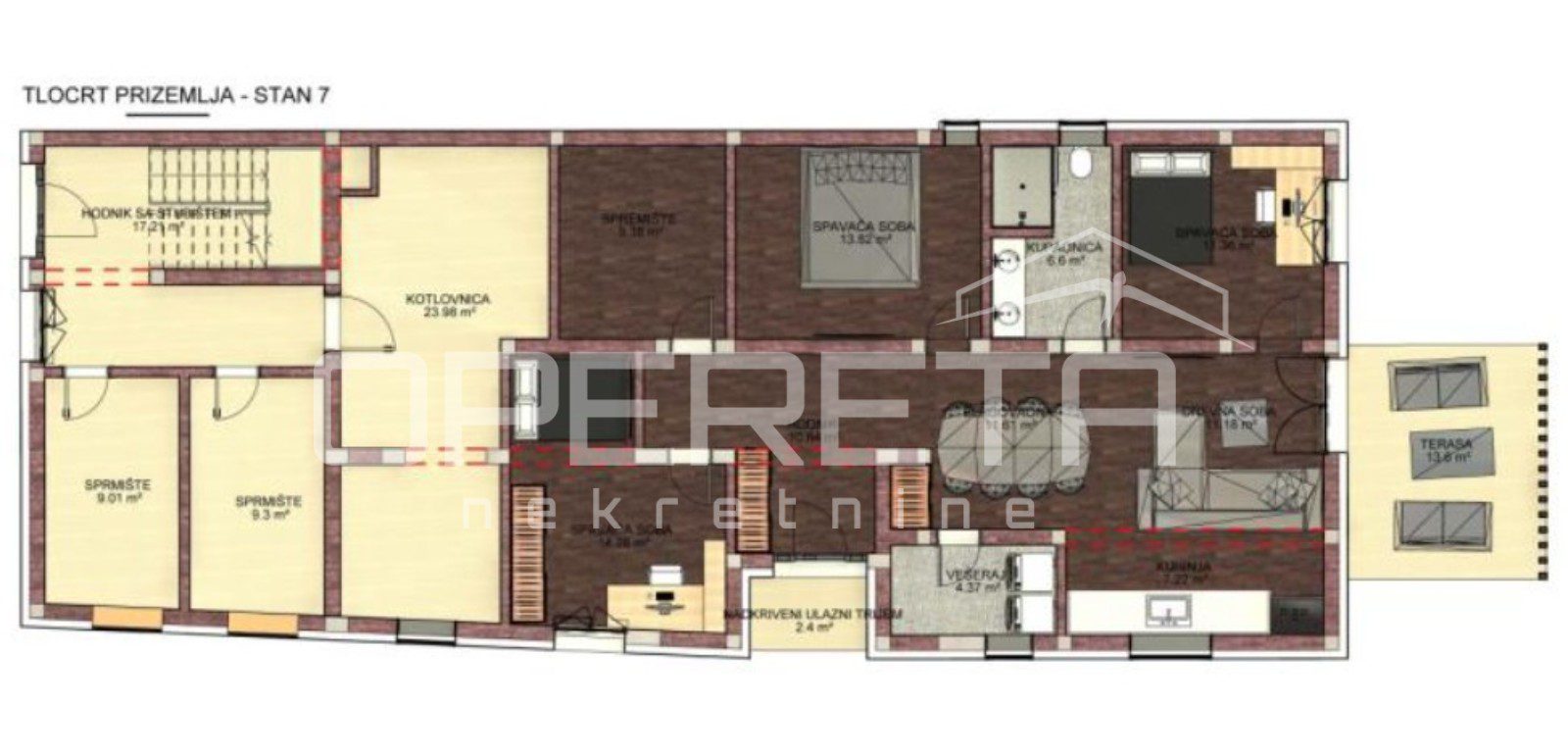 4-soban stan neto stambene površine 105,09 m2 u prizemlju Urbane vile u Kućan Marofu u Varaždinu.