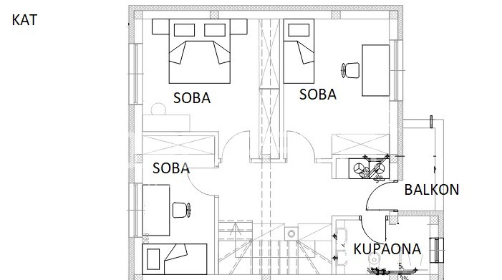 KAT : tri sobe, kupaonica s wc-om, loggia.