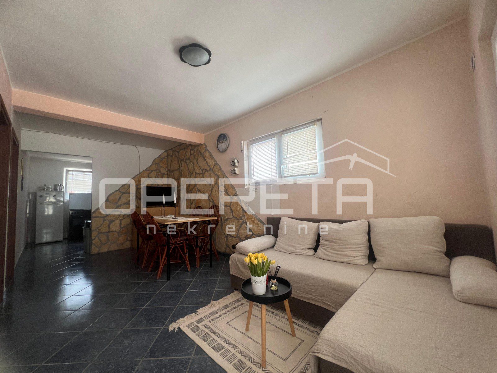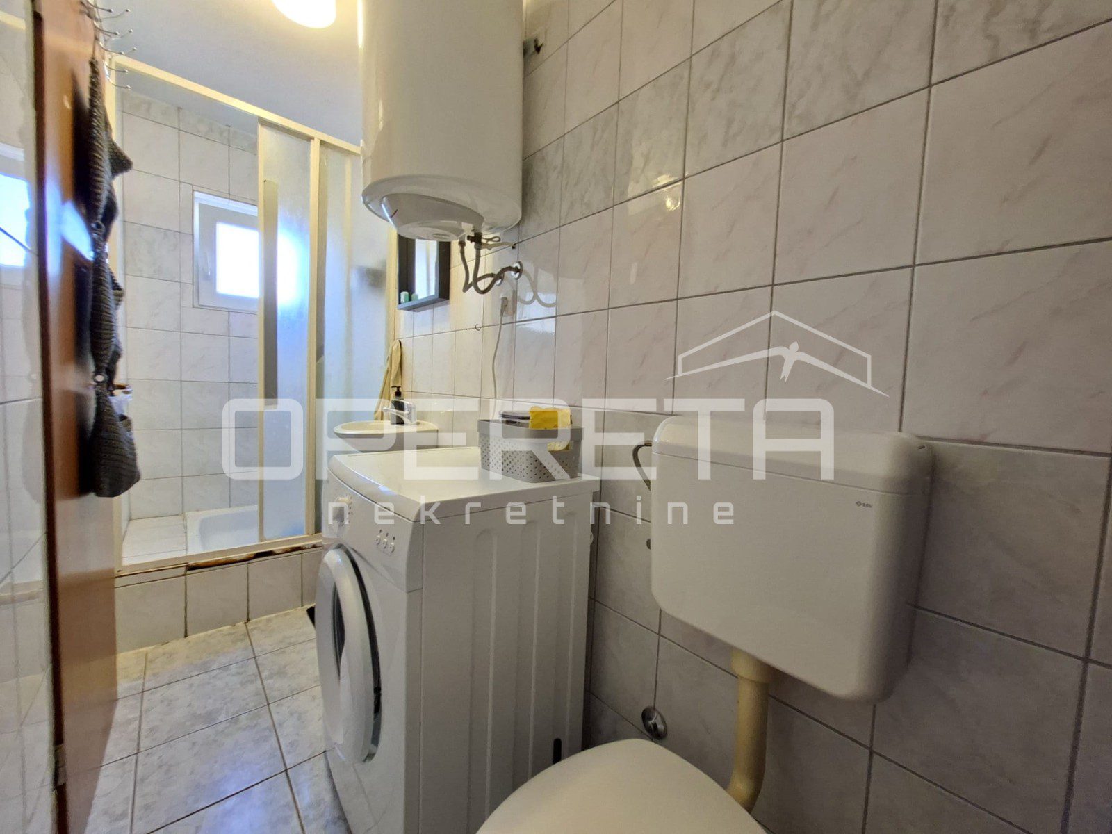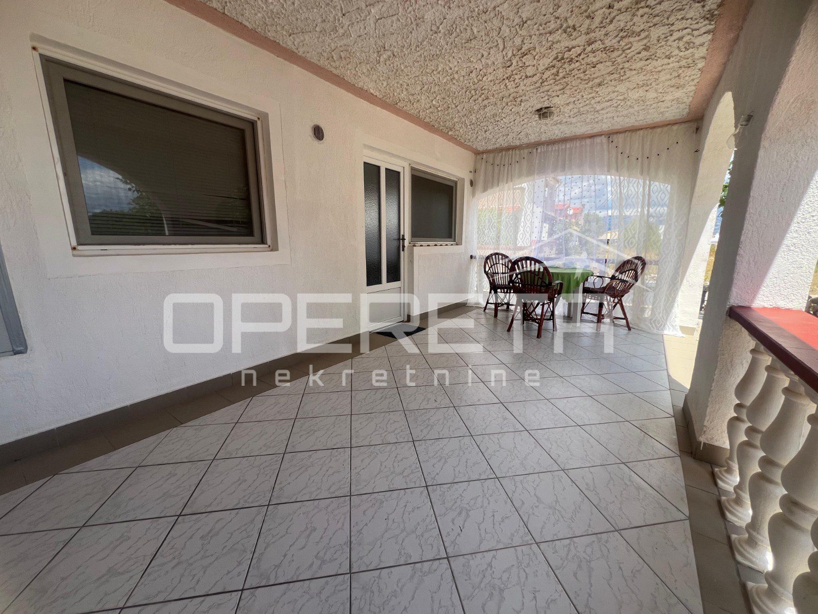 APARTMAN PRODAJA, VIR, Bobovik XVIII, 68m2 brutto / 59 m2 netto dvoiposobni apartman na prizemlju u kući u kojoj se nalaze još 3 apartmana iste veličine. Sastoji se od dvije spavaće sobe, dnevnog boravka koji komunicira sa blagavaonicom i kuhinjom, kupaonice s WC-om. prostrane terase i jednog vanjskog parkirnog mjesta. Apartman se nalazi svega 450m od atraktivne plaže, 30 metara od trgovine, restarana i kafića. Prodaje se opremljen i useljiv. Apartman nije etažiran shodno čemu je kupnja moguća isključivo gotovinom. PREPORUČUJEMO!