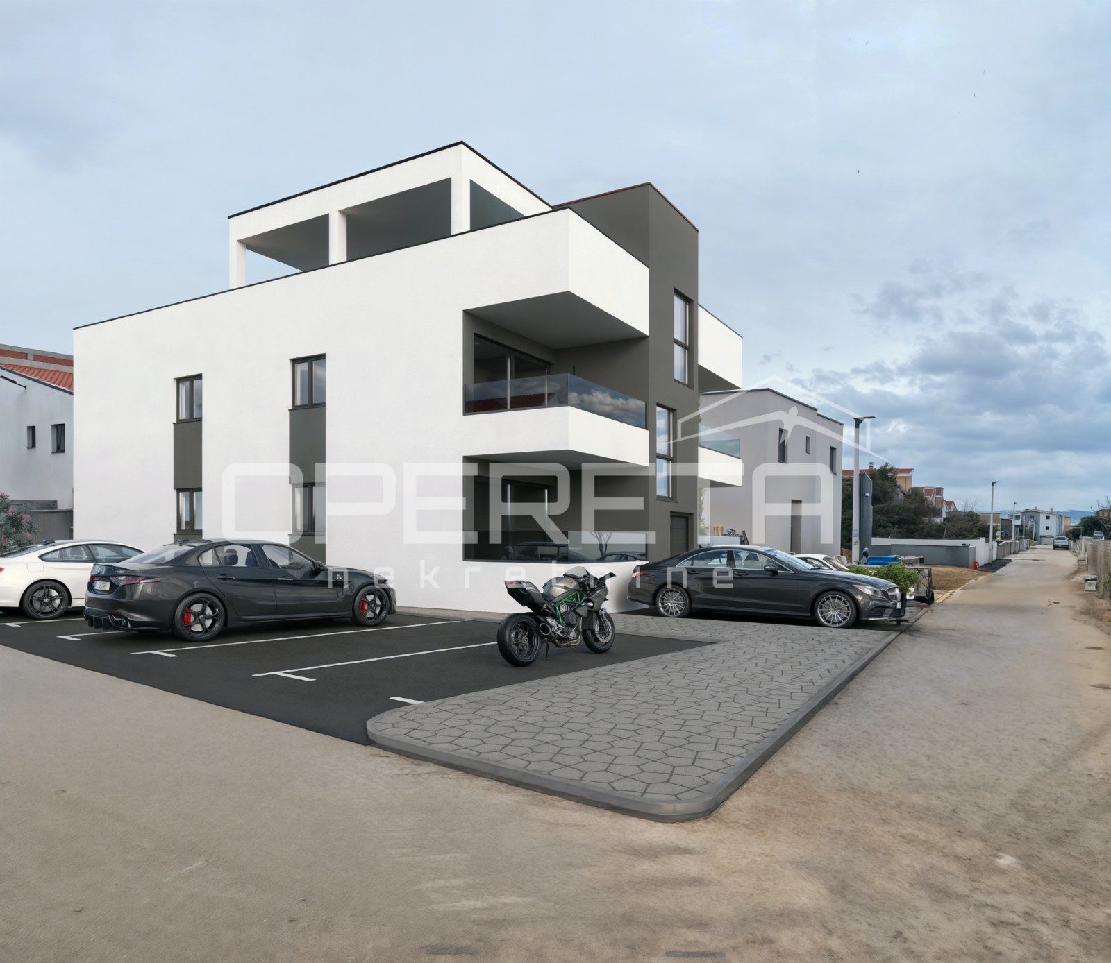 Kvalitetno građen prizemni stan/apartman u zgradi s ukupno 4 stana, s prekrasnim panoramskim pogledom na more, na jedinstvenoj lokaciji udaljenoj 350 m od plaže. Svijetao, prozračan (primarne orijentacije I-Z) i funkcionalnog tlocrta sastoji se od “open space” prostranog dnevnog boravka s kuhinjom i blagovaonicom te izlazom na natkrivenu terasu preko podizno-klizne staklene stijene, 2 spavaće sobe, kupaonice s wc-om, tehničke prostorije i hodnika, a pripadaju mu i 2 vanjska parkirna mjesta te dvorište/vrt BRP 61 m2 (sve uključeno u cijenu). Visoka energetska učinkovitost ( razred A+), kvalitetan projekt, gradnja i oprema: 3-slojna pvc stolarija, električne rolete, protuprovalna vrata, podno grijanje u kupaonici, vrhunska sanitarna oprema, jedna vanjska i 3 unutarnje klima jedinice i dr..