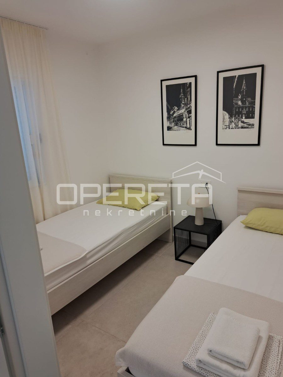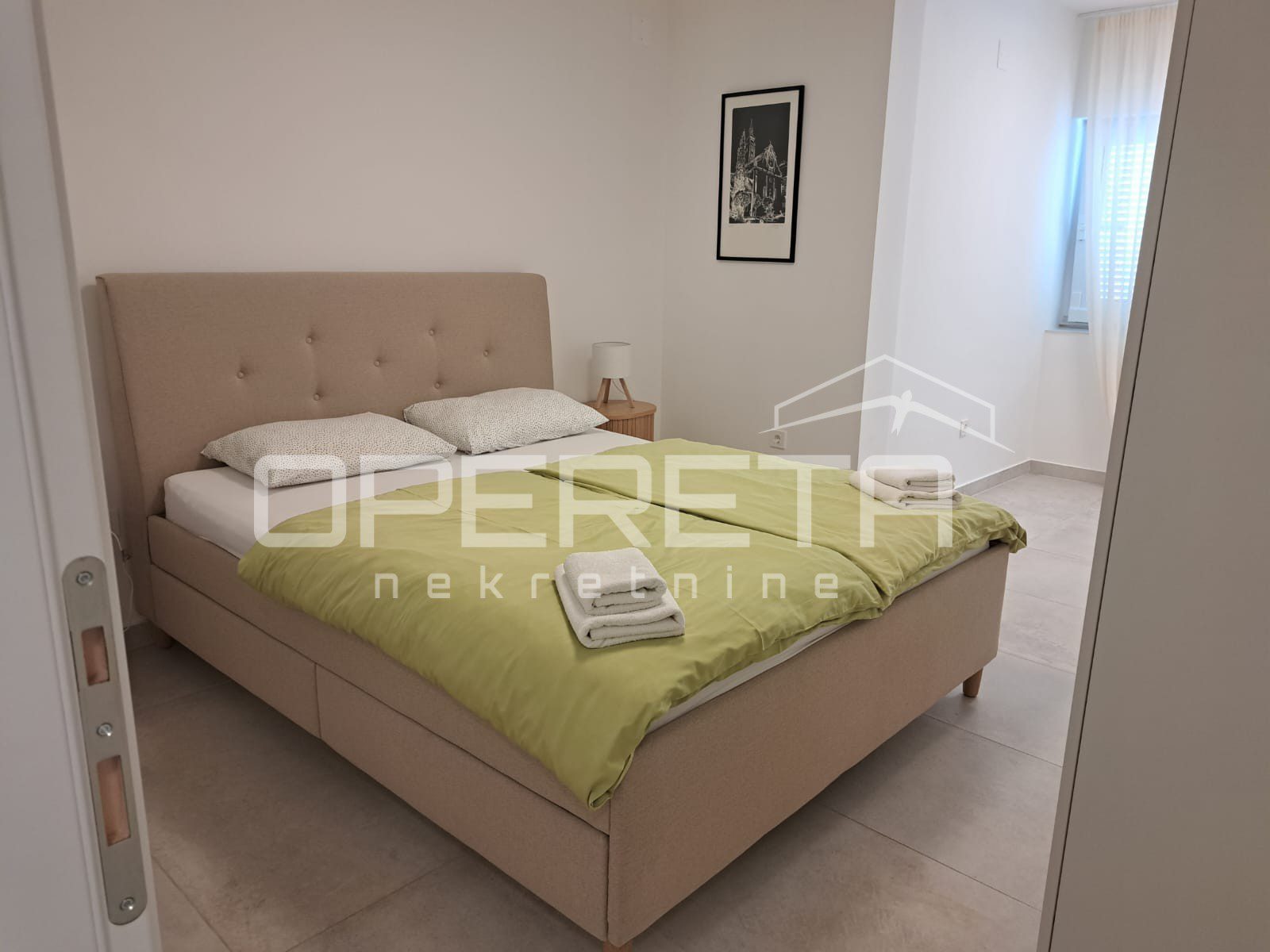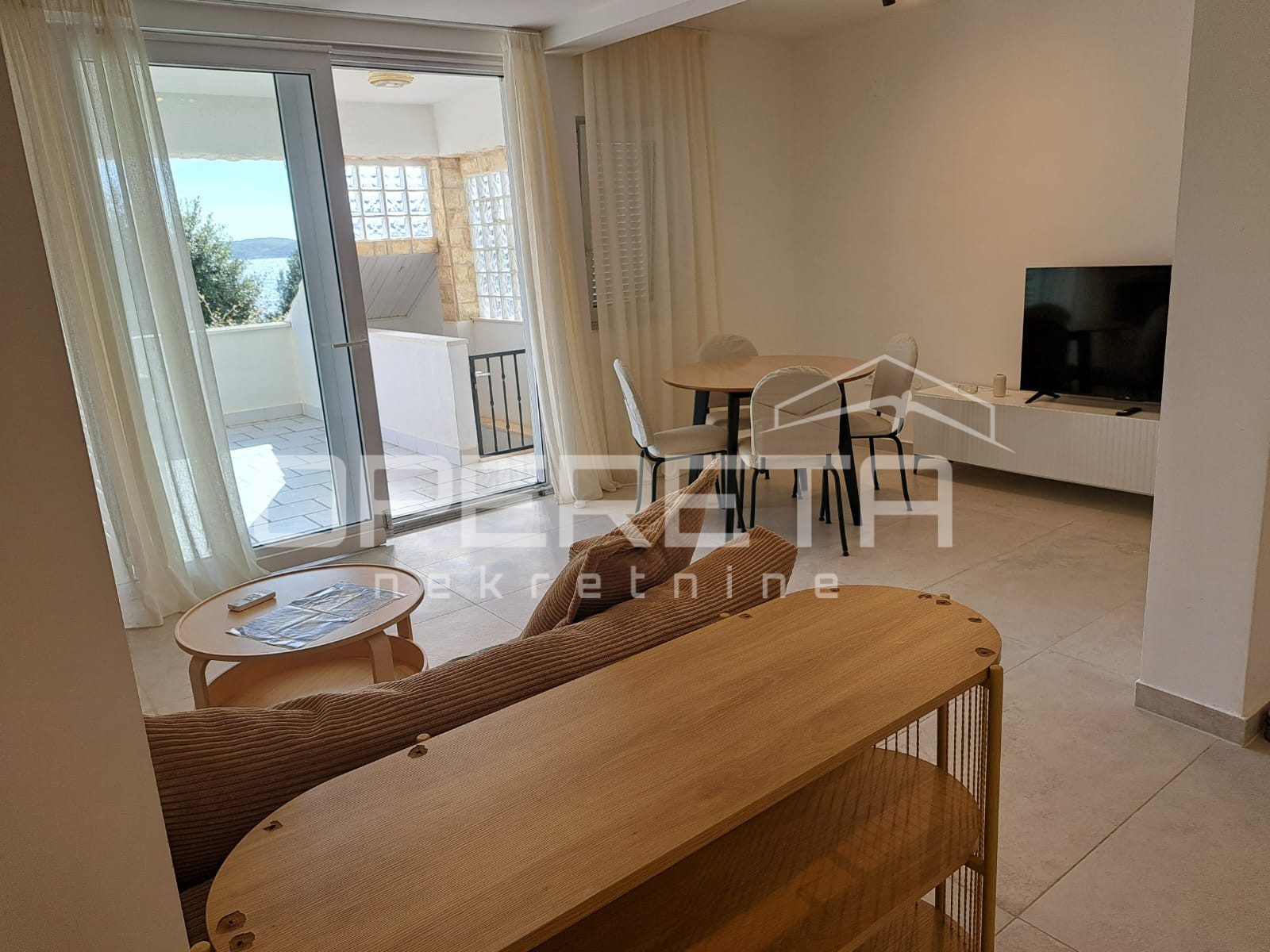 U prizemlju urbane vile ,koja se nalazi u neposrednoj blizini mora u Visu, prodaje se stan površine 60m2. Stan se sastoji od dnevnog boravka s kuhinjom i blagovaonicom, dvije spavaće sobe i kupaonice. Stan ima izlaz na natkrivenu terasu od 15 m2 ispod koje se nalazi dječje igralište i pripada mu vrt od 90 m2 sa roštiljem i solarnim tušem. Uz stan dolazi i jedno parkirno mjesto.