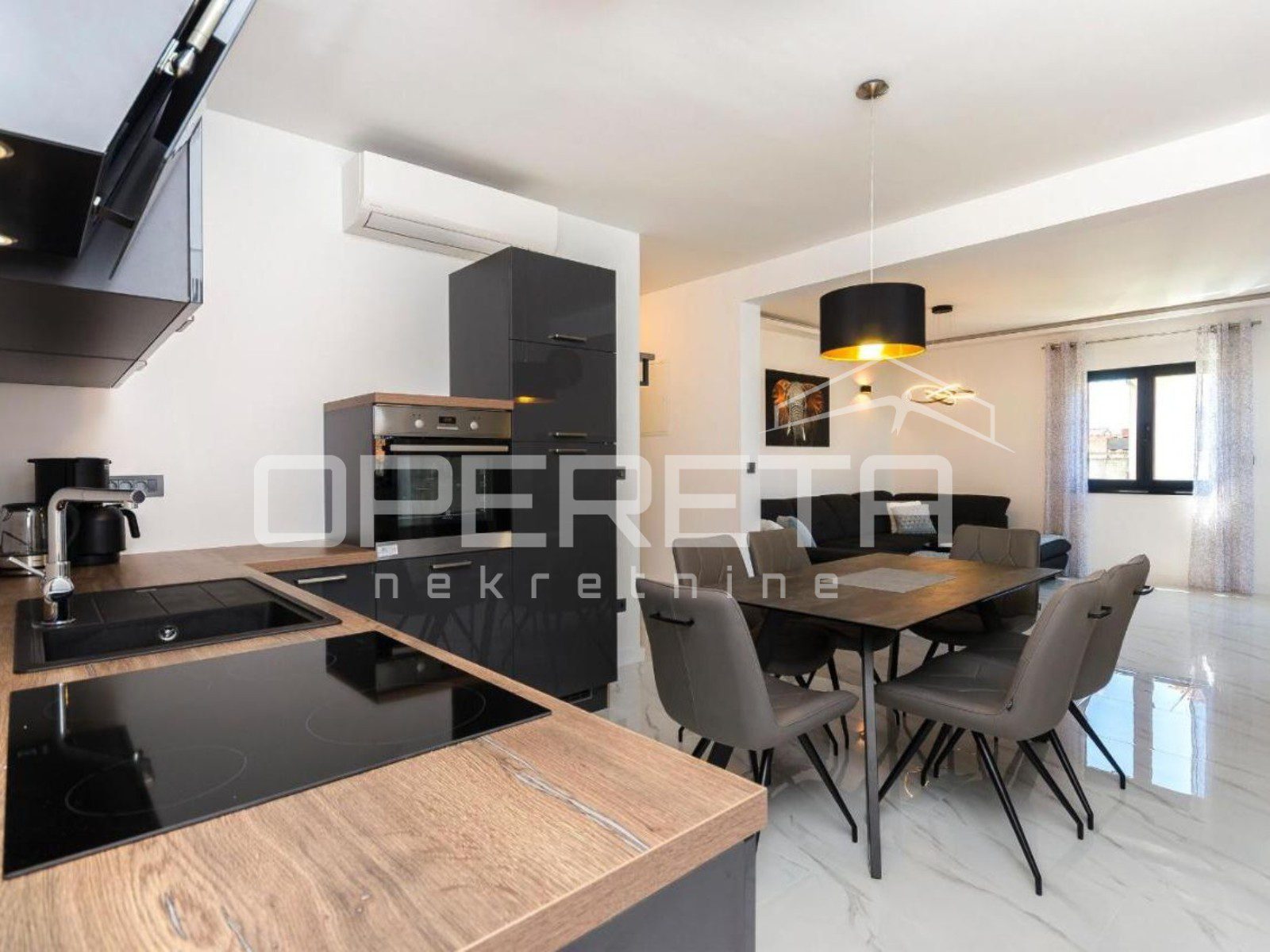 Opremljen je modernim sustavima za ugodan boravak tijekom cijele godine: podnim grijanjem u dnevnim sobama i kupaonicama, električnim podizačima roleta, solarnim panelima, dizalicom topline. Parkirno mjesto osigurano je u dvorištu zgrade.