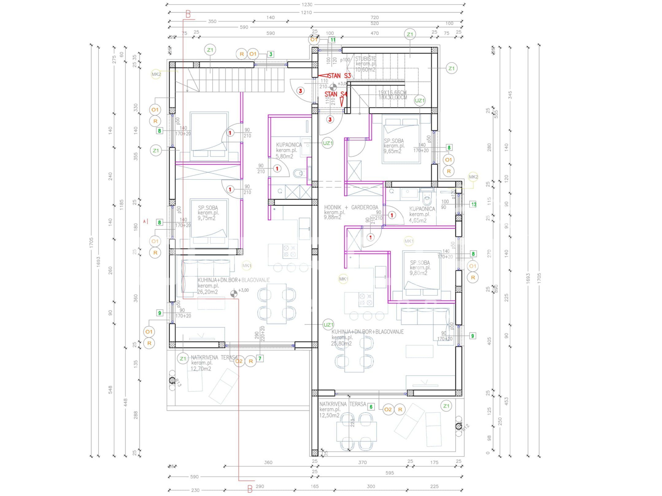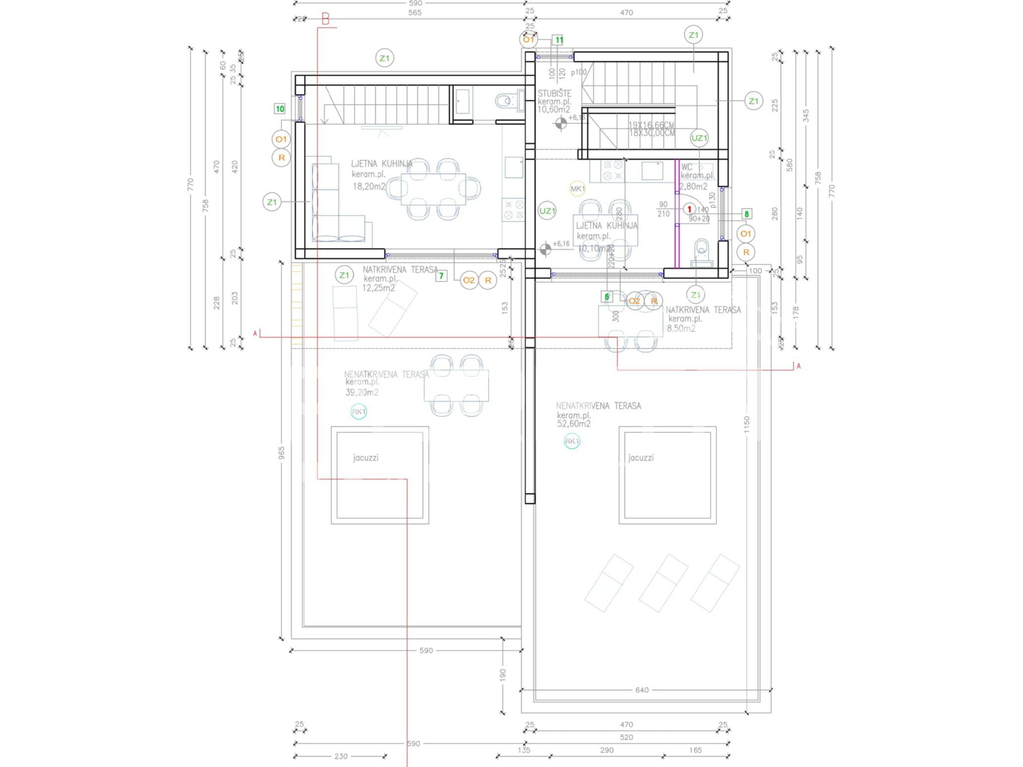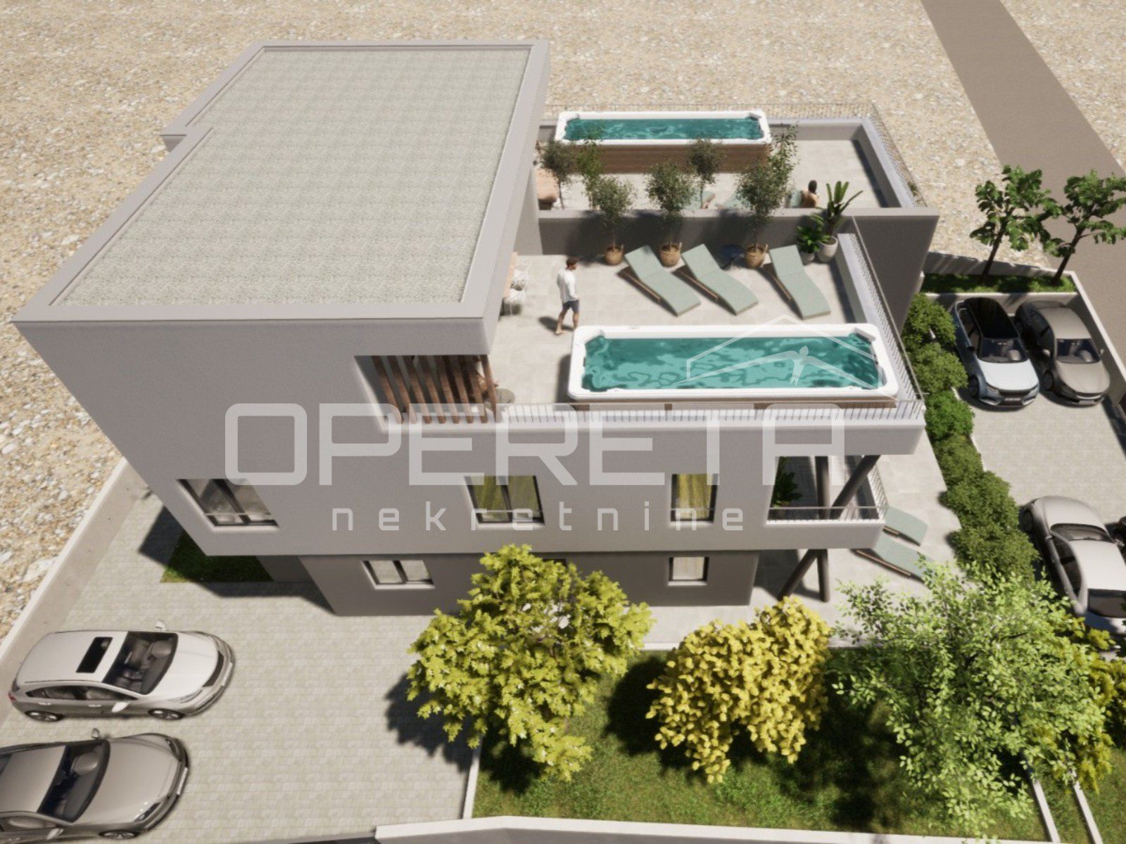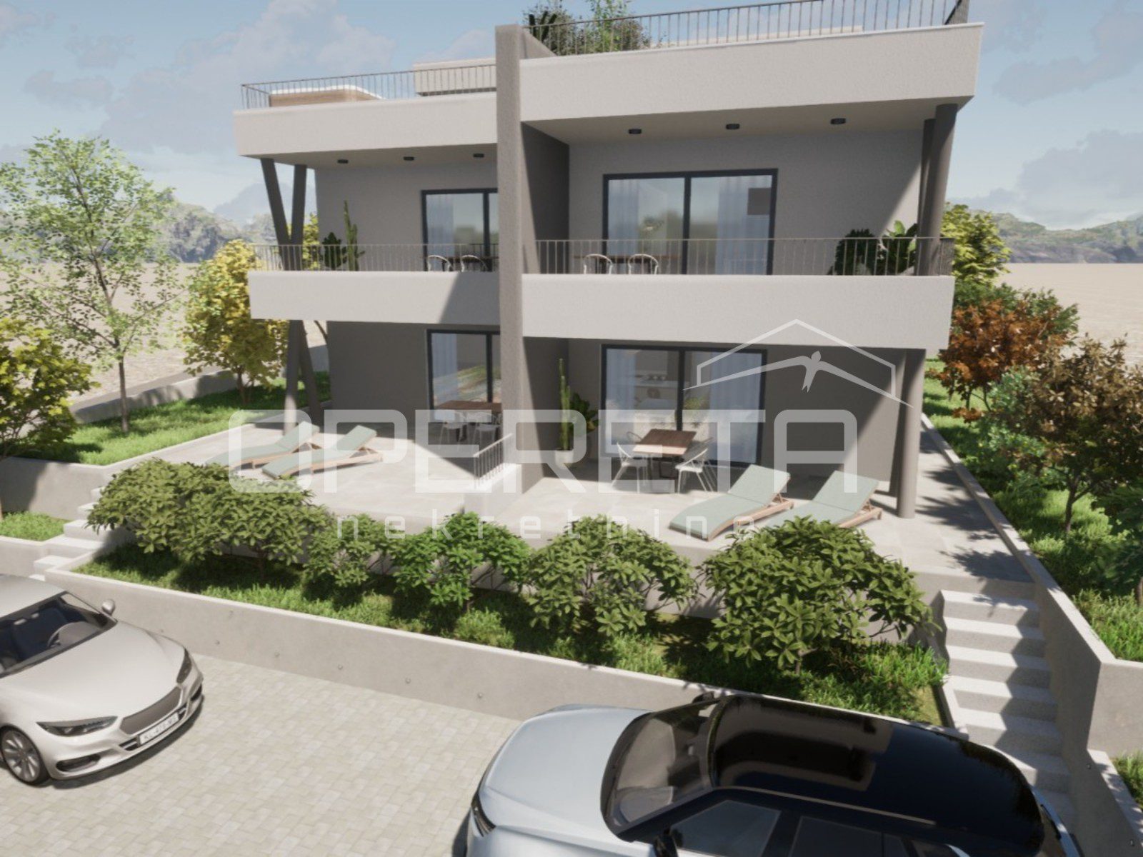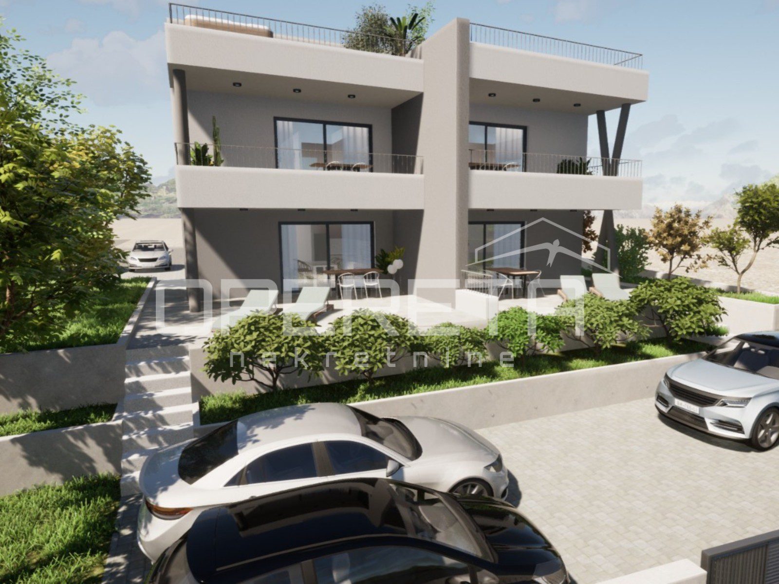 Na mirnoj lokaciji, s urbanim i uređenim kućama u susjedstvu, u izgradnji je zgrada s ukupno 4 stana. Zgrada će biti izgrađena prema najnovijim standardima: sa stiropor fasadom, PVC stolarijom, električnim podizačima roleta, protuprovalnim vratima, inverter klima uređajima u svim sobama, podnim grijanjem… Planirani rok završetka je kraj 2025. godine. Svi sadržaji potrebni za život dostupni su u krugu od 500m, a do mora i plaža je nekoliko minuta vožnje.