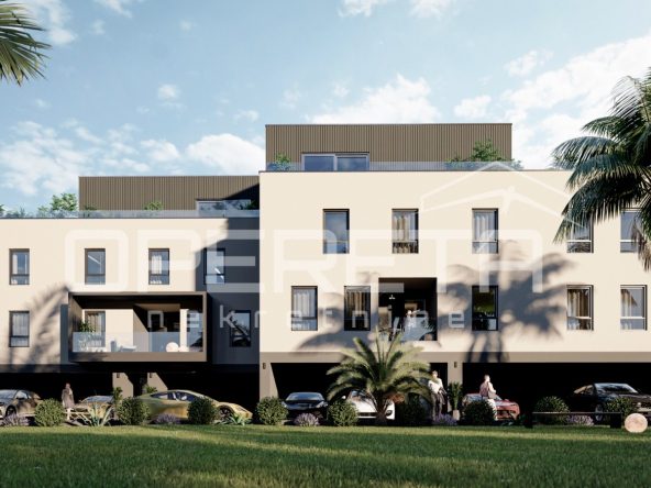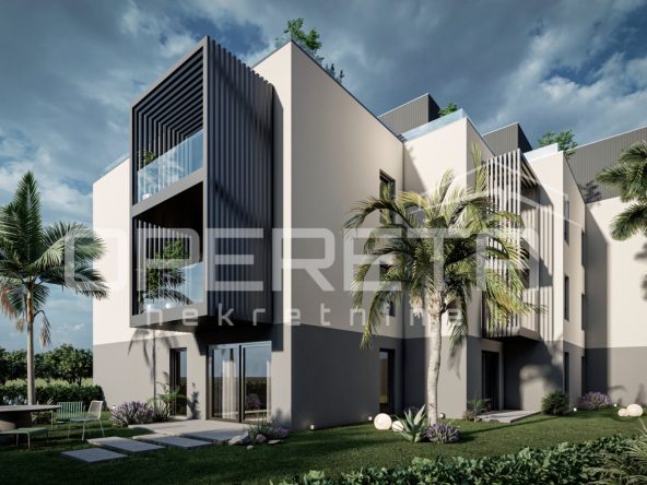 Izgled zgrade je suvremen, s istaknutim dizajnom terasa i uređenom hortikulturom.