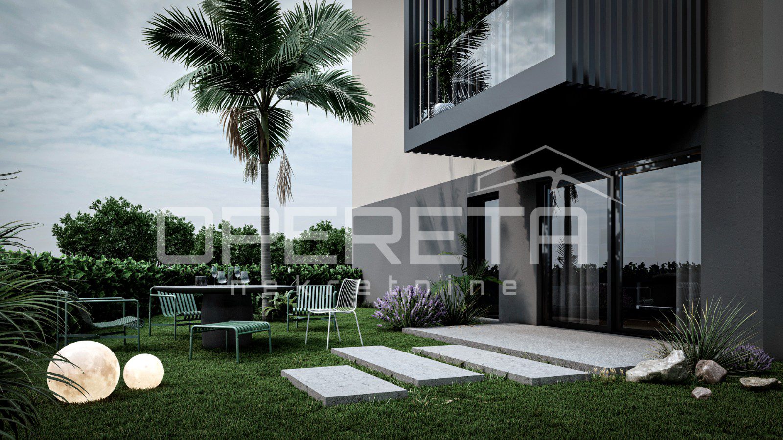 Izgled zgrade je suvremen, s istaknutim dizajnom terasa i uređenom hortikulturom.