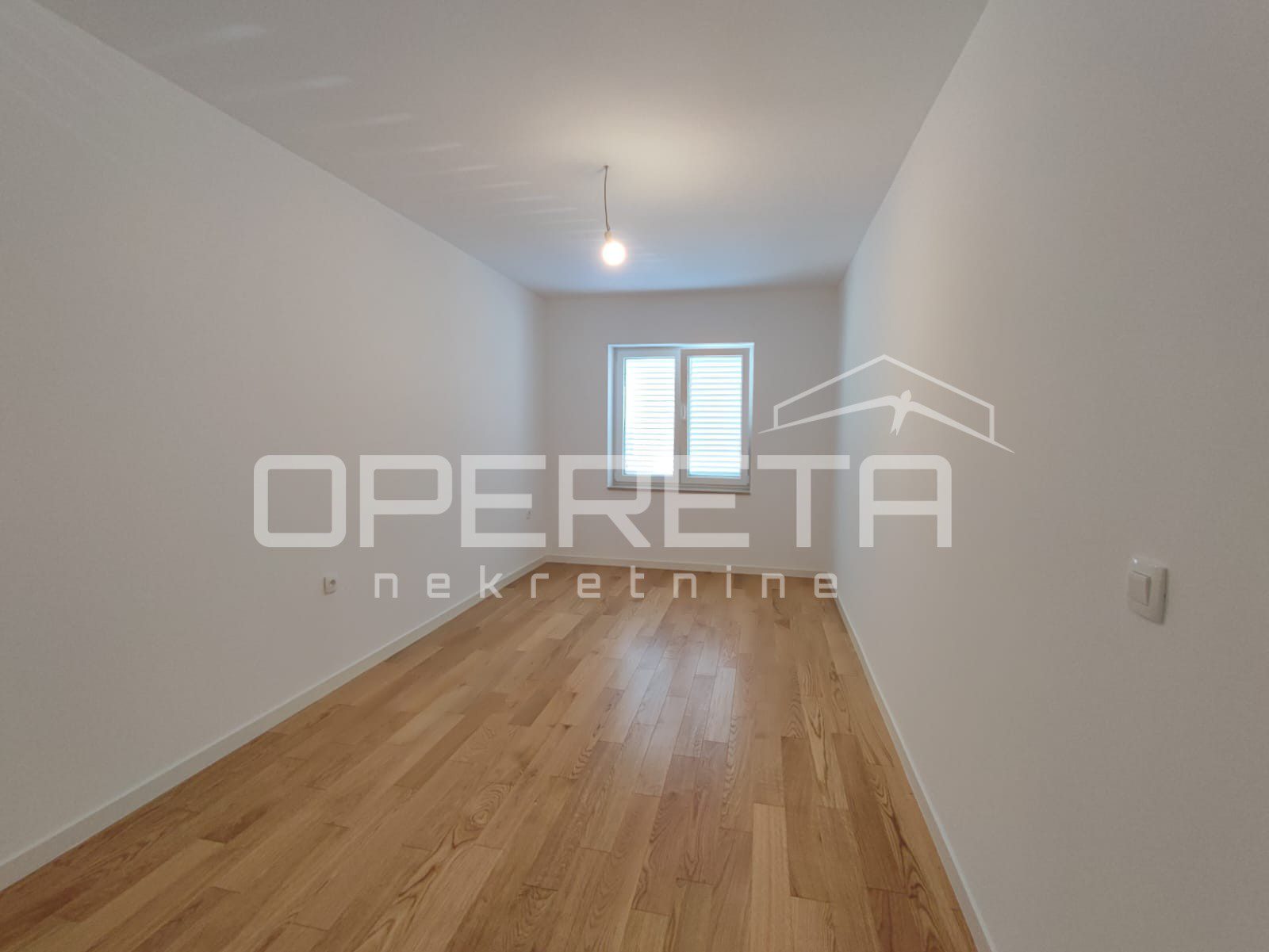 Stan je pun svjetlosti i orijentiran prema južnoj strani s prekrasnim pogledom na uređeni vrt. Kvalitetni parketi, keramika i sanitarije, uz minimalistički dizajn i detalje koji čine razliku, stvaraju poseban ugođaj i osjećaj doma.