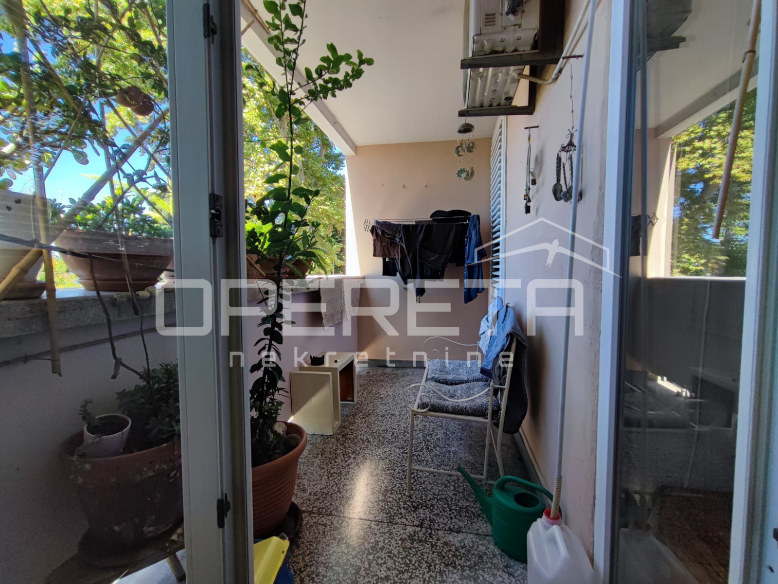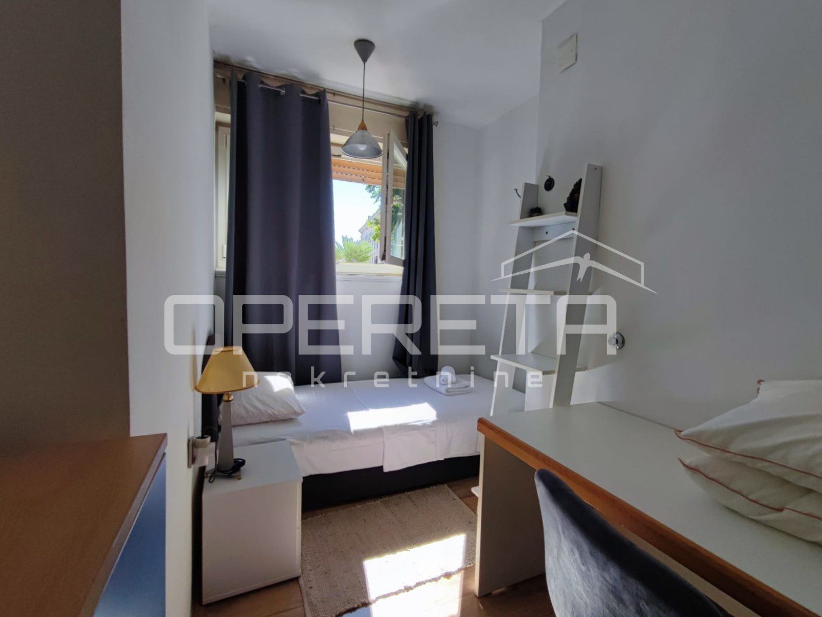 Sastoji se od 3 spavaće sobe, kupaonice, hodnika velikog dnevnog boravka s blagovaonicom i kuhinjom i natkrivene terase s pogledom na zadarsku rivu i otok Ugljan.