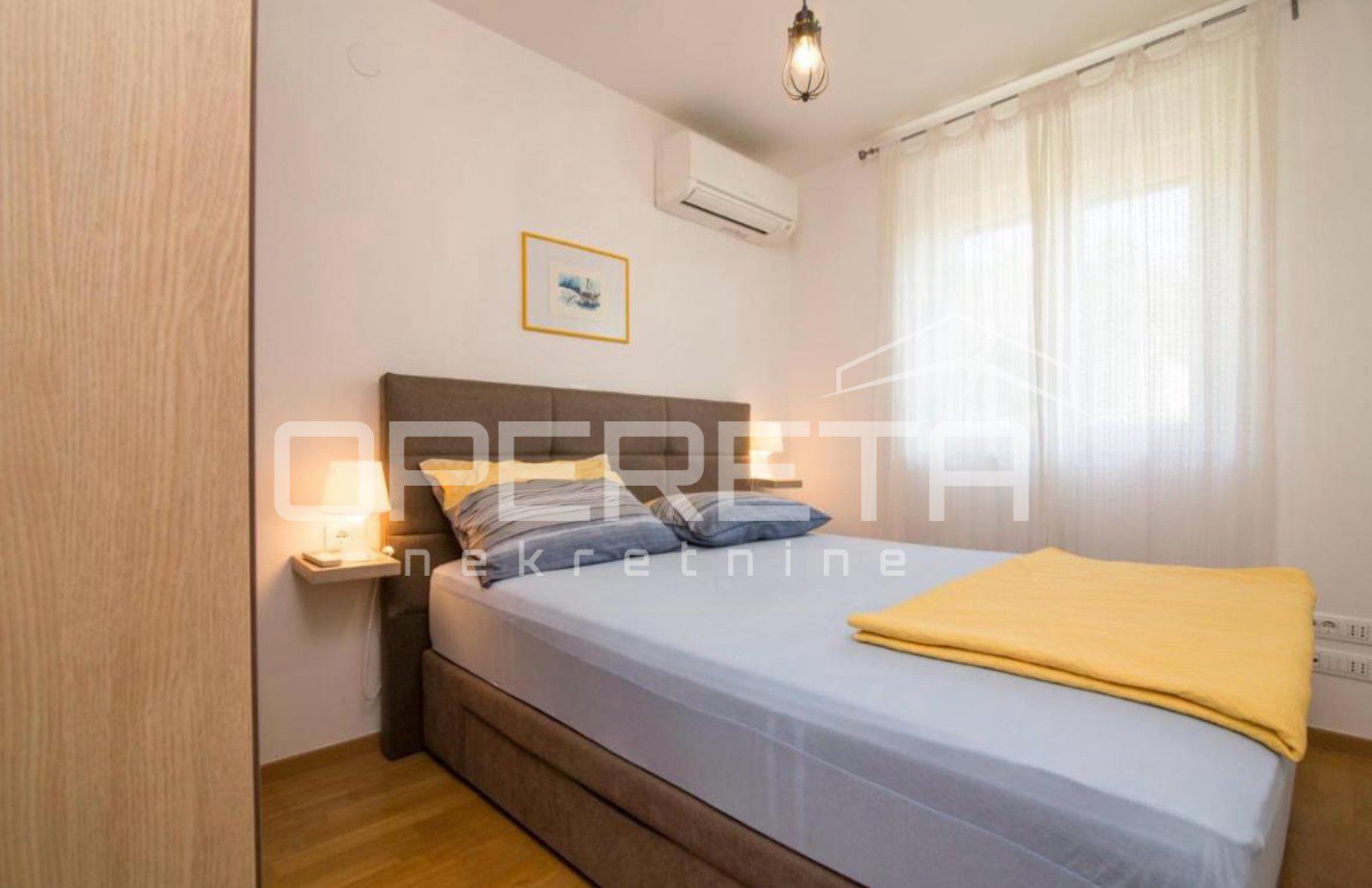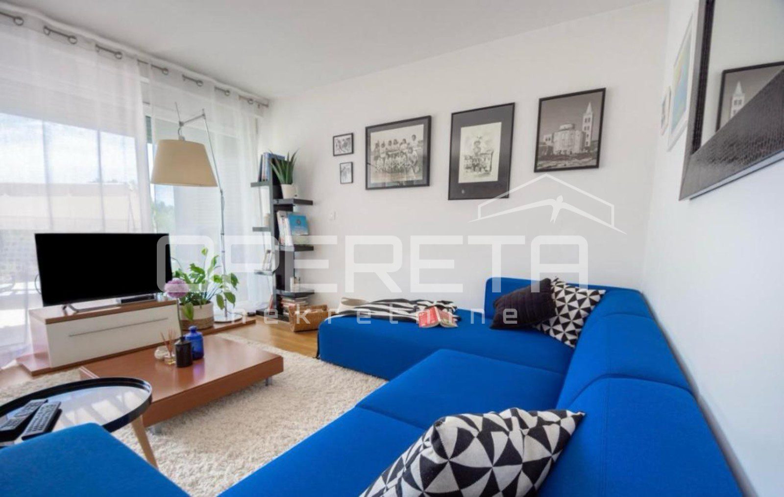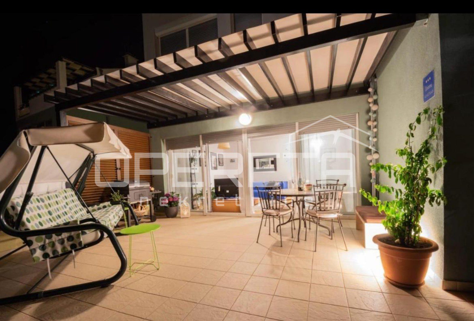 U prodaji je moderno uređen i potpuno namješten trosoban stan s vlastitim vrtom i natkrivenom terasom, smješten u prizemlju manje stambene zgrade u mirnom naselju Mocire u Zadru.