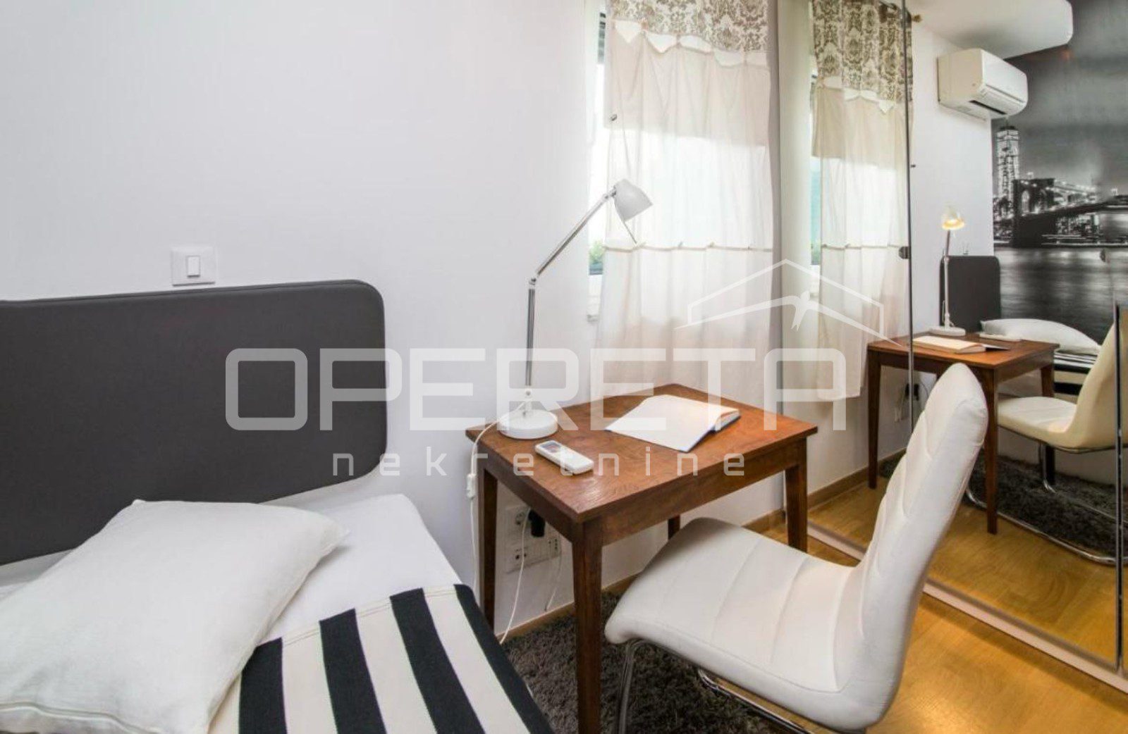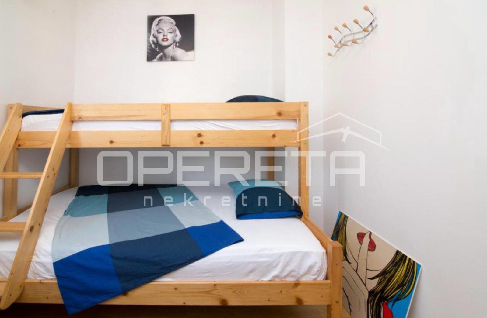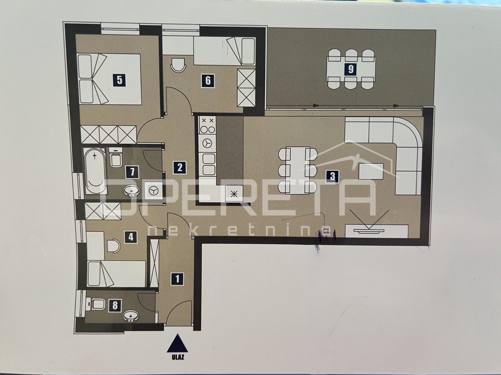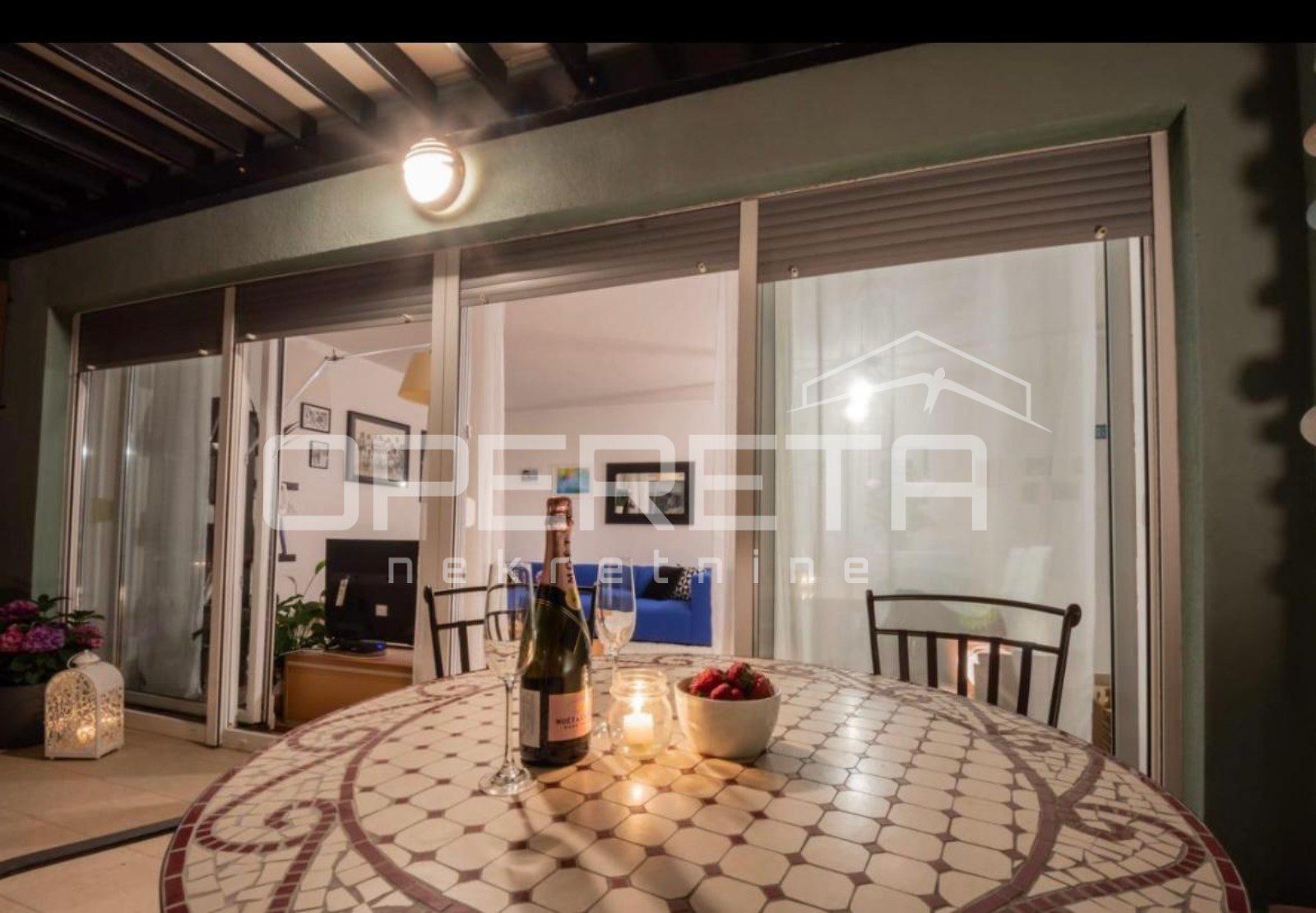 U prodaji je moderno uređen i potpuno namješten trosoban stan s vlastitim vrtom i natkrivenom terasom, smješten u prizemlju manje stambene zgrade u mirnom naselju Mocire u Zadru.