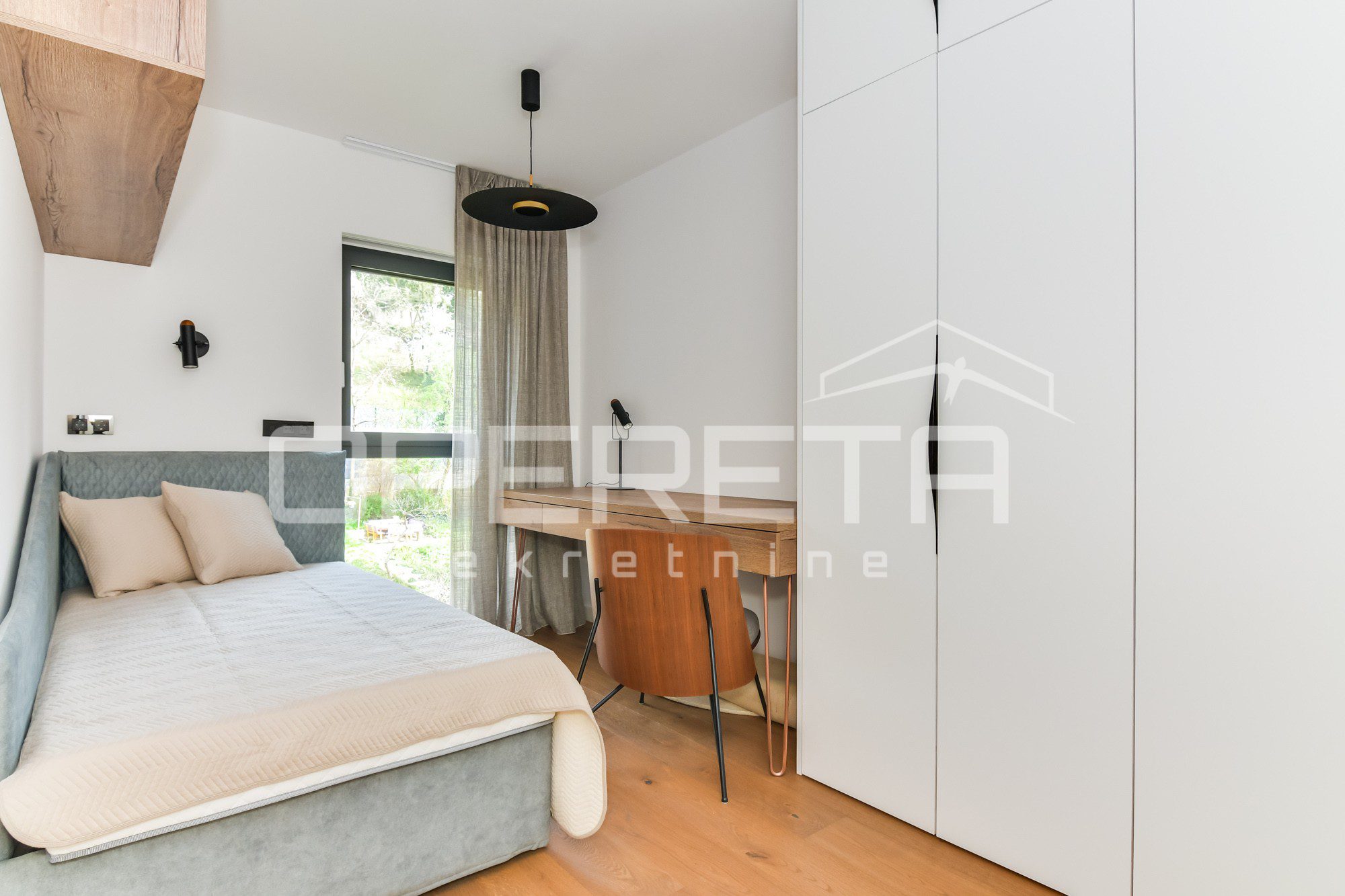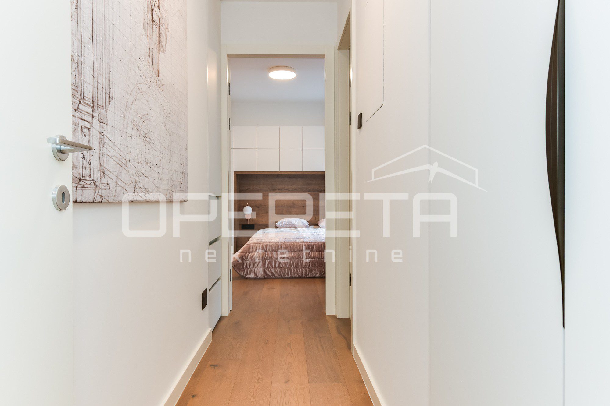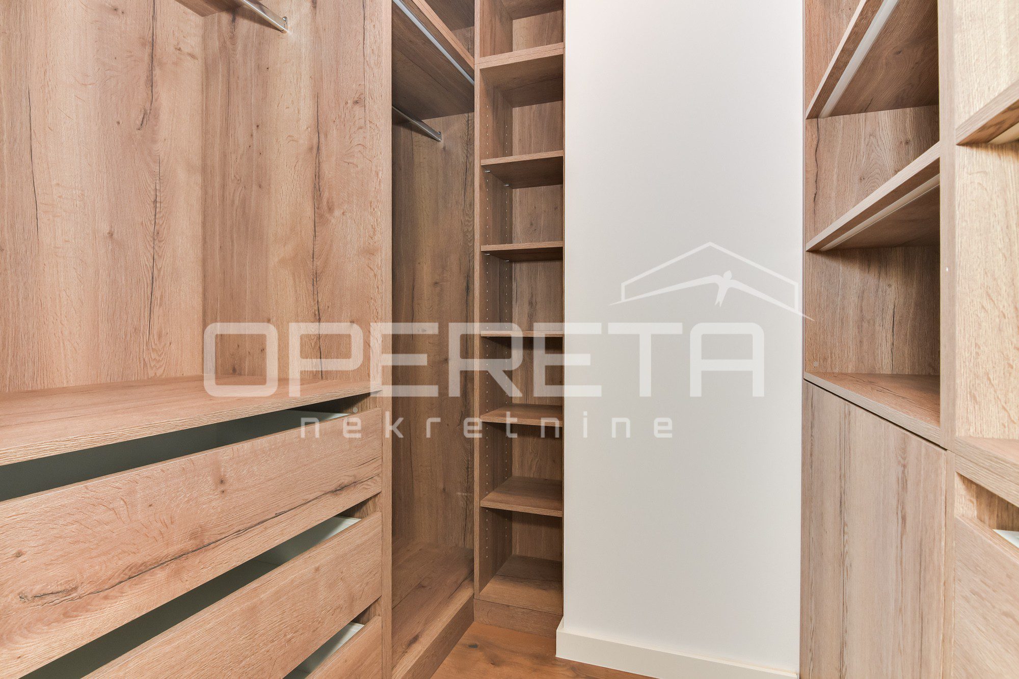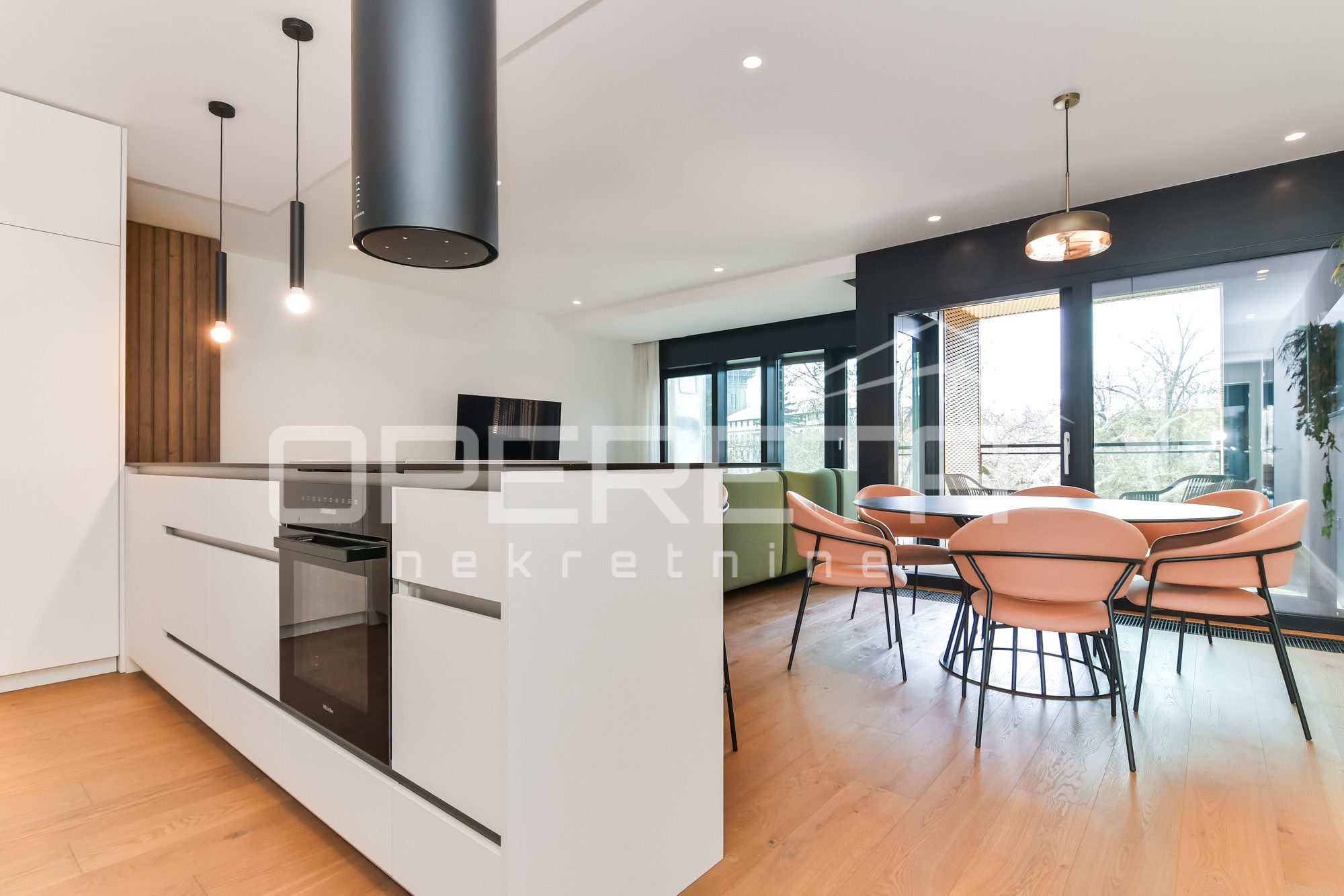 U stanu su korišteni najkvalitetniji materijali, prvoklasna keramika, ugrađena je stolarija po mjeri, Miele kuhinjski uređaji te perilica i sušilica rublja, a opremljen je dizajnerskim namještajem poznatih brendova.