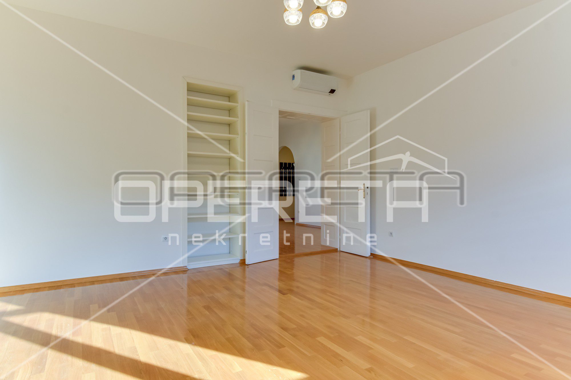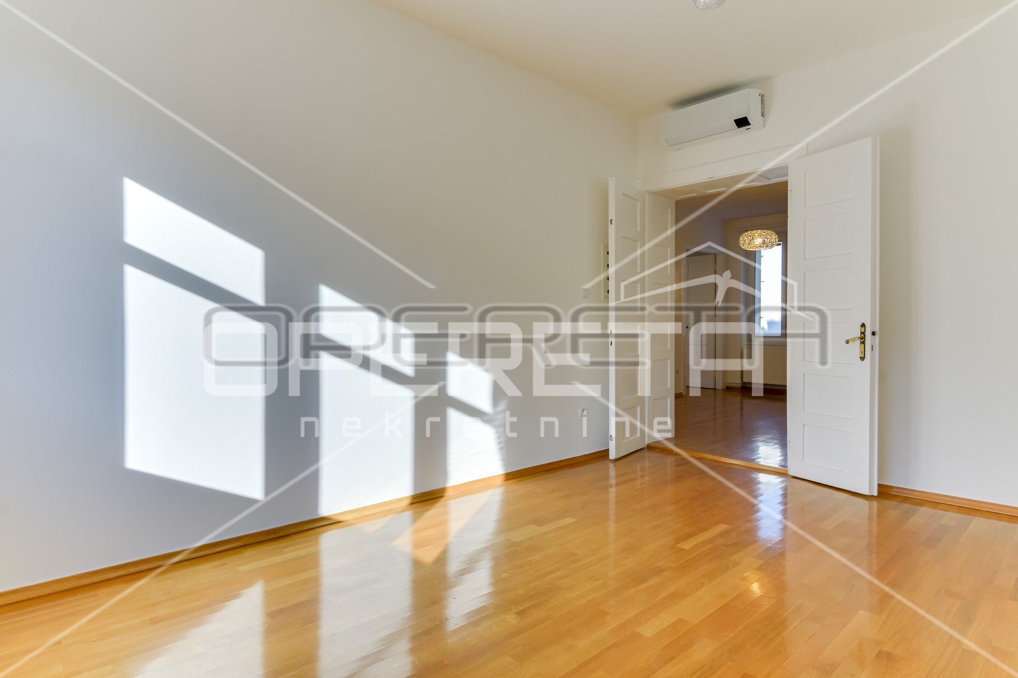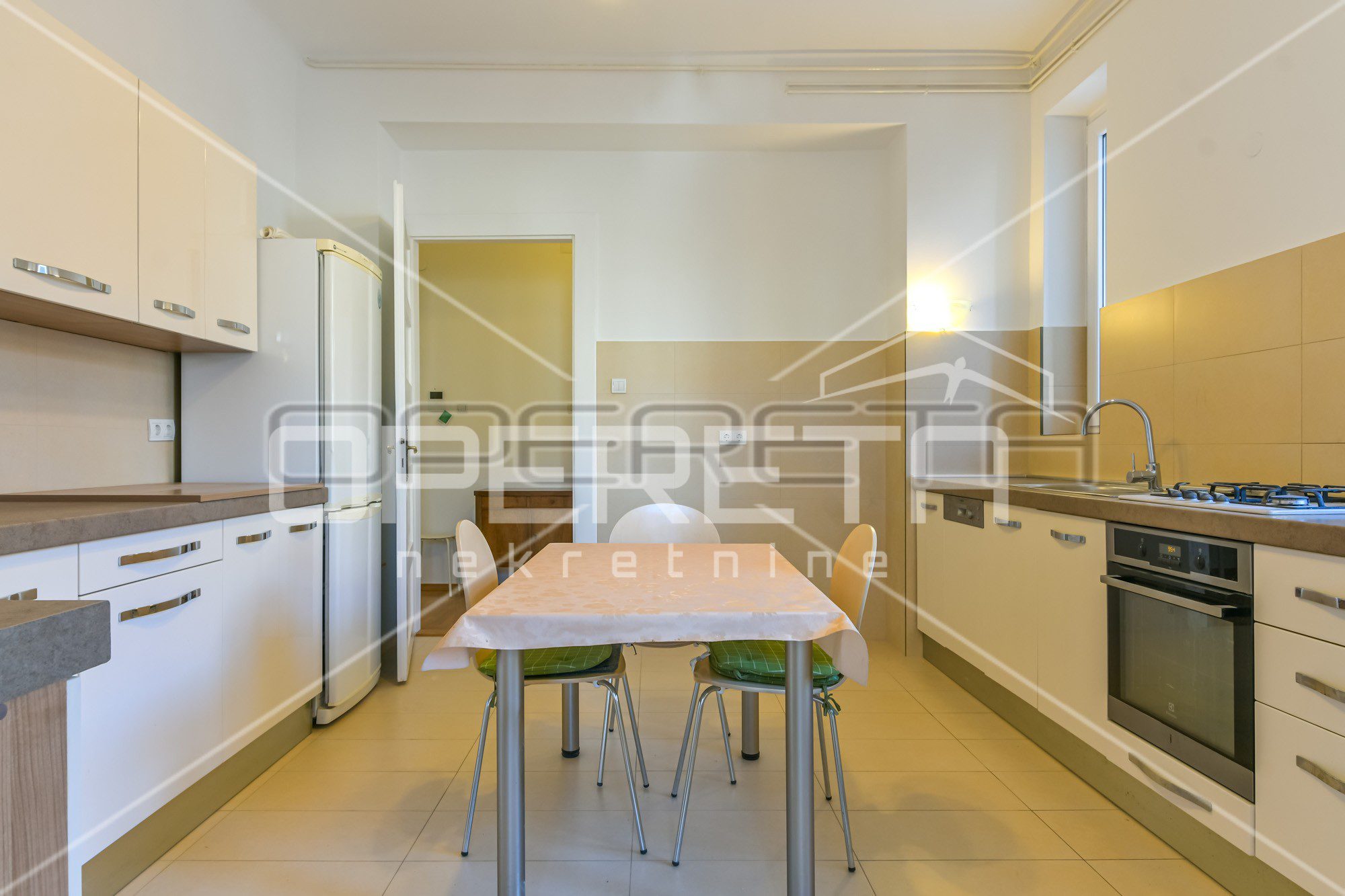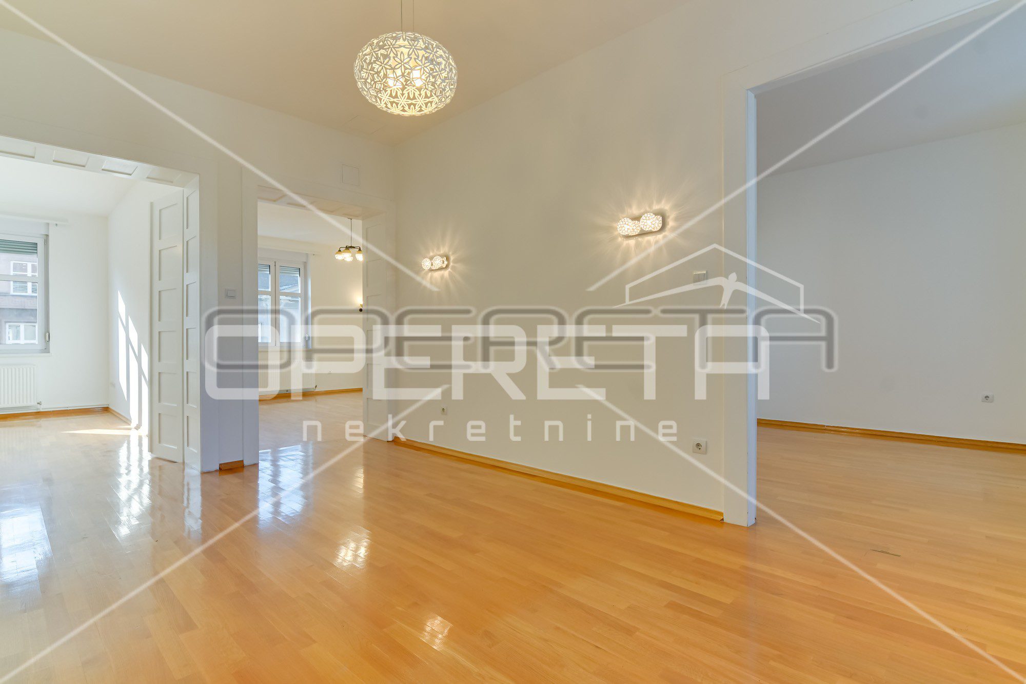 Iznajmljuje se stan veličine 125m2, 4-sobni, nenamješten, novoadaptiran 2023. godine, na 3.katu konstrukcijski obnovljene zgrade s liftom. Sastoji se od 4 sobe, kupaonice, zasebnog toaleta, kuhinje s izlazom na balkon i male ostave i u potpunosti je klimatiziran.