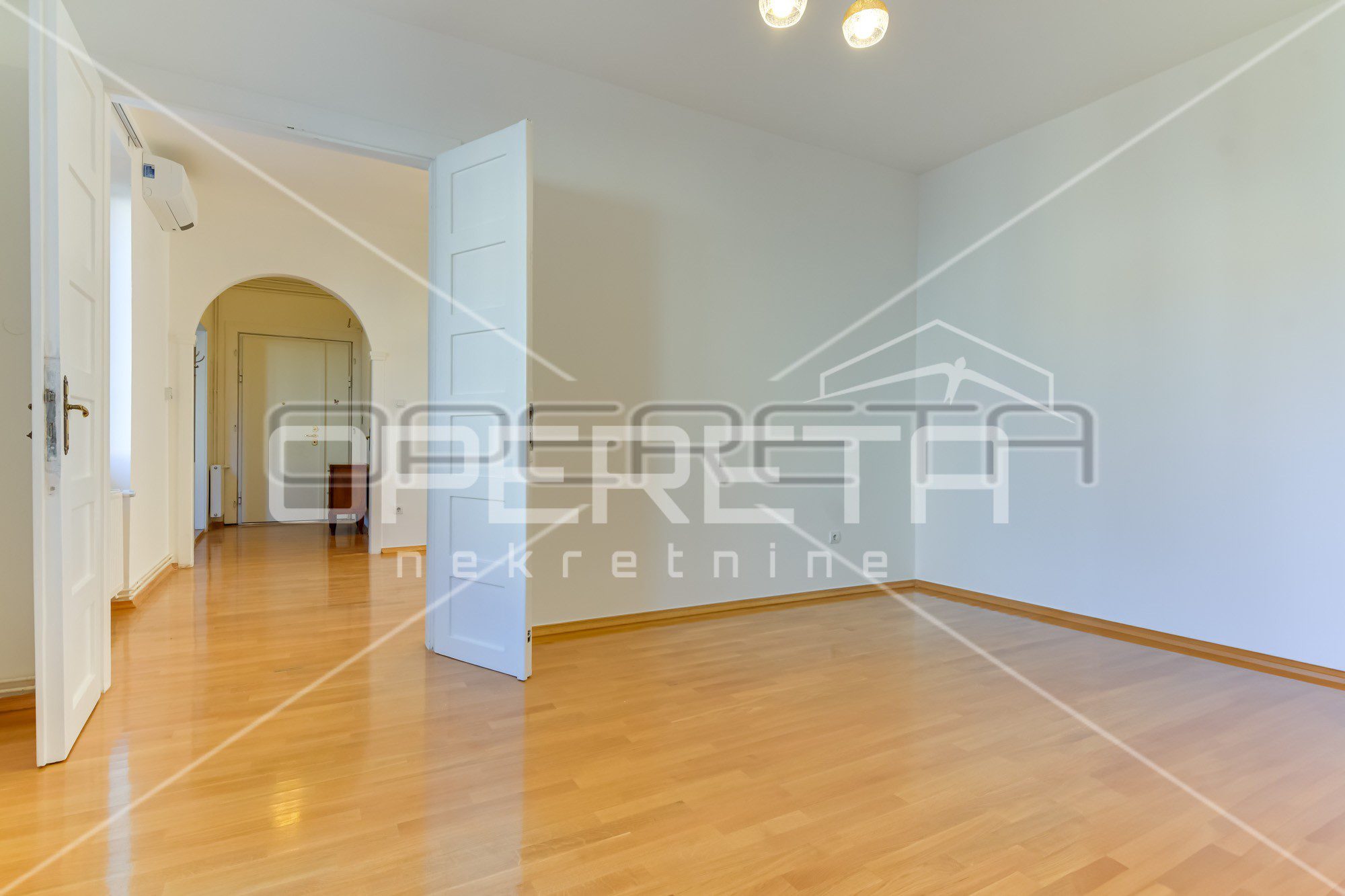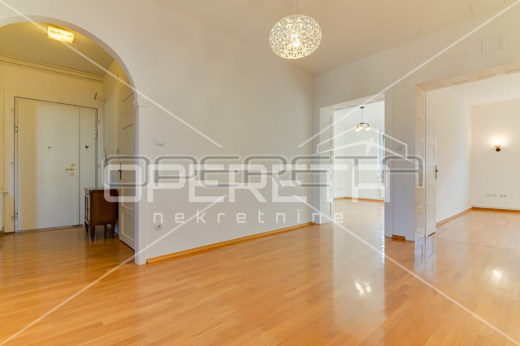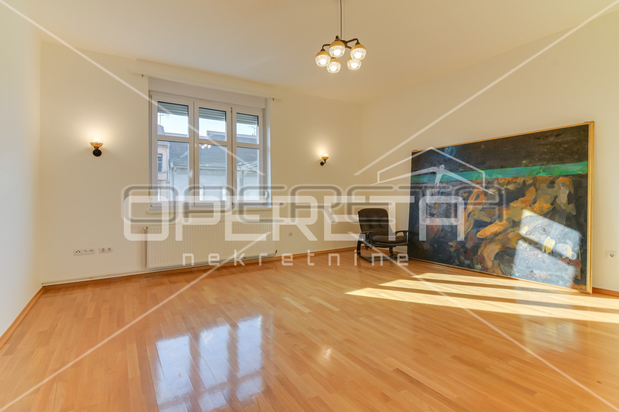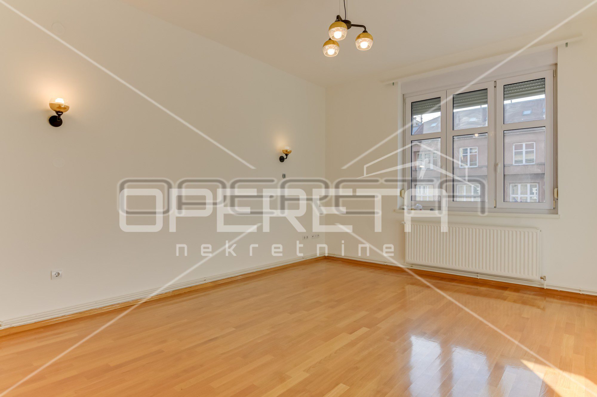 Iznajmljuje se stan veličine 125m2, 4-sobni, nenamješten, novoadaptiran 2023. godine, na 3.katu konstrukcijski obnovljene zgrade s liftom. Sastoji se od 4 sobe, kupaonice, zasebnog toaleta, kuhinje s izlazom na balkon i male ostave i u potpunosti je klimatiziran.