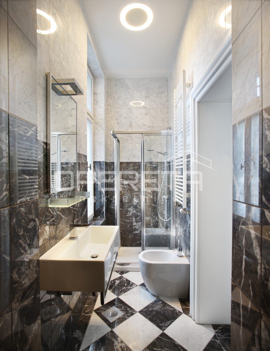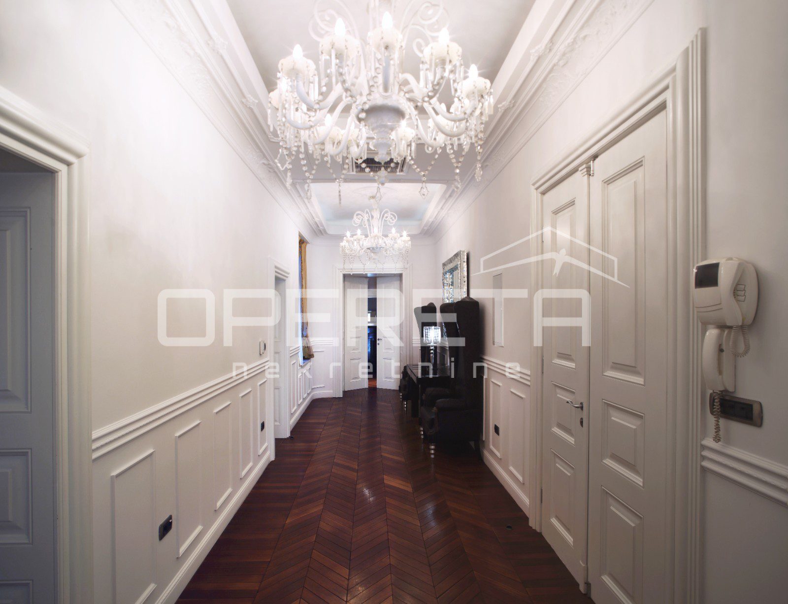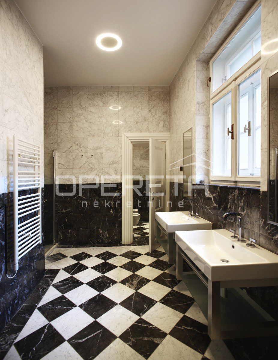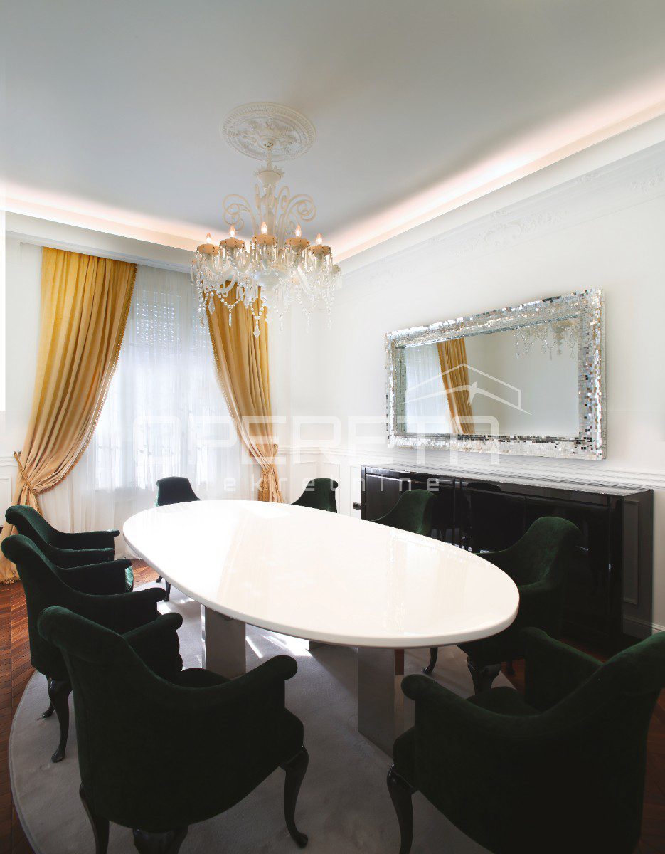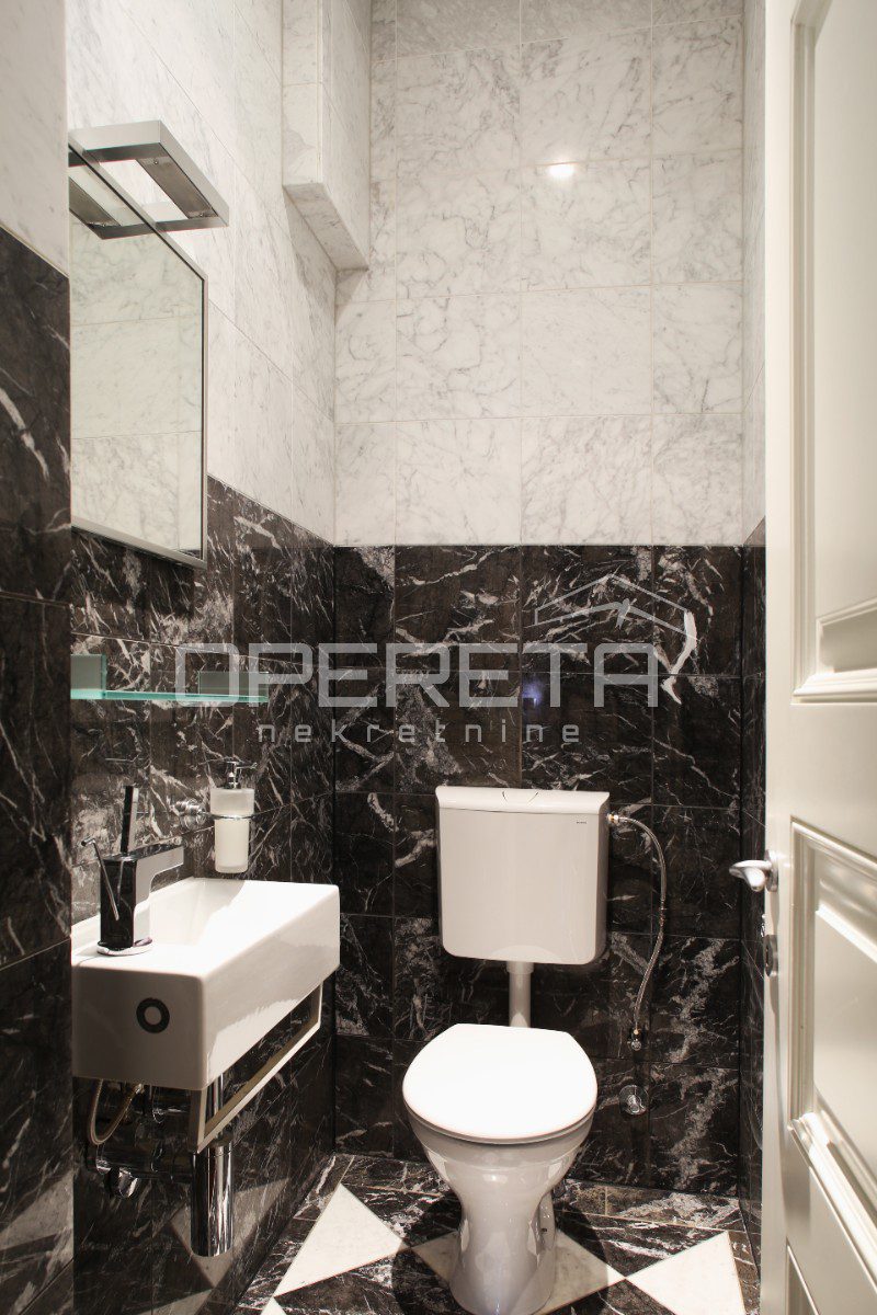 Stan je u potpunosti luksuzno opremljen i renoviran. Visina stropa je 3.45cm, nova stolarija, kvalitetni parketi, kamen u kuhinji i kupaonicama te dizajnerski namještaj i rasvjeta u cijelom stanu.