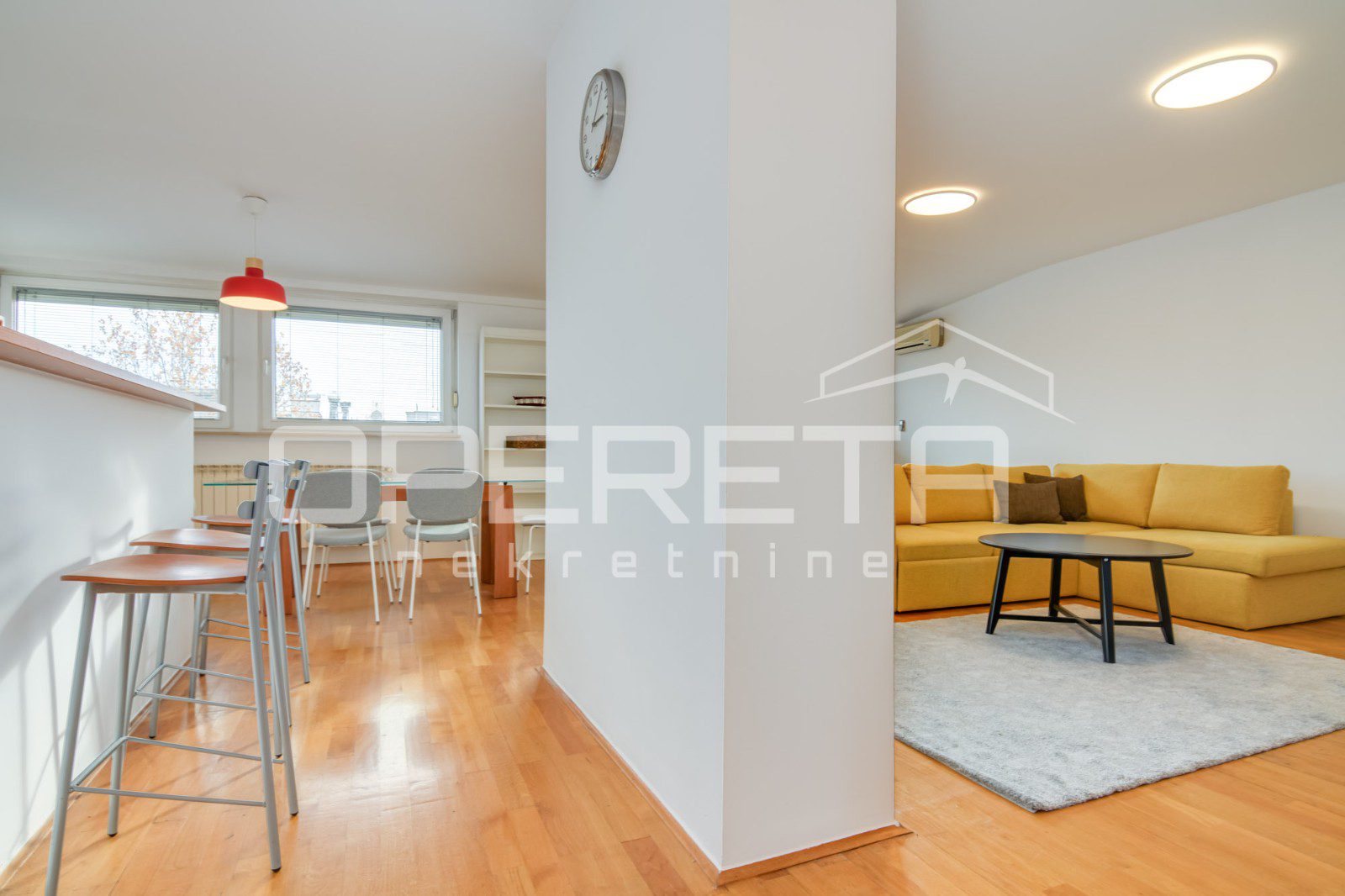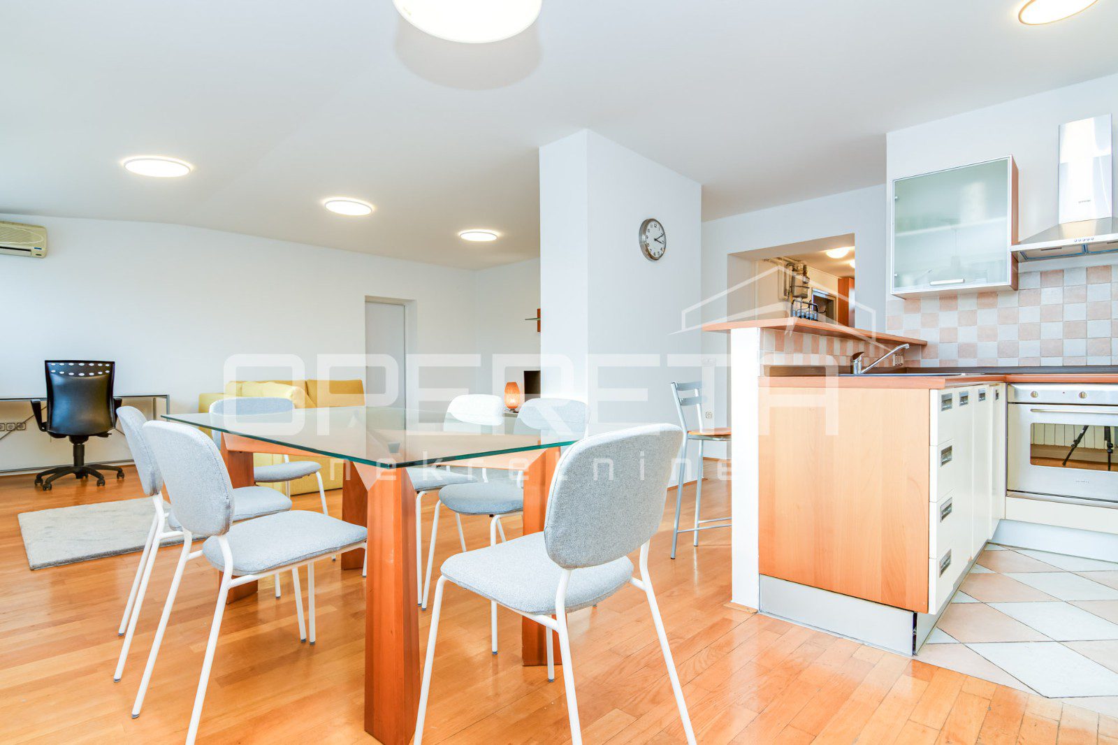 Stan ima izlaz na krovnu terasu, s koje s pruža panoramski pogled na Zagreb, koja je produžetak dnevnog dijela i nudi brojne mogućnosti.