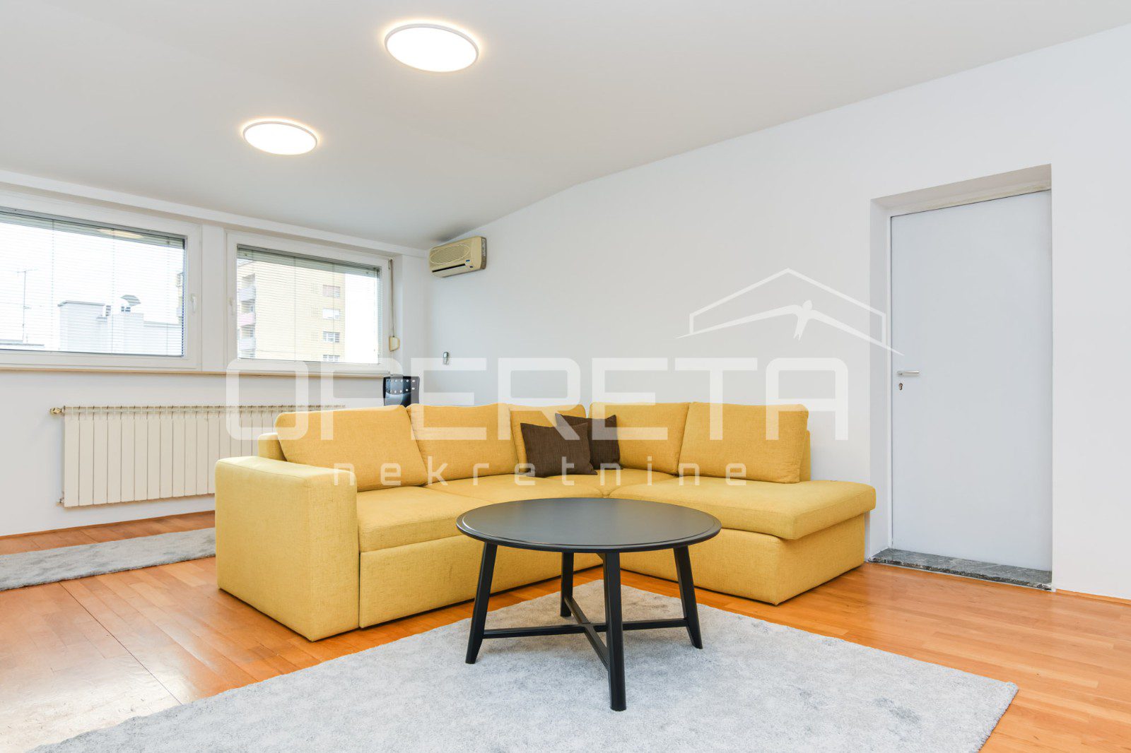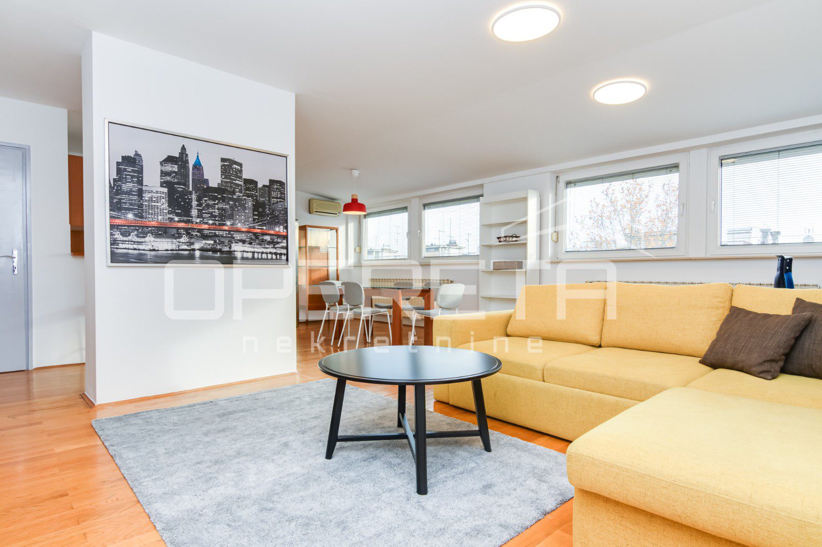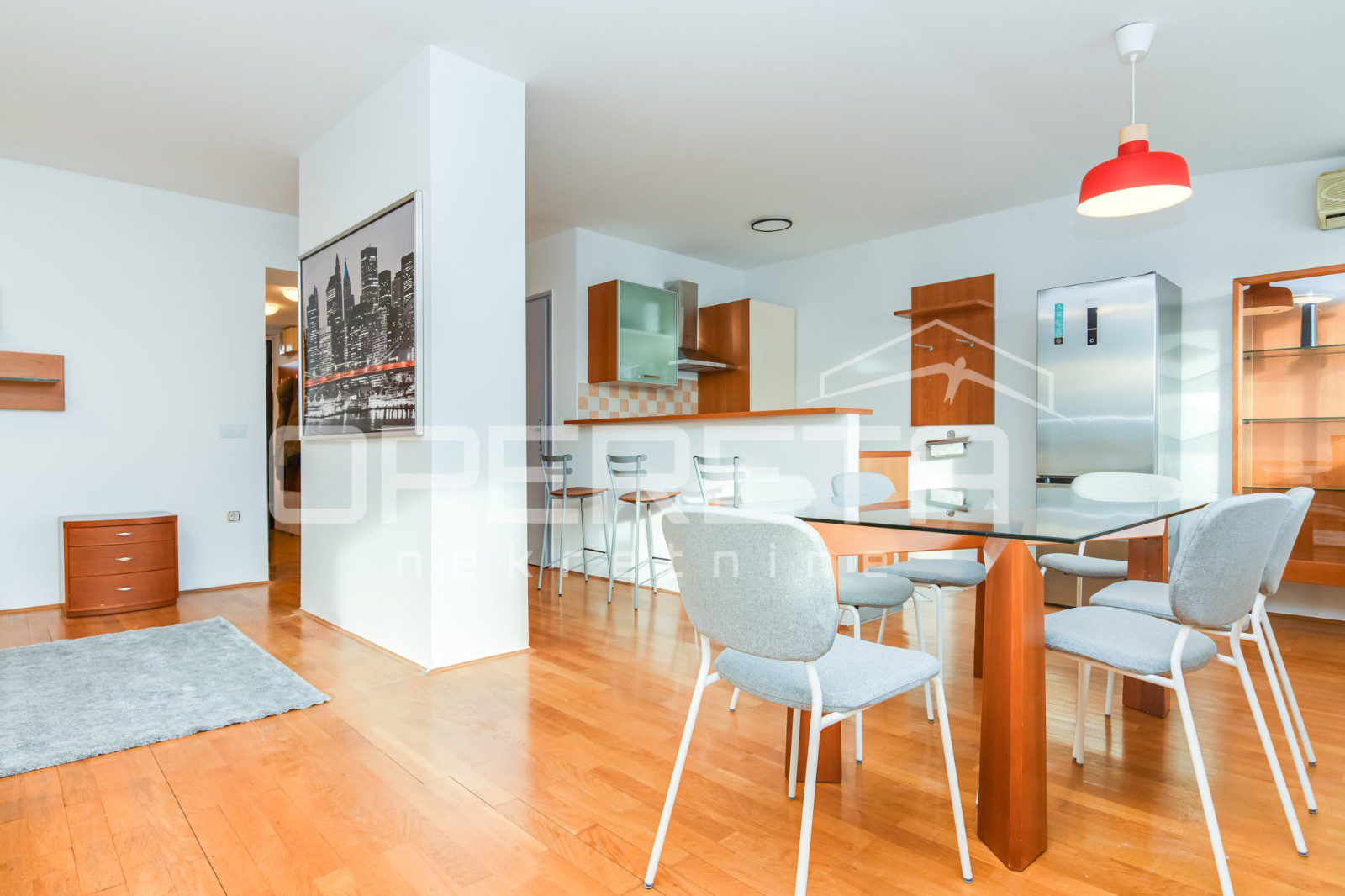 U ponudi je prostrani 2,5 soban stan za najam u Vojnovićevoj ulici, 84 m2, uz Vitićev neboder, u srcu Design districta, na 5. katu od 5, s liftom, u mirnom dijelu ulice, odmaknuto od buke prometa.