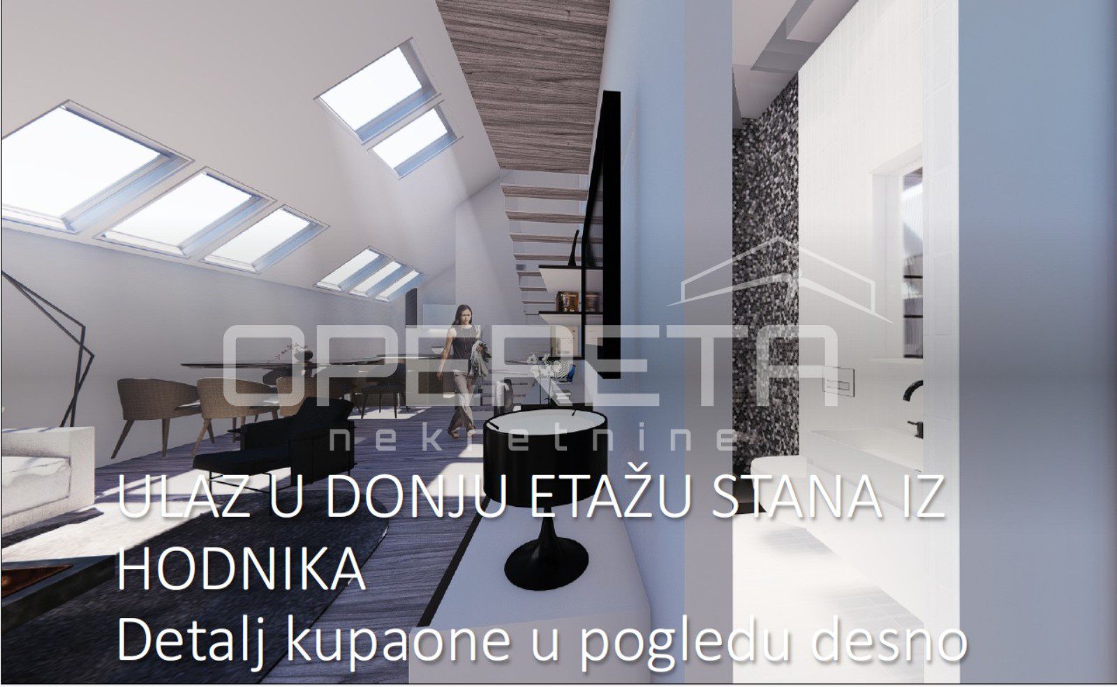 PRODAJA, STAN, ZAGREB, CENTAR, 4sobni stan, tlocrtne površine 108 m2, koji se prostire na dvije etaže.