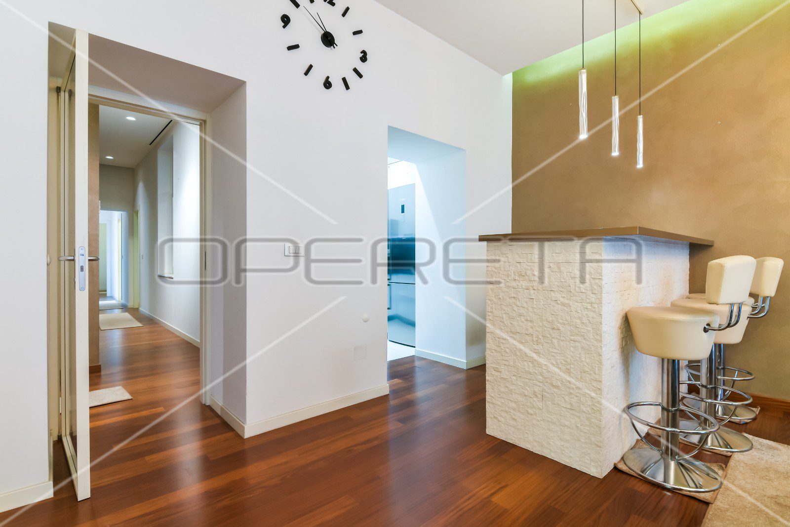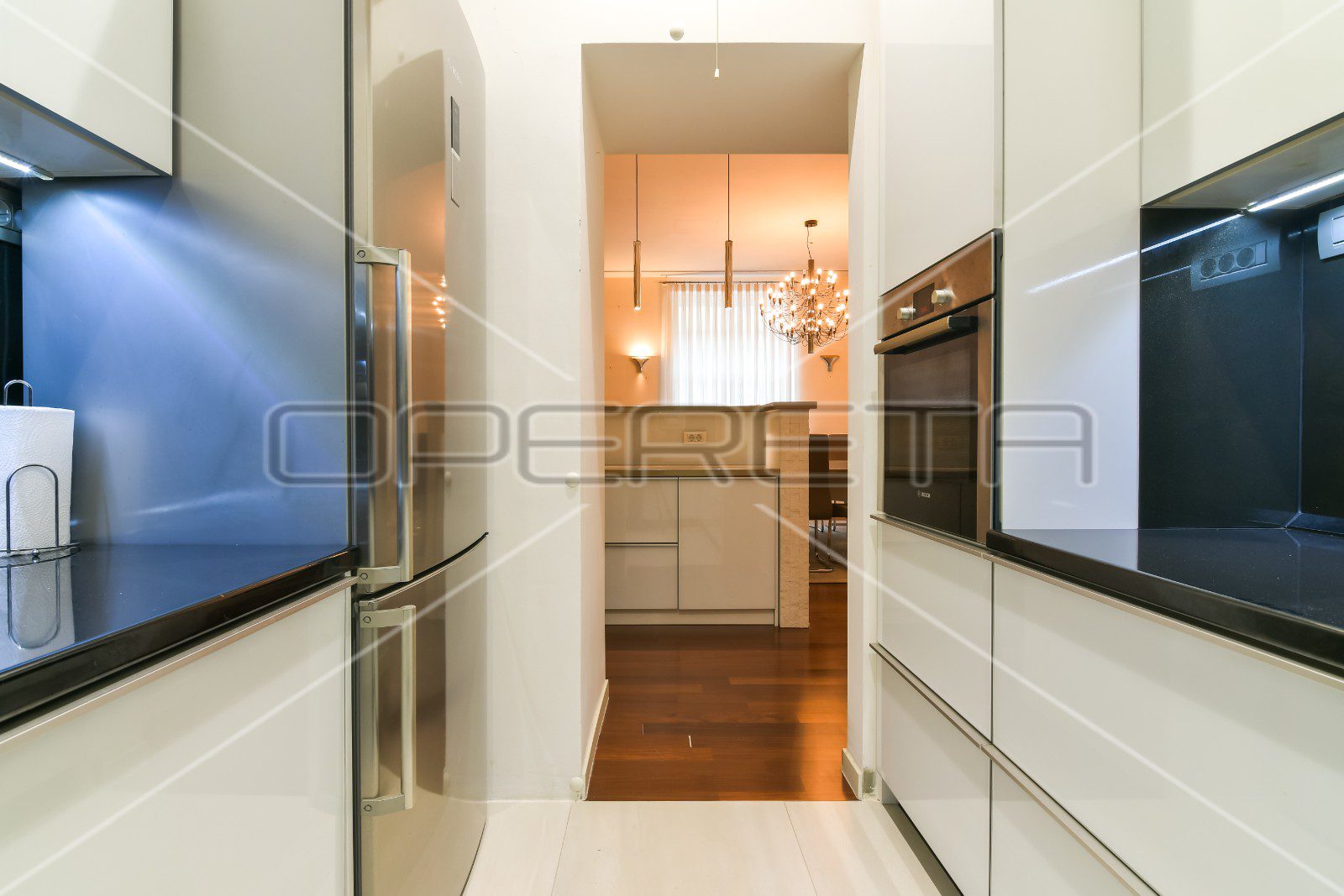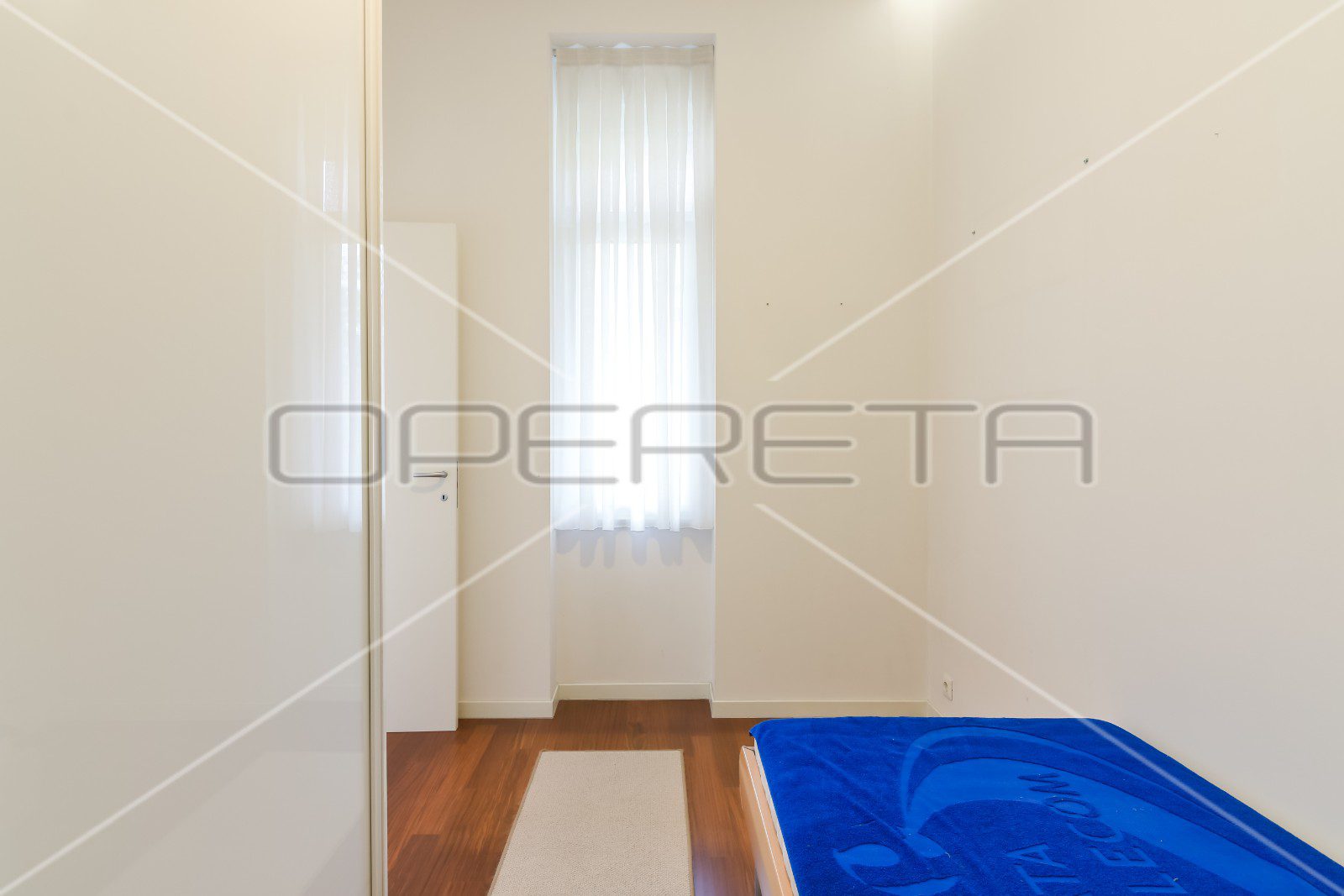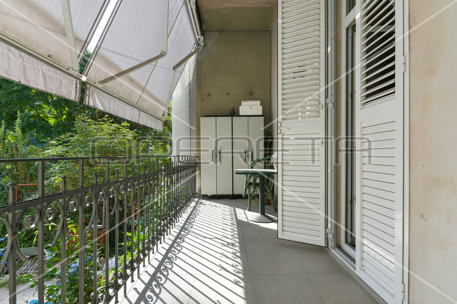 Izuzetno lijep, ugodan i kompletno kvalitetno renoviran građanski stan u blizini Botaničkog vrta. U potpunosti je adaptiran 2013. godine (nove instalacije, ugrađen stropni klimatizacijski sustav, izlivena betonska deka, podno grijanje u cijelom stanu s prilagođenim skupocjenim parketom i keramikom, spušteni stropovi s 3,30m na 3m radi dodatne izolacije i osvjetljenja, skinuta sva stara žbuka). Broj prostorija je ostao isti no izmijenjen je raspored. Dvije su velike salonske sobe orijentirane na istok (dnevna soba i blagovaonica s kuhinjom), hodnikom je odijeljen spavaći dio (1 veća soba s vlastitom garderobom) i 1 manja dječja ili radna soba, kupaonica s ugrađenom saunom, gospodarska soba s perilicom i sušilicom te odvojeni toalet. Iz hodnika kao i iz veće spavaće sobe postoje izlazi na prostrani natkriveni balkon okrenut na južnu dvorišnu mirnu stranu. Pripada mu i udio u tavanu i podrumu. Stan je pokriven alarmnim sustavom.