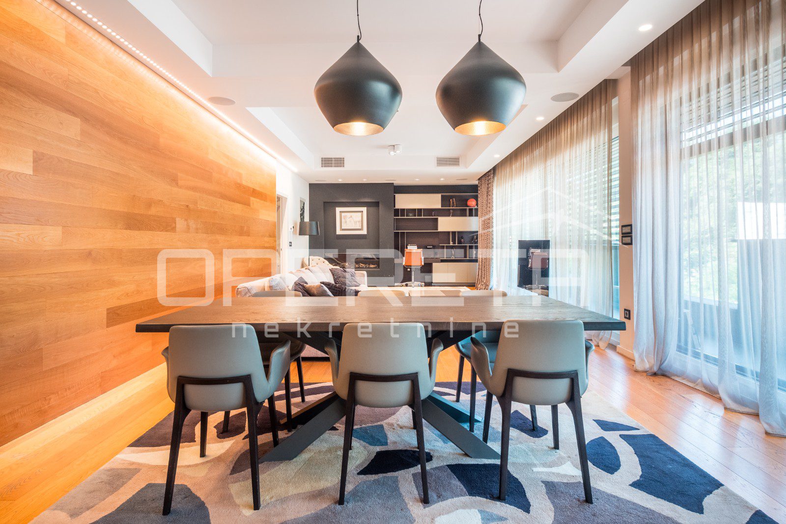 Stan na zapadnoj strani ima prostrani open space dnevni dio sa kuhinjom i blagovaonicom, a kamin i velika staklena stijena omogućuju vrhunski ugođaj uz otvoren pogled i pregršt svjetla.