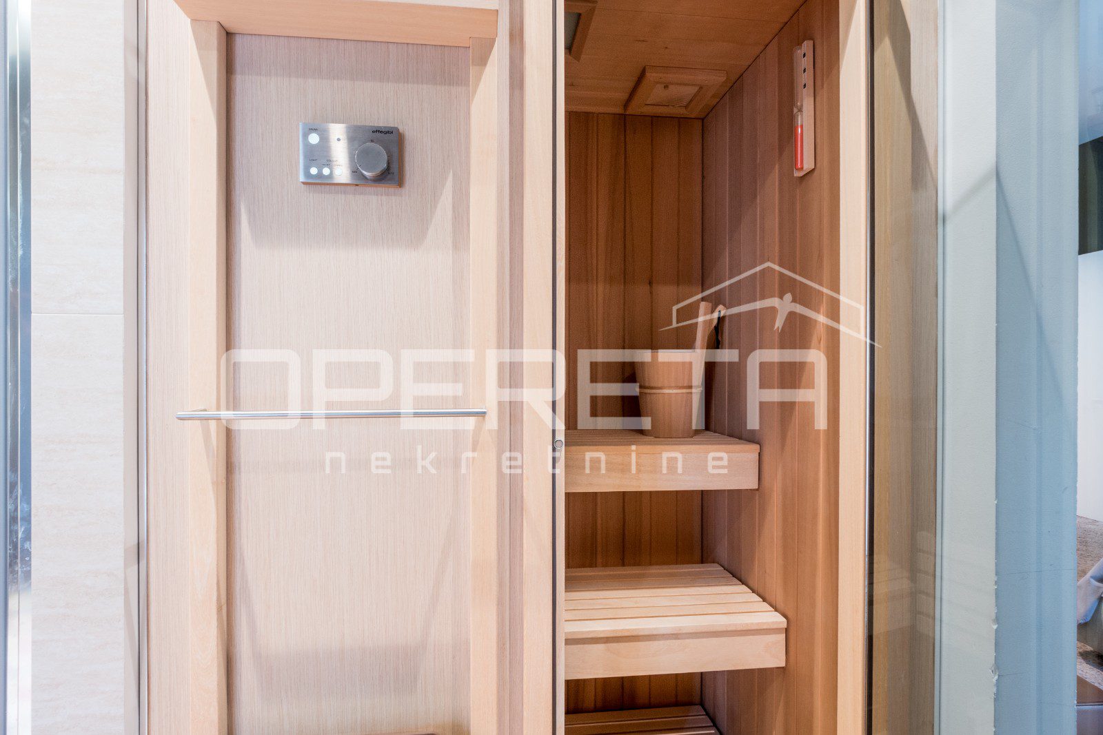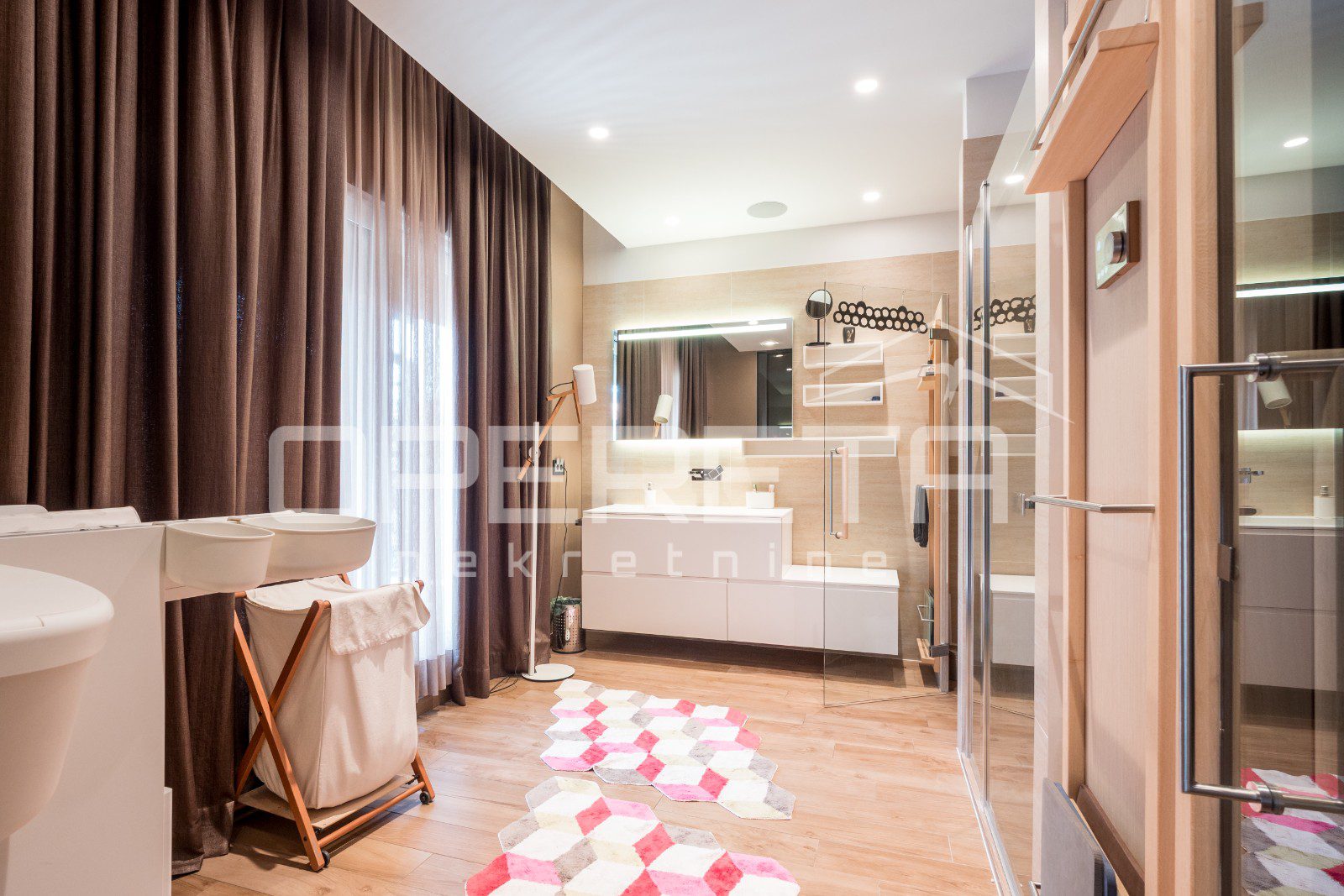 Osim toga, stan ima dodatnu spavaću sobu i kupaonicu, te vešeraj, a pripadaju mu i 2 garažna mjesta