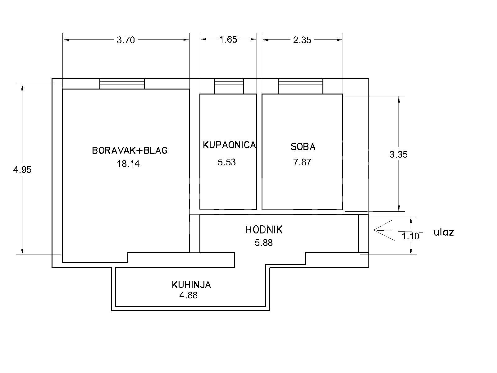 Prodaje se 2S stan u strogom centru grada na zadnjem četvrtom katu. Stan je kompletno renoviran prije 20 godina, a nedavno je postavljen kondenzacijski bojler. Zgrada je u odličnom stanju, završena je konstrukcijska obnova, postavljen novi krov, nova fasada s južne strane ( u planu i ulična sjeverna ) te je uređeno stubište.
