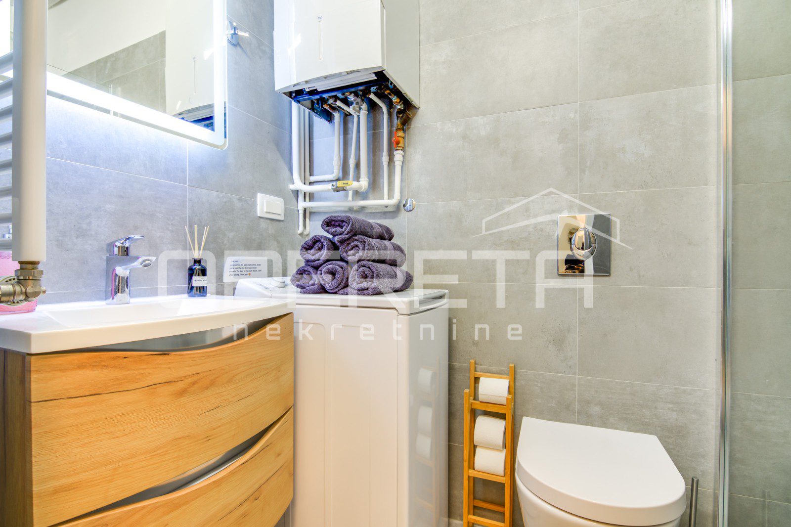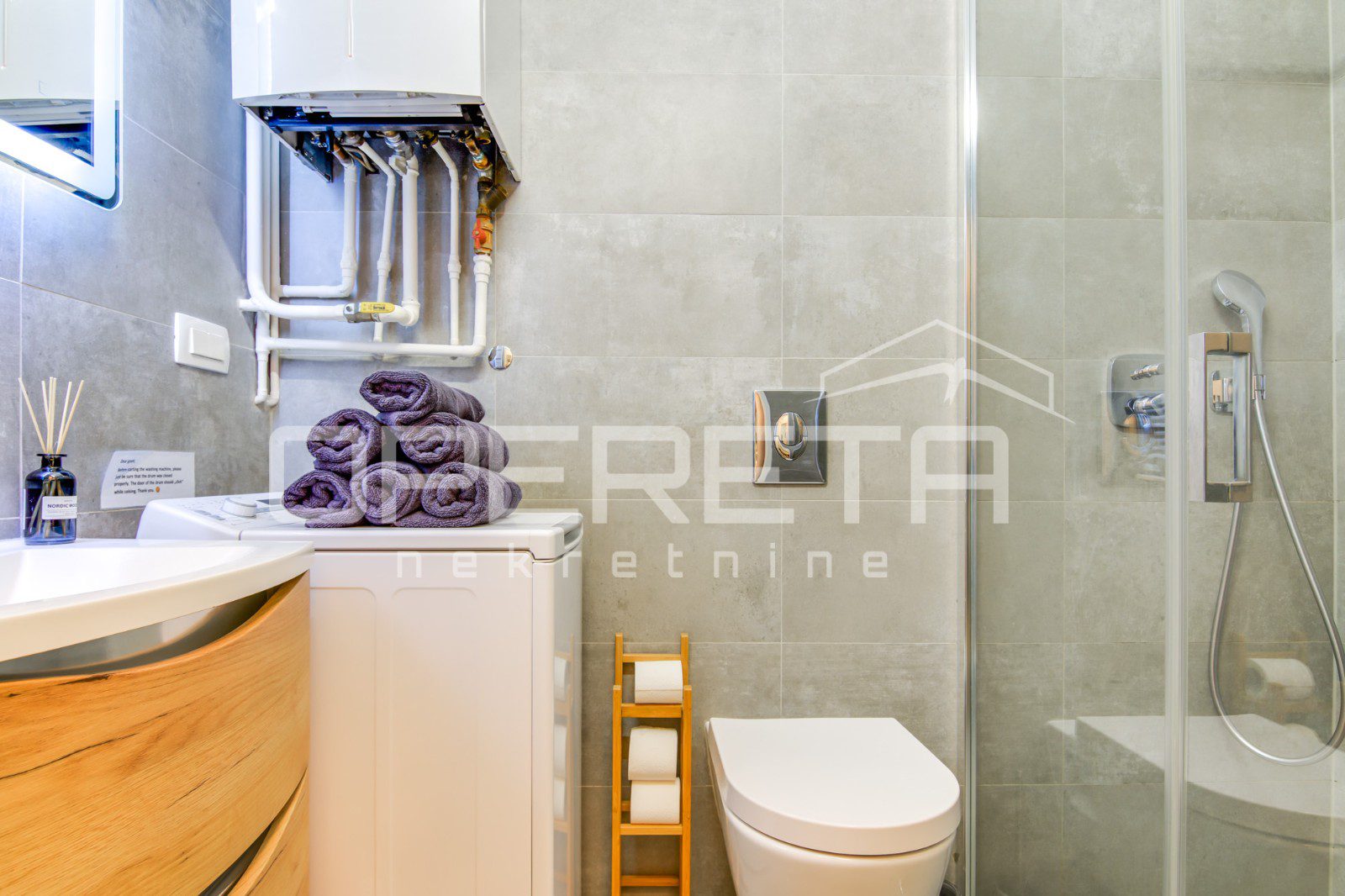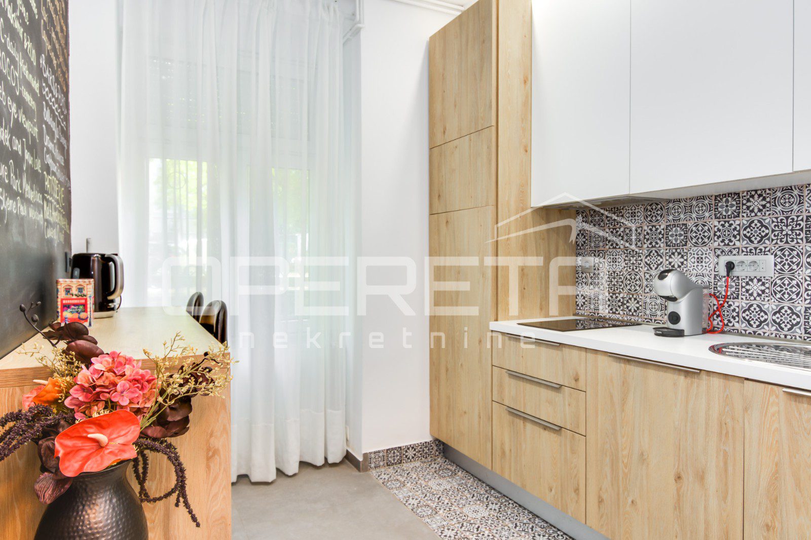 STAN PRODAJA, CENTAR, Đorđićeva ulica, prizemlje, 48 m2, 2-soban stan. Stan od 48 m² u Donjem gradu, neposredno uz Zrinjevac i Trg bana Jelačića, ne ističe se samo odličnom lokacijom i vrhunskim uređenjem, već i izvrsnim potencijalom za investiciju, što potvrđuju rezultati dosadašnjeg najma putem Airbnb-a. Stan je redovito uspješno iznajmljivan, kratkoročno i dugoročno, postizavši visoke cijene po noćenju i izvrsne ocjene od gostiju. Stan je dosad bio omiljen među gostima na Airbnb-u, ocijenjen 4,98/5,0 zbog čistoće, uređenja i idealne pozicije. Stan je svijetao, topao i ugodan, a ono što ga čini posebnim je terasa od čak 25 m², koja se koristi uz ovaj stan. Terasa gleda na mirno dvorište orijentirano prema jugu, što garantira sunce i privatnost.