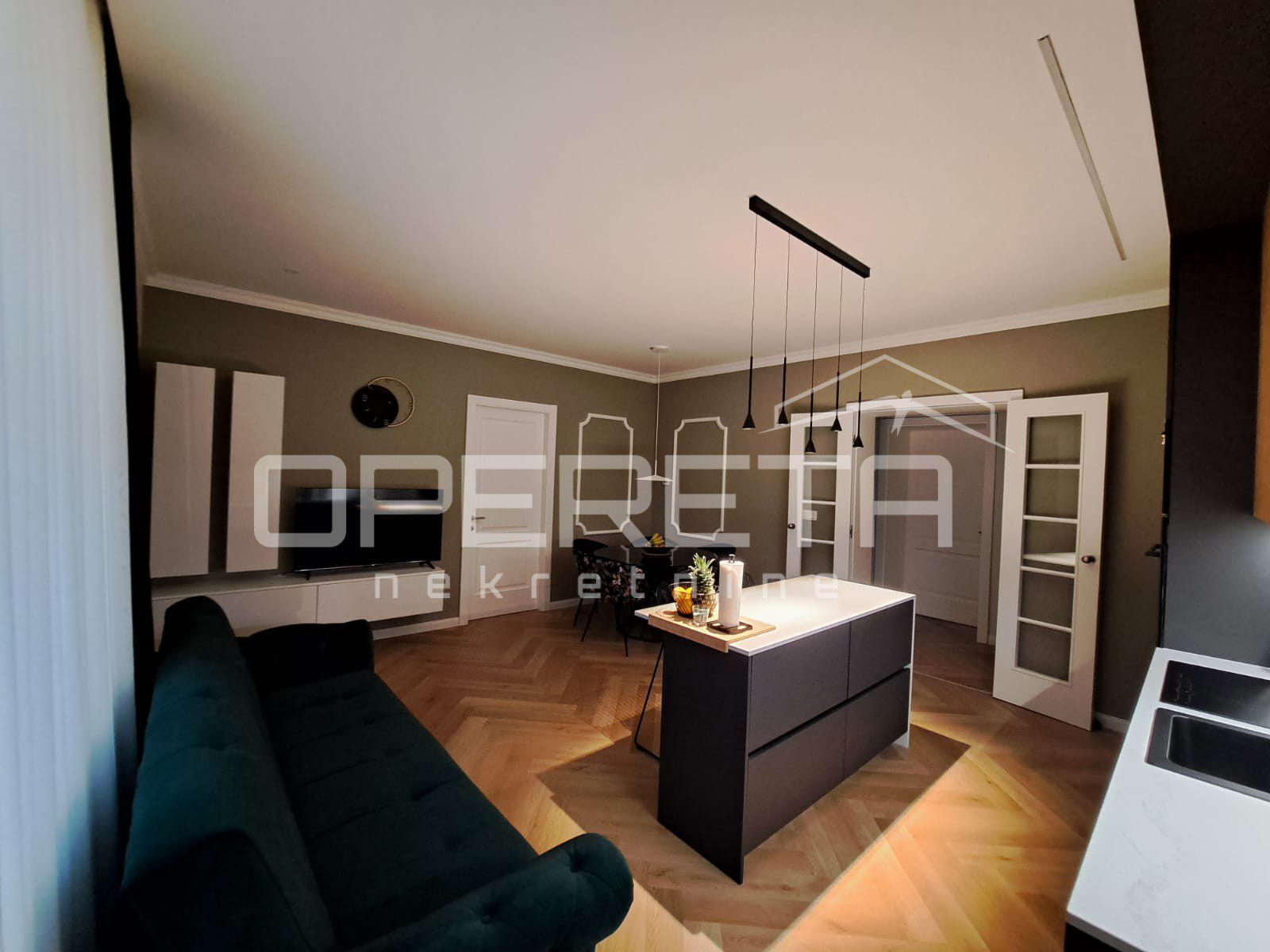 Na izuzetnoj lokaciji u staroj jezgri grada, a opet u dvorišnoj zgradi što garantira mir i tišinu smjestio se ovaj iz temelja novoadaptirani stan. Hidroizolacija, termoizolacija prve kategorije, podno grijanje, zidovi, podovi, stolarija, sve potpuno novo sa dugom garancijom. Sastoji se od ulaznog hodnika, dvije spavaće sobe, kuhinje, dnevnog boravka i blagovaonice u jednom, kupaonice s wc-om, garderobe, dodatna soba od 6 m2 te unutarnje terase. Papiri čisti.