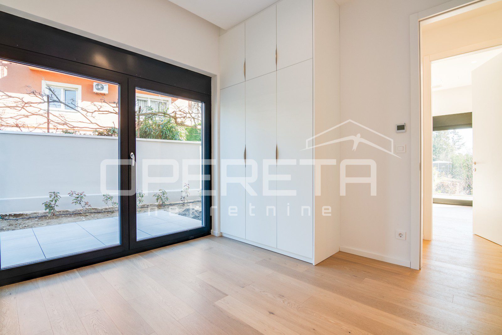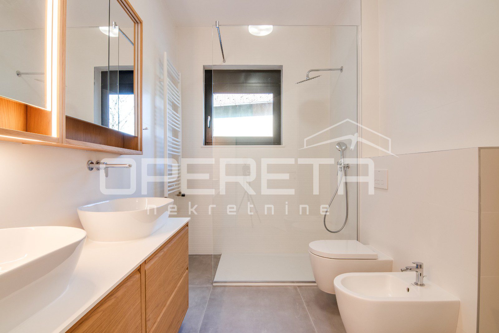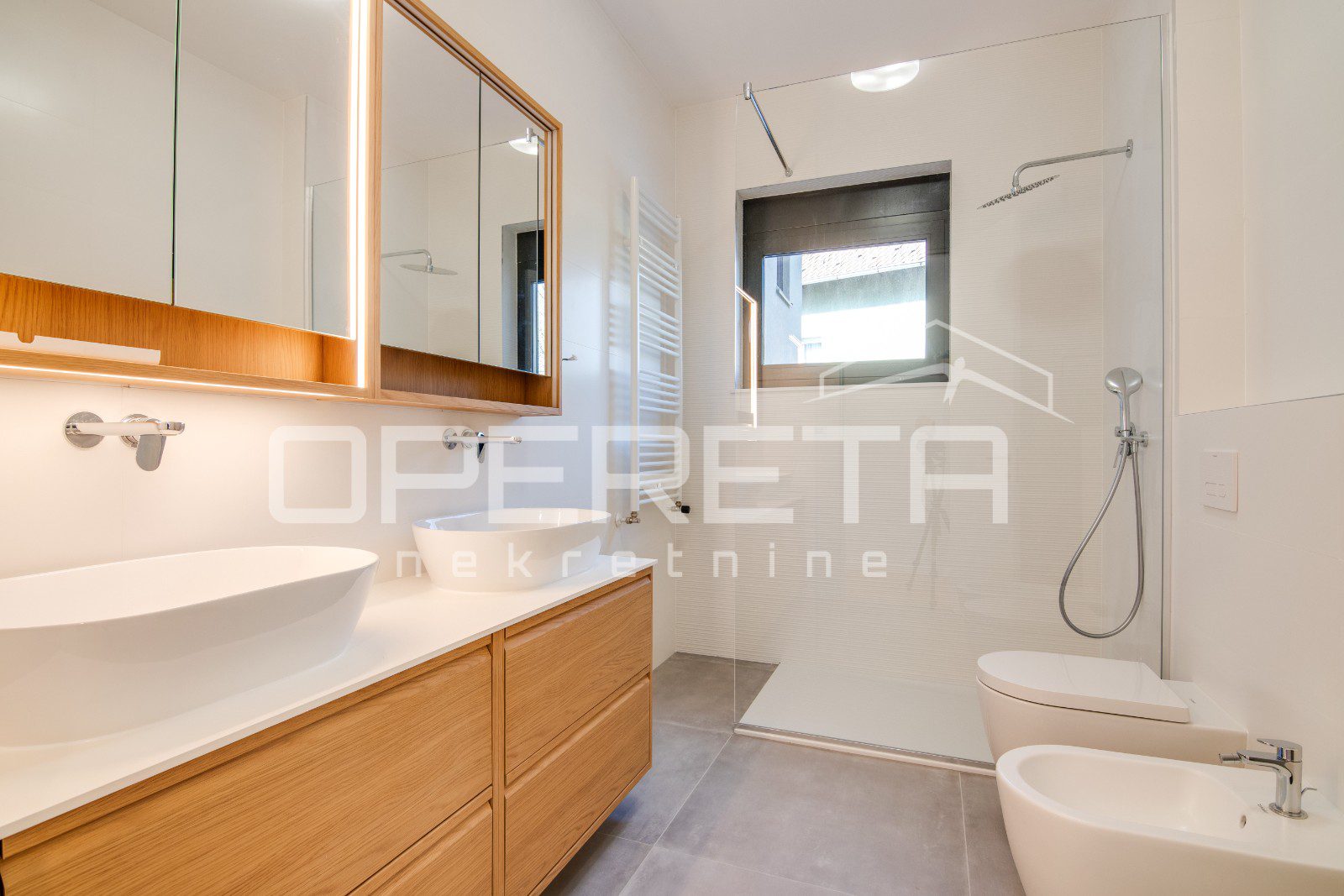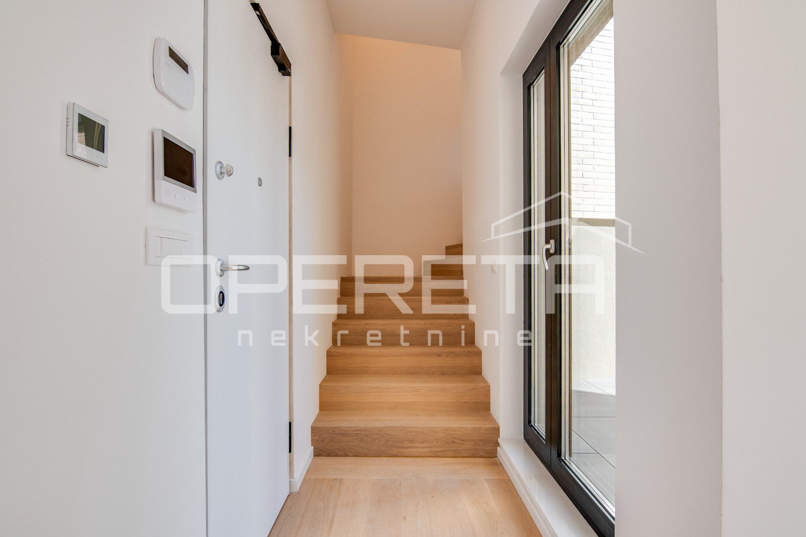 Stan ima 103m2 i sastoji se od: dnevnog boravka koji sa kuhinjom i blagovaonicom čini prelijepi open space prostor I nalazi se na drugoj etaži stana, 3 spavaće sobe od kojih jedna ima svoju kupaonicu te jedna odvojena kupaonica se nalaze na prvoj etaži stana. Stan ima i 4 prelijepe terase te dvorište od 50m2. Spremište od 20m2 u podrumu zgrade. Stanu pripada i garaža.