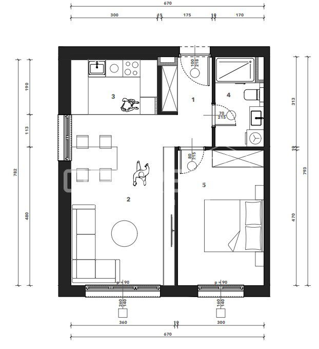 Sastoji se od ulaznog hodnika, kuhinje s blagovaonicom i dnevnog boravka, spavaće sobe i kupaonice. Uz stan je potrebno kupiti garažno mjesto i spremište.