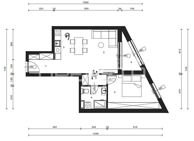 Sastoji se od ulaznog hodnika, kuhinje s blagovaonicom i dnevnog boravka, spavaće sobe, kupaonice i loggie. Uz stan je potrebno kupiti garažno mjesto i spremište.