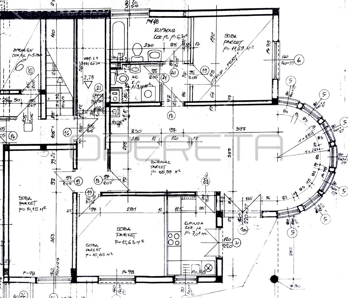 Vlasništvo čisto 1/1, bez tereta. Stan je u zk upisan 112.5 m2 plus spremište, imaju poseban ugovor i potpisanu suglasnost svih susjeda po kojoj stanu pripada cijeli vrt.