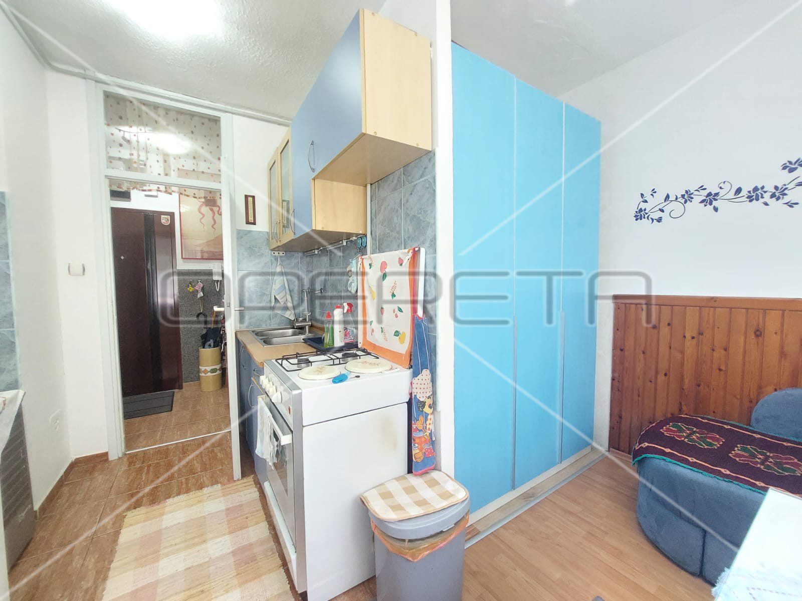 STAN PRODAJA, GORNJA DUBRAVA, Ulica Vebera Tkalčevića, 36,10 m2, visoko prizemlje, odlično održavana zgrada, južna orijentacija. Stan se sastoji od ulaznog hodnika, dnevnog boravka/spavaće sobe, kuhinje s blagovaonicom i kupaonice s wc-om. Uredan, održavan, svijetao, mikrolokacijski odlično pozicioniran, blizina svih sadržaja, parking oko zgrade. Idealan za samca, par ili kao investicija.