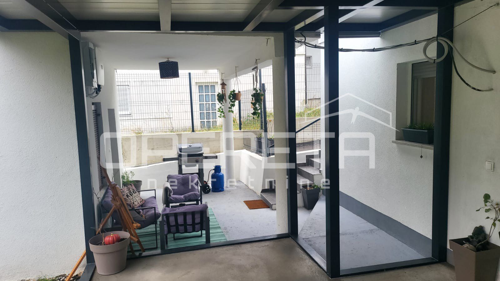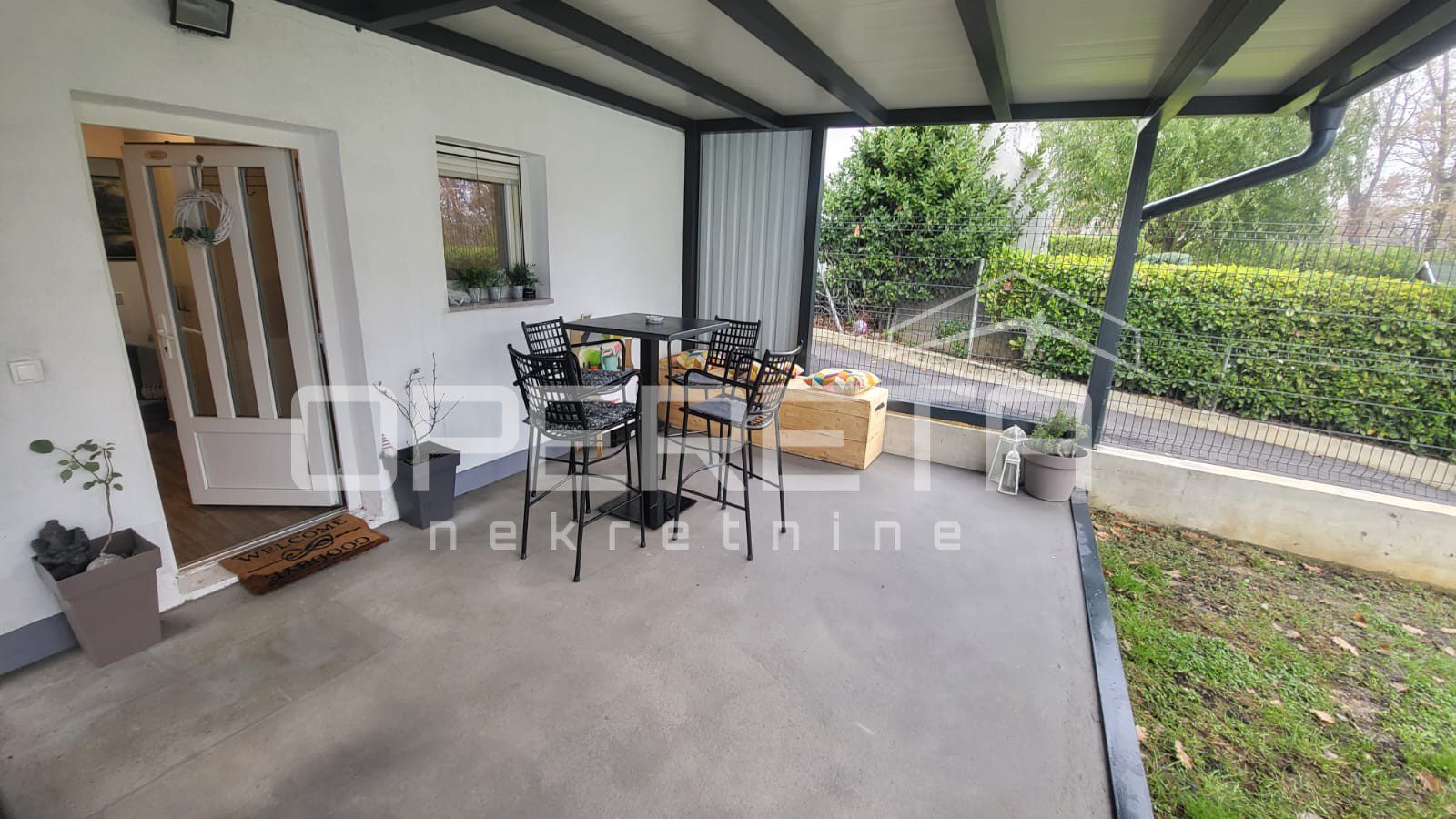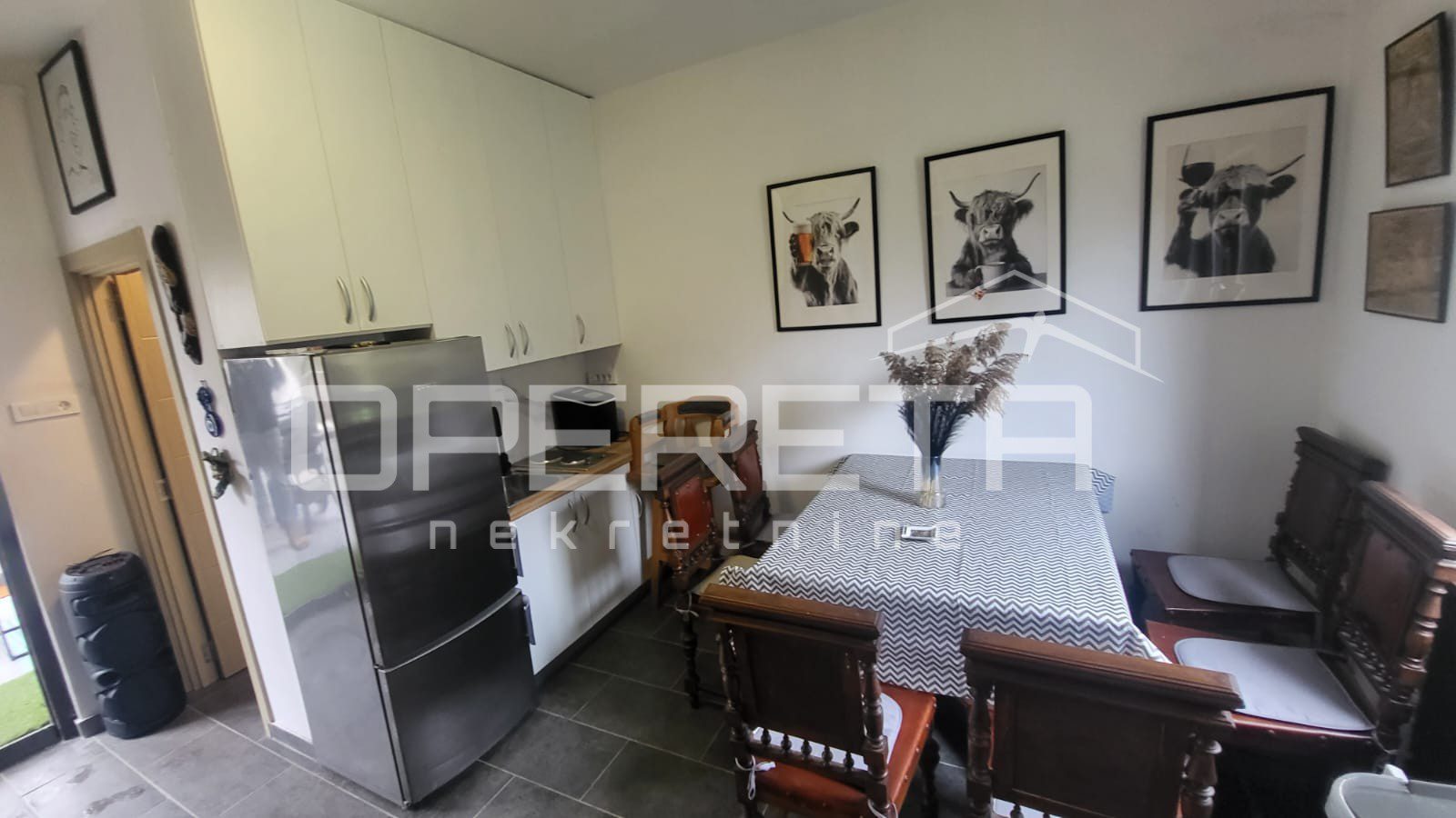 PRODAJA, STAN, Granešina, Novačka 2sobni. Prodaje se stan koji se sastoji od ulaznog prostora, kuhinje, kupaonice s wc-om, kuhinje s blagavaonicom, dnevnog boravka, spavaće 2 vanjska parkirna mjesta (41,46), zasebnog prostora za druženje s wcom i kuhinje (18,3m2), vrta 50m2 i natkrivene terase 5,43 m2. Nekretnina je kompletno renovirana (novo krovište, podna grijanja, solarni paneli, dovod-odvod, električne instalacije, sanitarije, prozori, fasada i kompletno okruženje oko kuće. Stan se prodajebnamješten kako je vidljivo na slikama.. Energetski certifikat C! Stan se nalazi u mirnom okruženju nadomak šume i nudi mir same lokacije. Bus na 100 m od zgrade vozi do okretišta Dubrave! U blizini dućan i šumski putevi tko voli šetati!