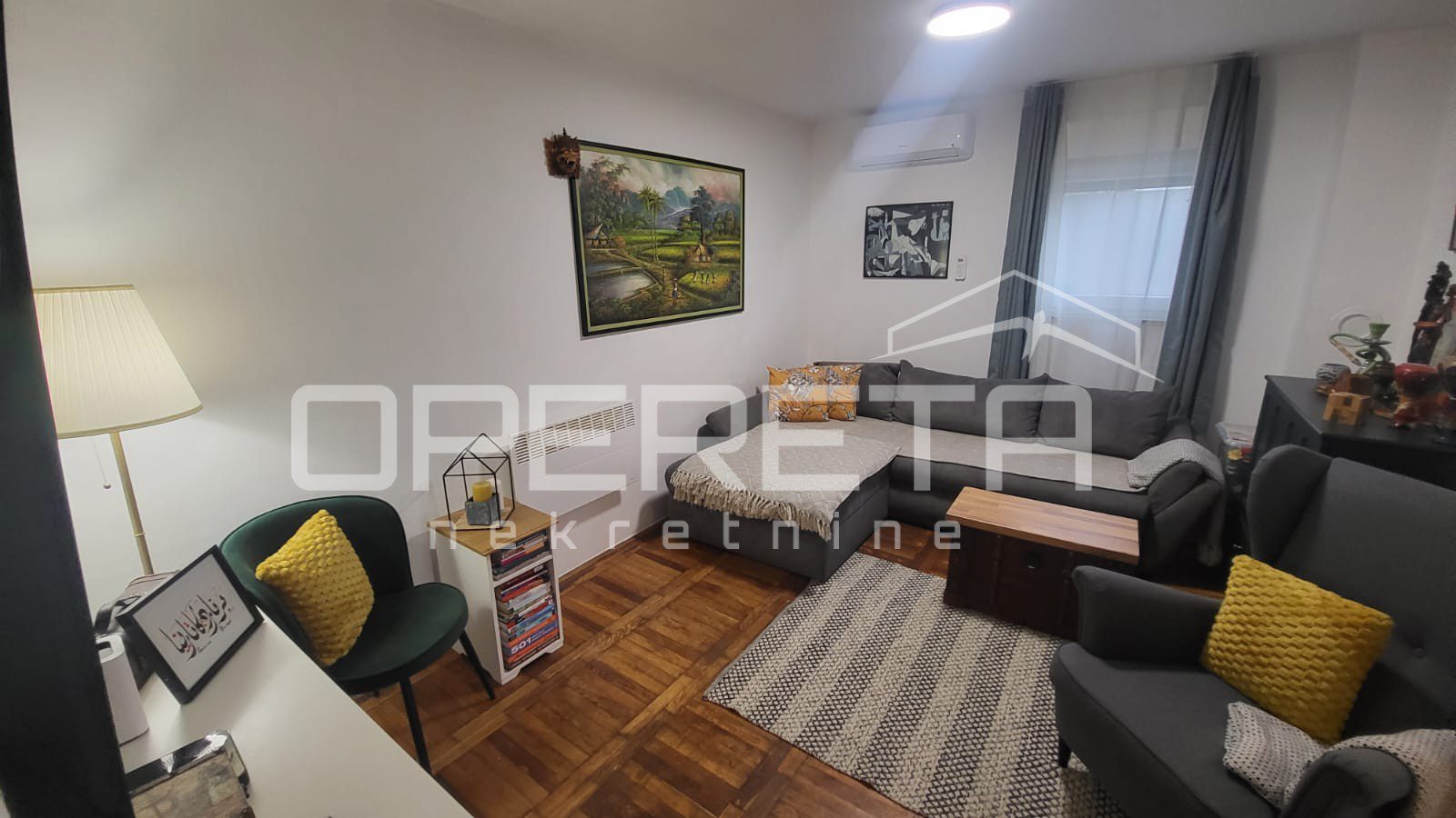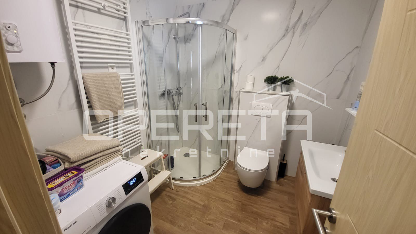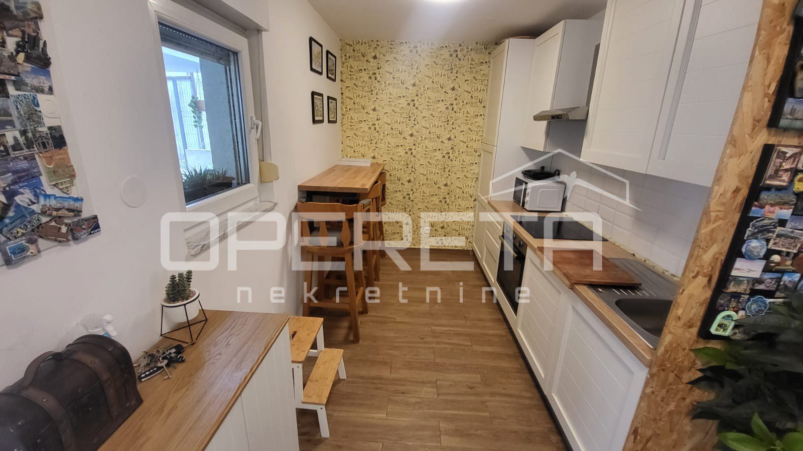PRODAJA, STAN, Granešina, Novačka 2sobni. Prodaje se stan koji se sastoji od ulaznog prostora, kuhinje, kupaonice s wc-om, kuhinje s blagavaonicom, dnevnog boravka, spavaće 2 vanjska parkirna mjesta (41,46), zasebnog prostora za druženje s wcom i kuhinje (18,3m2), vrta 50m2 i natkrivene terase 5,43 m2. Nekretnina je kompletno renovirana (novo krovište, podna grijanja, solarni paneli, dovod-odvod, električne instalacije, sanitarije, prozori, fasada i kompletno okruženje oko kuće. Stan se prodajebnamješten kako je vidljivo na slikama.. Energetski certifikat C! Stan se nalazi u mirnom okruženju nadomak šume i nudi mir same lokacije. Bus na 100 m od zgrade vozi do okretišta Dubrave! U blizini dućan i šumski putevi tko voli šetati!