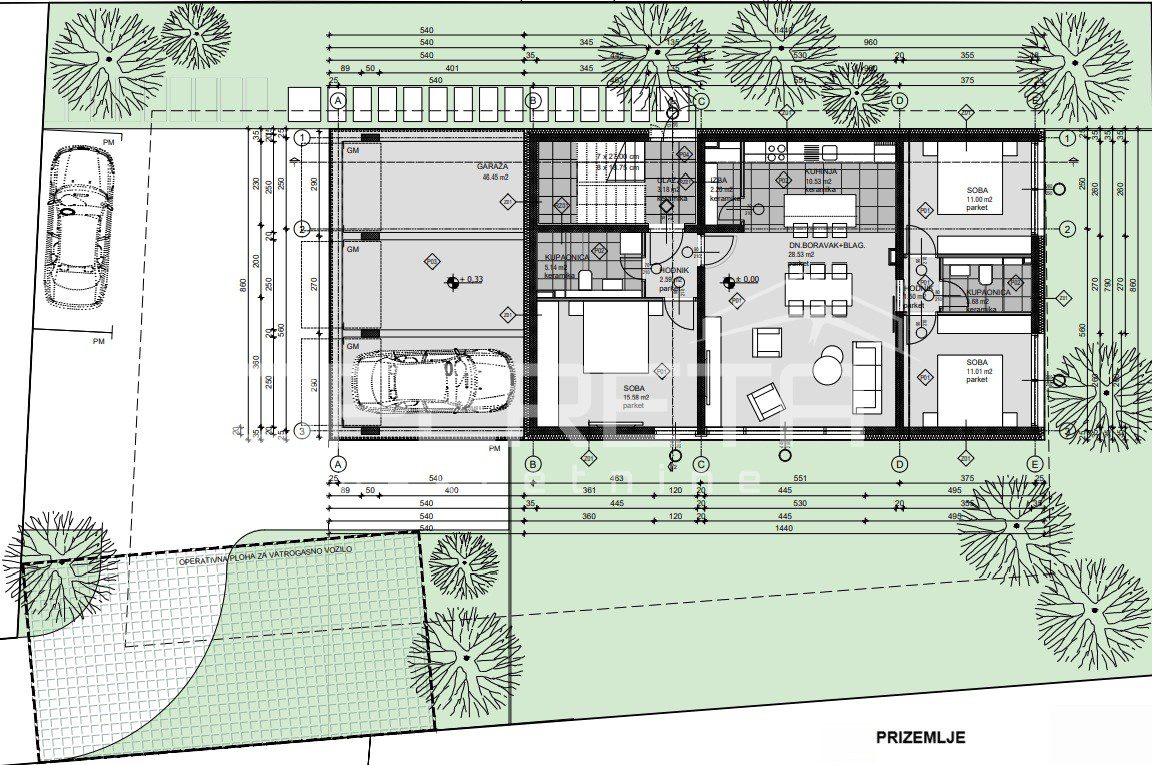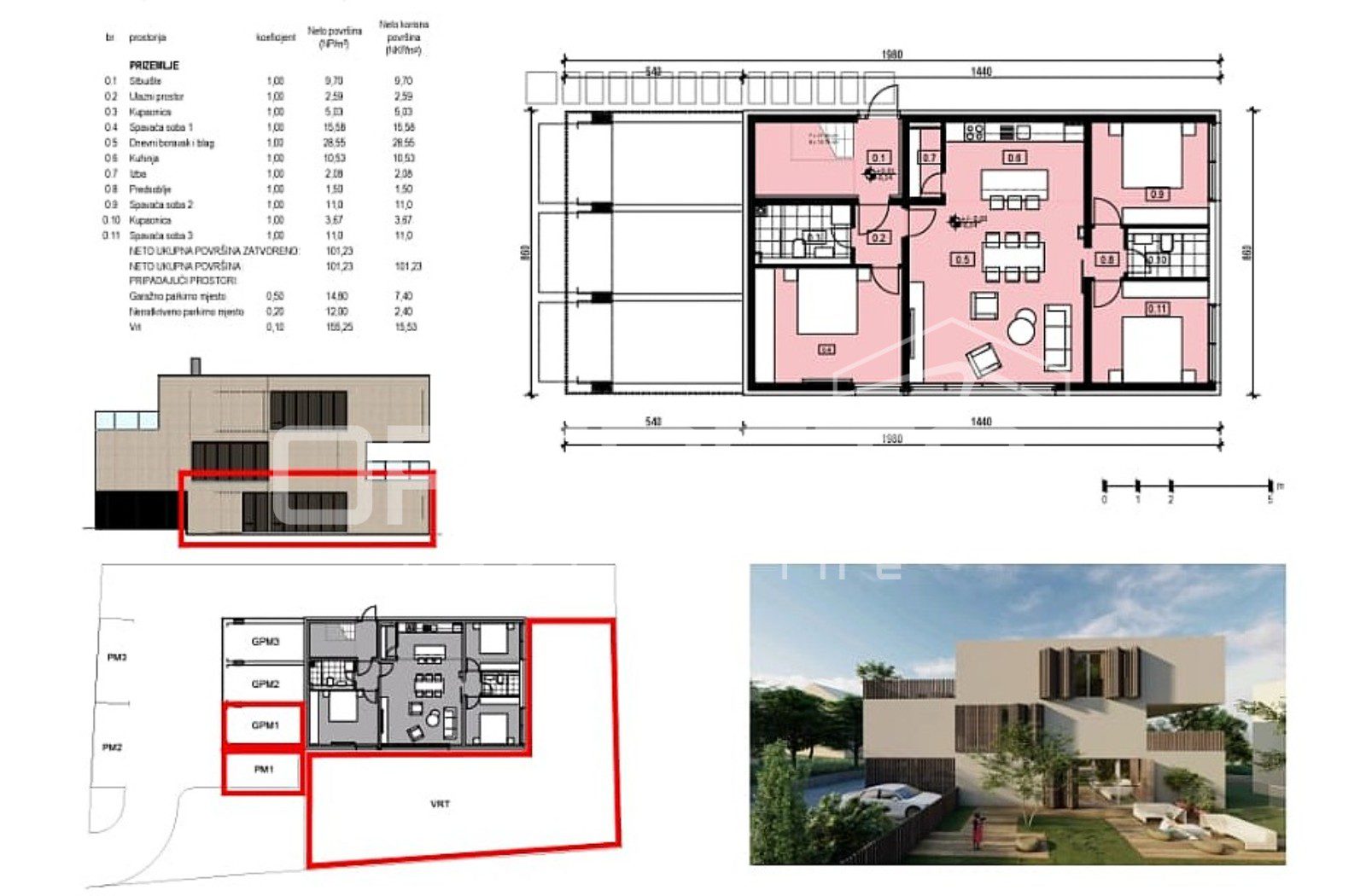 Dnevni boravak i spavaće sobe imaju izlaz na vrt. U ukupnu kvadraturu obračunato su po koeficijentima garažno parkirno mjesto, vanjsko parkirno mjesto te vrt od 155m2. Stan je izveden prema suvremenim standardima gradnje i opremljen podnim grijanjem, te keramikom velikih formata. PVC stolarija s troslojnim staklom osigurava dobru toplinsku i zvučnu izolaciju, dok sigurnosna protuprovalna vrata pružaju dodatnu razinu zaštite. Sustav grijanja i hlađenja temelji se na dizalici topline, uz mogućnost individualne regulacije. Klimatizacijski uređaji postavljeni su u svim prostorijama, a stan je pripremljen za implementaciju „smart home“ rješenja koja omogućuju upravljanje rasvjetom, grijanjem i sjenilima. Unutarnja stolarija izvedena je u modernom dizajnu, a ukupna oprema omogućuje visoku razinu funkcionalnosti i udobnosti stanovanja. Ovaj prostrani, svijetli i moderan stan s vrtom pruža osjećaj kao da živite u kući. Savršen je za stvaranje nezaboravnih uspomena s obitelji i uživanje u druženjima s prijateljima. Mirna lokacija okružena zelenilom nadomak grada i Park šume Maksimir pruža savršenu ravnotežu između urbanog života i prirodnog okruženja. Završetak gradnje proljeće 2026. godine, stan glasi na fizičku osobu. Slike su 3D vizualizacije informativnog karaktera.