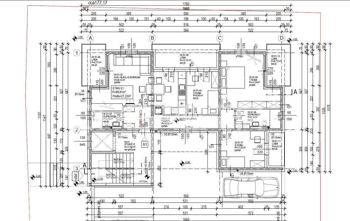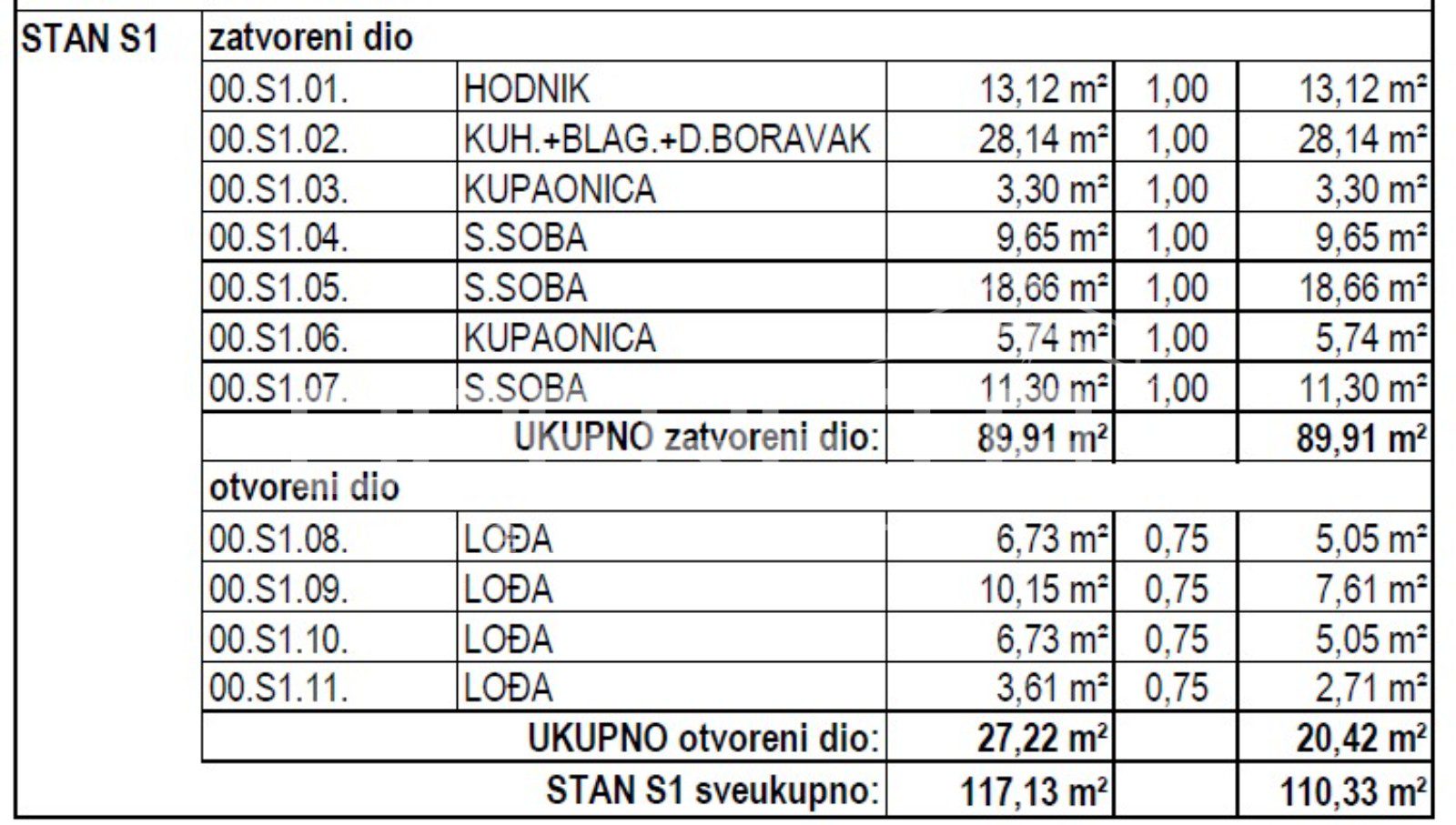Neto površina unutarnjeg stambenog prostora iznosi 89,91 m2.