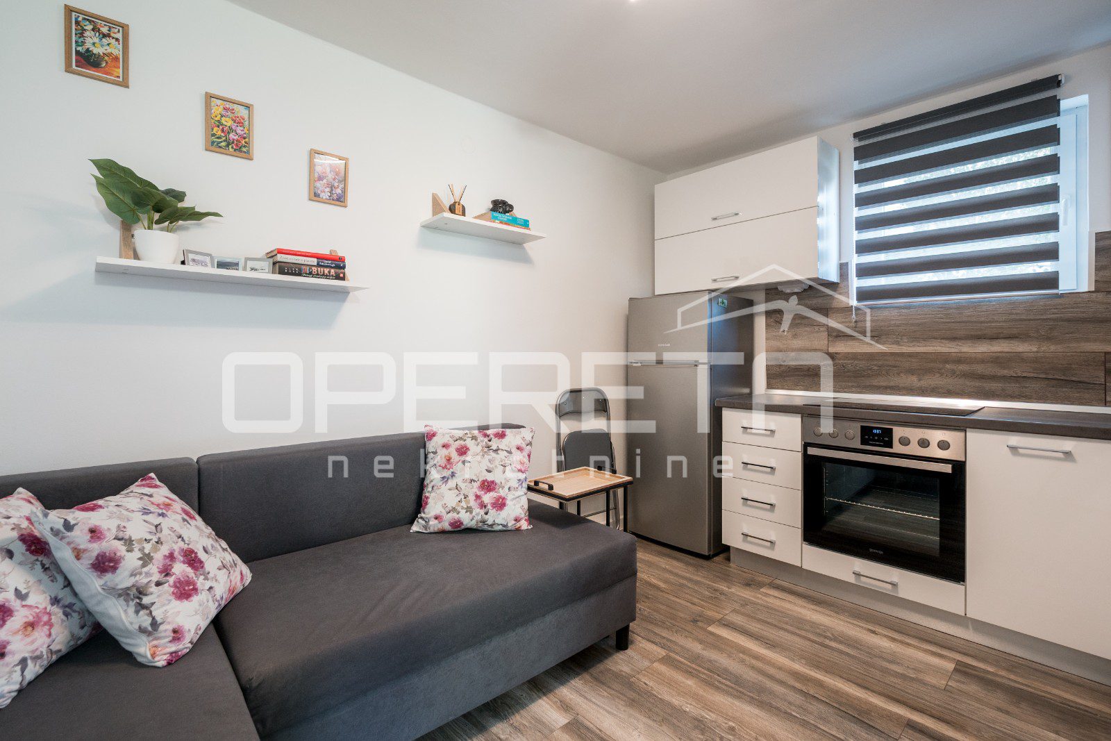 Na prodaju nudimo lijep i funkcionalan, prizemni stan veličine 26,19m2 s odvojenom spavaćom sobom, vlastitim vrtom veličine 25,21m2, natkrivenom terasom 4,81m2 te malim spremištem od 1,05m2, obračunato po koeficijentima 30m2.