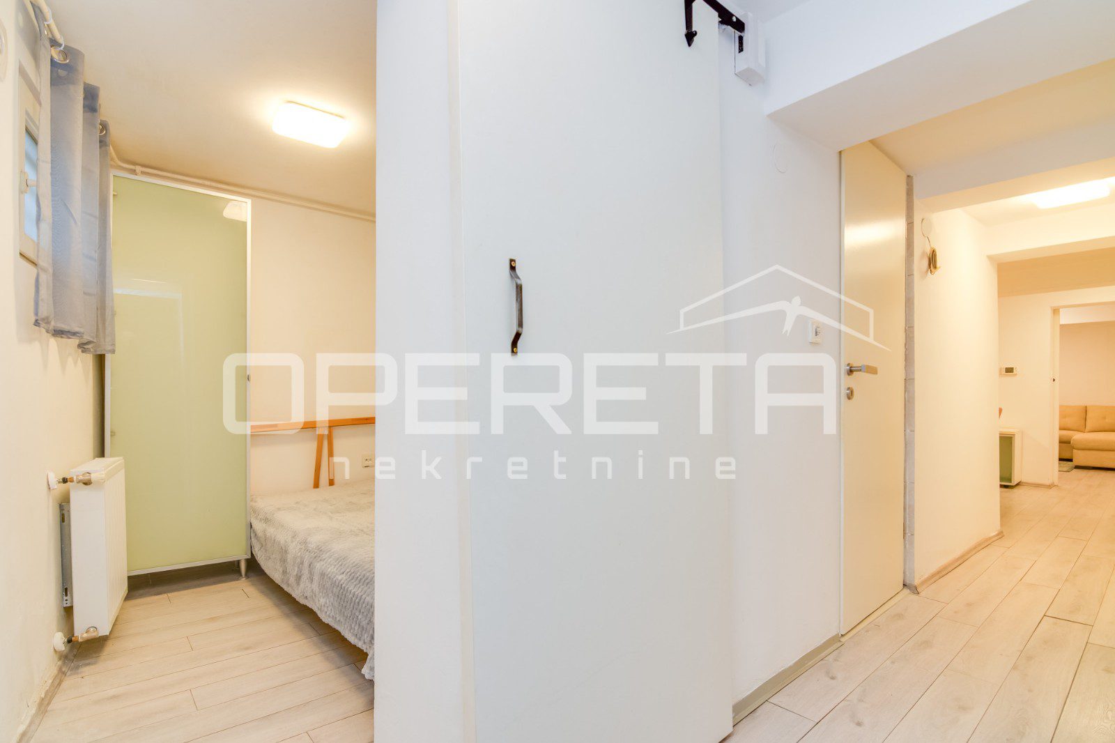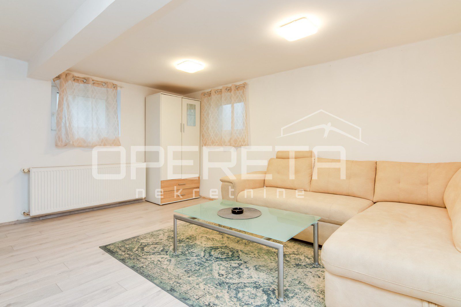 U mirnoj ulici nedaleko od zelenila Maksimira prodaje se šarmantan trosoban stan površine 62,50 m², smješten u suterenu održavane zgrade.