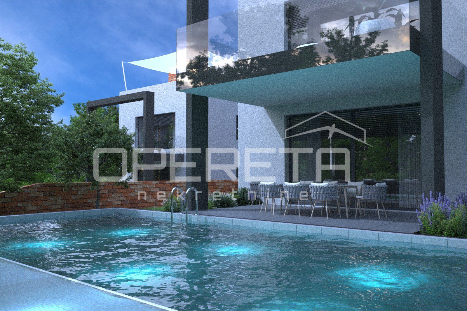 Urbana vila se sastoji od 3 stambene jedinice, svaka na jednom katu, stanu pripada jedno garažno, i jedno vanjsko parking mjesto. Zgrada također ima lift.