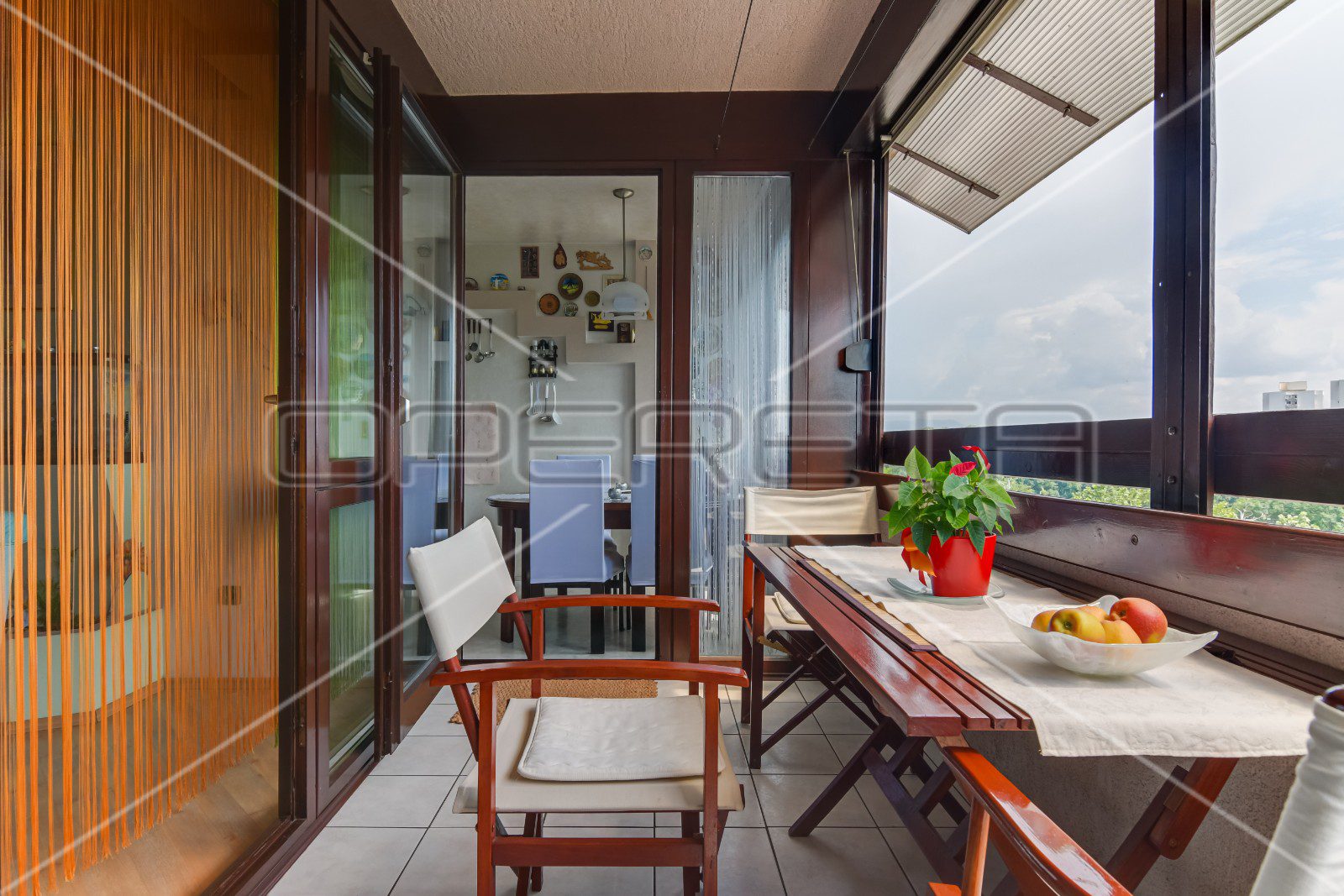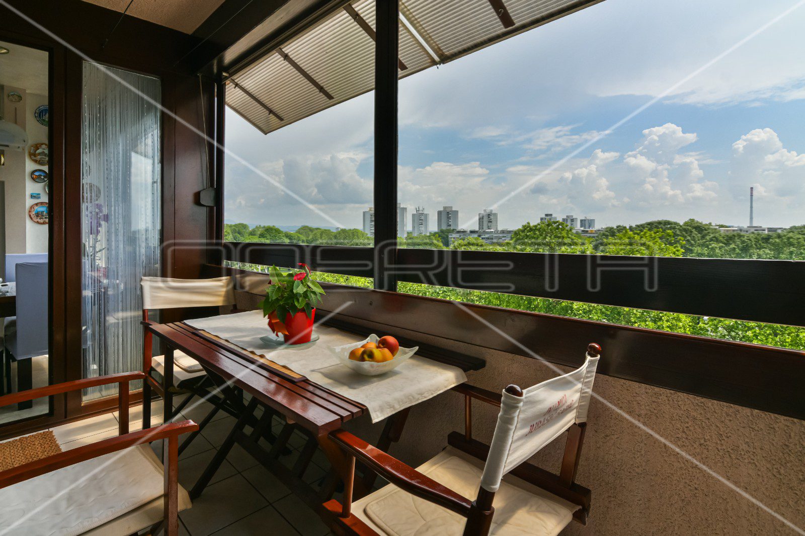 Prodaje se stan vrlo kvalitetne gradnje, adaptiran najkvalitetnijim materijalima, koji se sastoji od ulaznog prostora, dnevnog boravka, 2 spavaće sobe, kuhinje, blagovaonice, kupaonice s toaletom i lođe s koje se pruža predivan pogled na zelenilo. Svaka prostorija je komforna te je moguće dobiti još jednu dječju ili radnu sobu. Stan je na 7. katu od ukupnih 10, odlično održavane zgrade koja ima 3 lifta, uređeno prizemlje, video portafon, spremište i biciklarnik. Zahvaljujući bogatim sadržajima, zelenim površinama i mirnoći života Središće slovi kao najpopularniji kvart u Novom Zagrebu. Preporučujemo za obitelj!