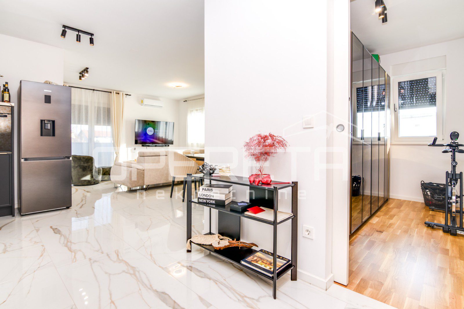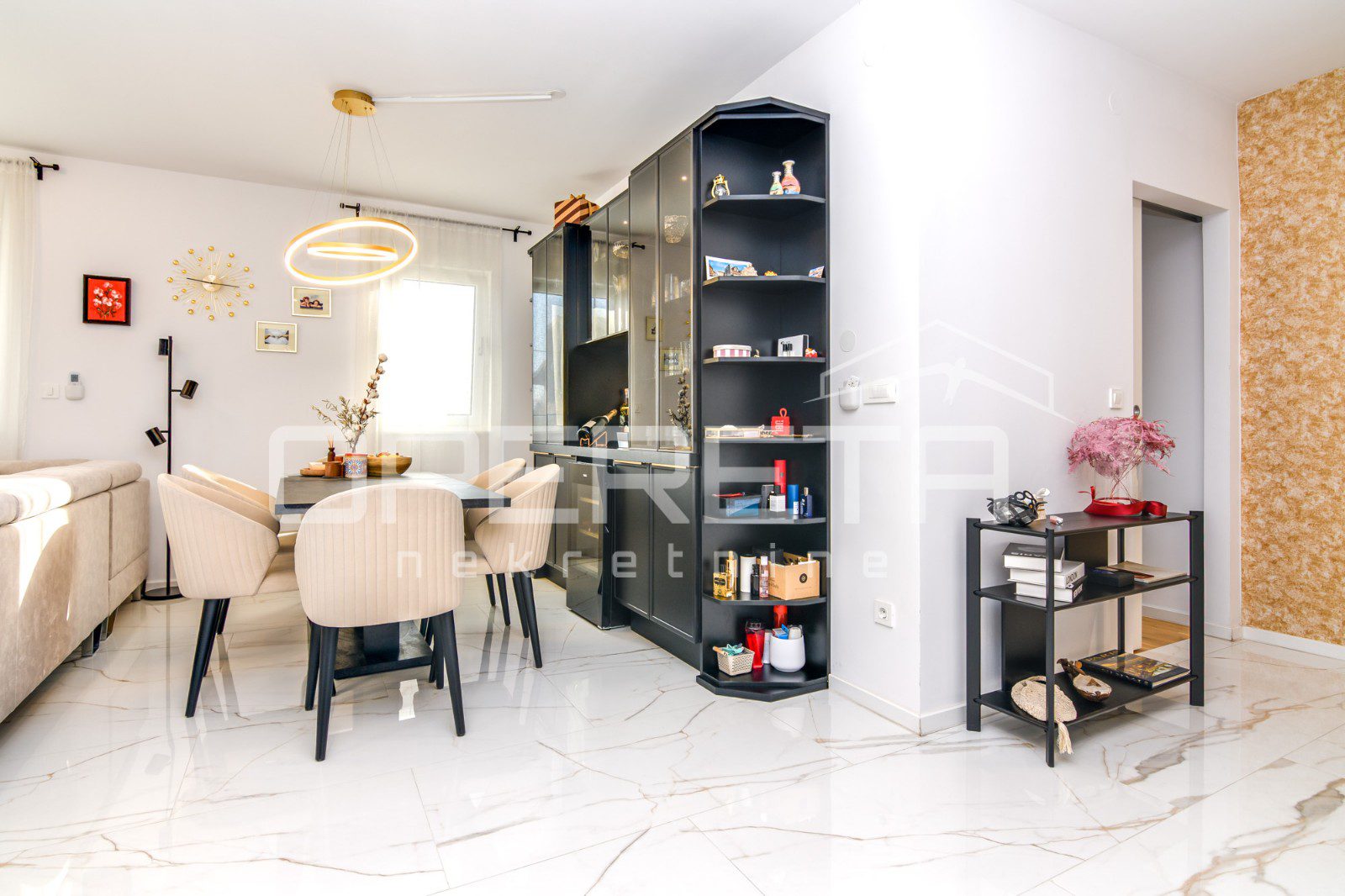 STAN PRODAJA, NOVI ZAGREB – ZAPAD, Blato, Goleška ulica, 3-soban stan na 1. katu zgrade iz 2024. godine, sa liftom, koji se sastoji od ulaza, kupaonice sa wc-om, prostranog dnevnog boravka koji komunicira sa kuhinjom i blagovaonicom, spavaće sobe, dječje sobe koja se trenutno koristi kao garderobni prostor, ukupne površine 59,62 m2 + balkon + loggia i spremište koje je na istom katu gdje i stan. Uz stan se u navedenoj kvadraturi, a sve obračunato po koeficijentu, prodaje i garažno mjesto površine 14,58 m2 koje zapravo zaokružuje ovu odličnu priču. Prodaje se kompletno namješten. Preporuka!