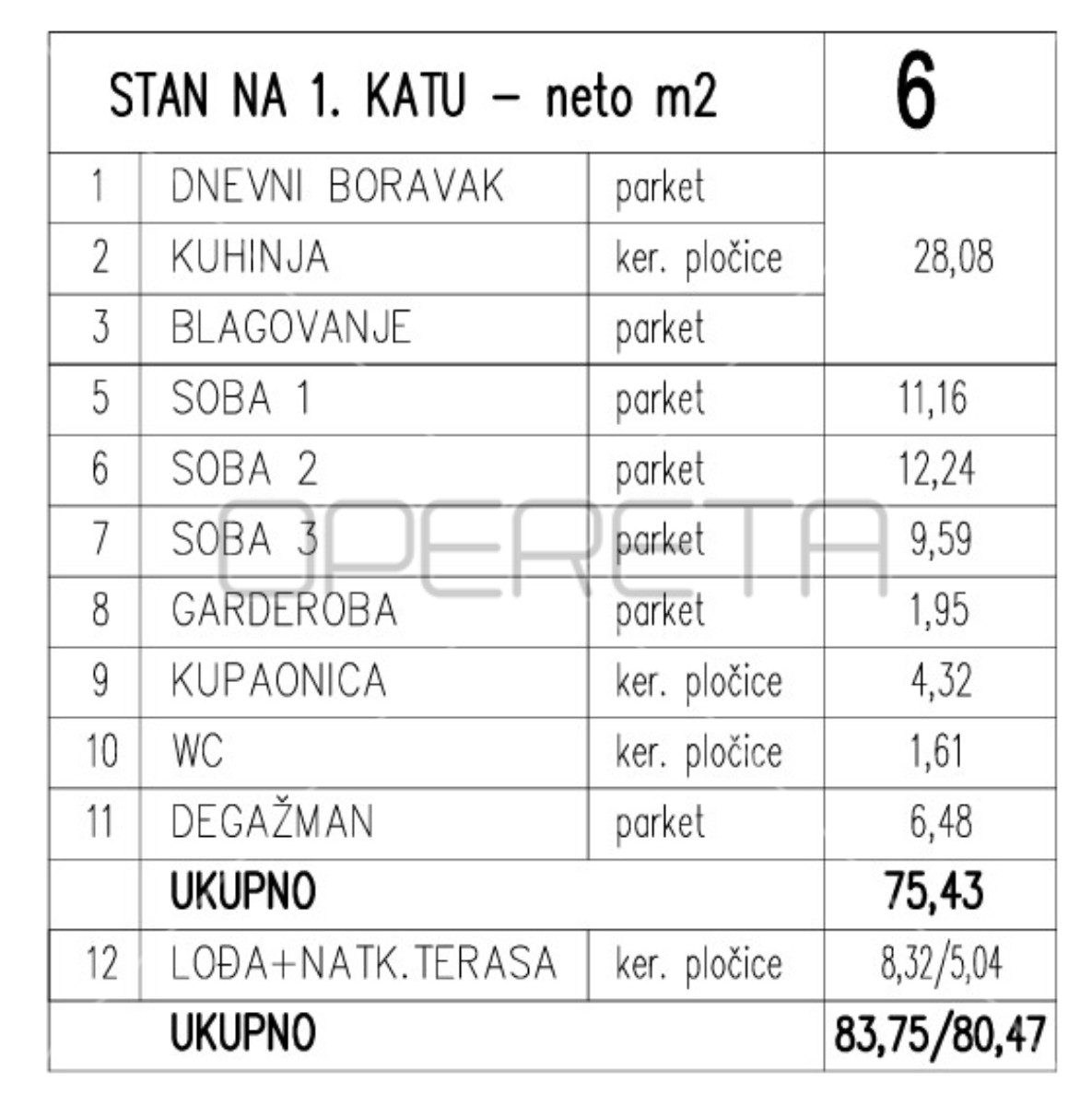 PRODAJA, STAN, ZAGREB, ČEHI, 81m2, stan 4-soban u novogradnji. Stan ima 75m2 zatvorenog prostora i sastoji se od: ulaznog prostora, dnevnog boravka, kuhinje i blagovaonice koji zajedno čine veliki open space prostor, 3 spavaće sobe, kupaonice sa wc-om, jednog odvojenog wc-a, degažmana i hodnika. U ukupnu kvadraturu stana ulaze loggia i natkrivena terasa obračunati po koeficijentu. Uz stan je obvezna i kupovina garažnog mjesta od 12,5m2 uz nadoplatu iznosa od 13.250 EUR. Zgrada ima lift od garaže do zadnjeg kata, solarnu elektranu, toplinske pumpe sa kvalitetnom termofasadom i stolarijom (PVC). Stan će glasiti na firmu pa Kupac ne plaća 3% porez na promet nekretninama.