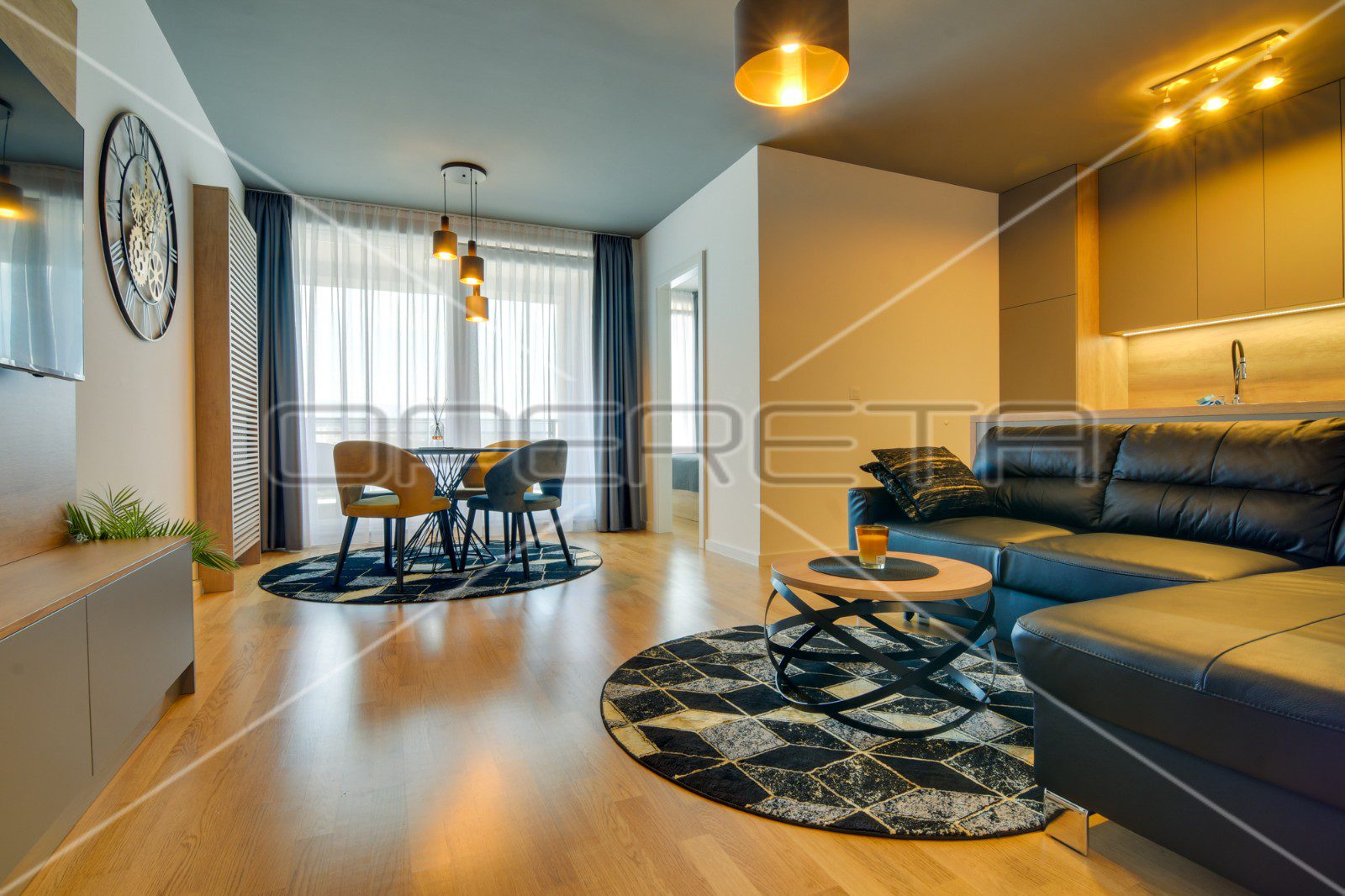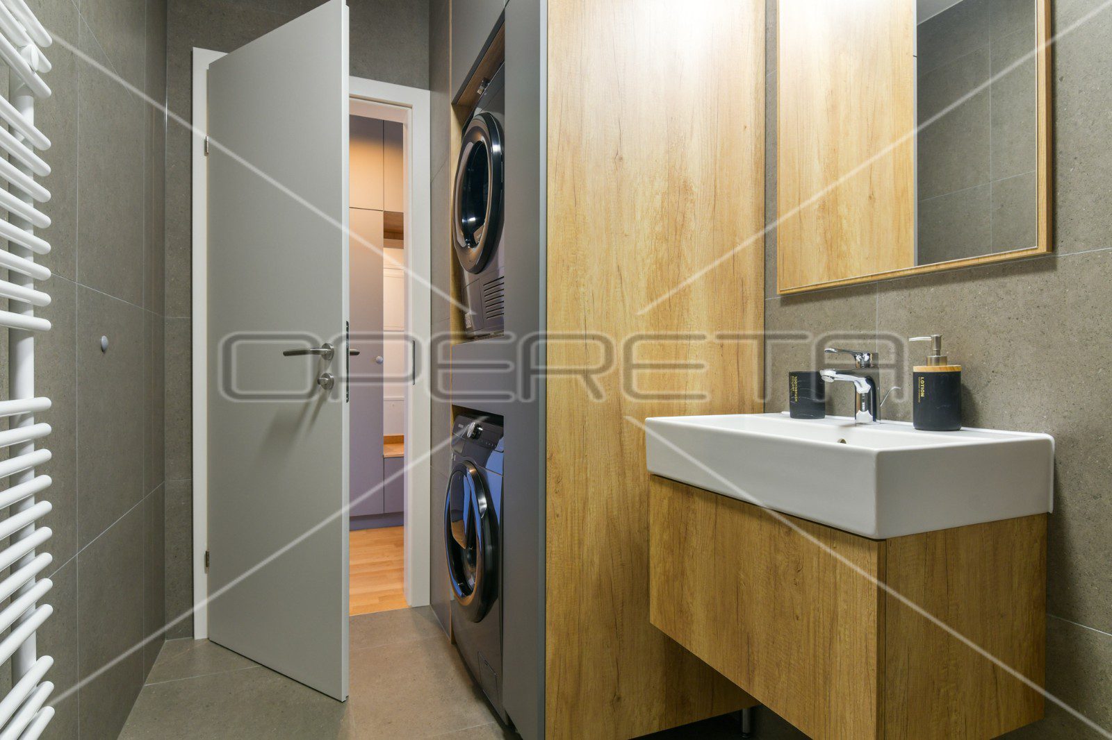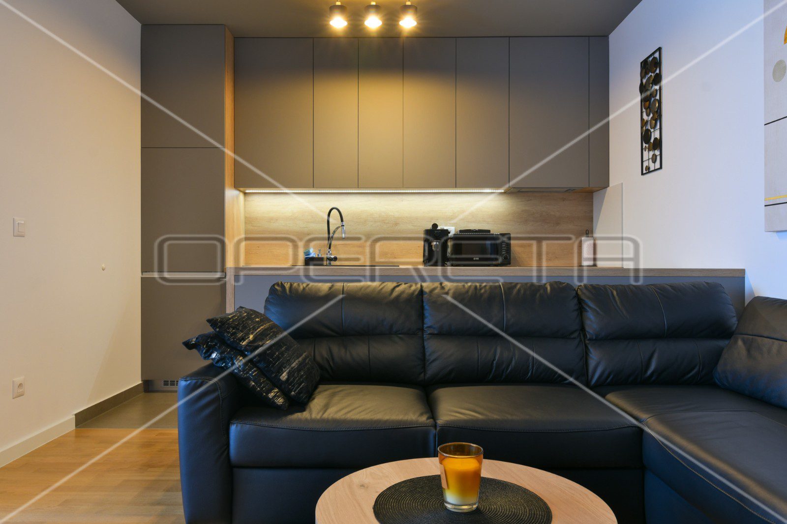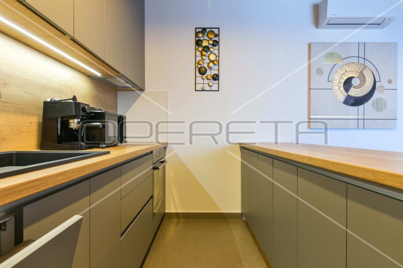 Stan je u potpunosti namješten, skladnim dizajnerskim namještajem kao i svim uređajima potrebnim za svakodnevni život, od perilice rublja i suđa, do kava aparata, mikrovalne pećnice, sokovnika i prijenosnog grilla…