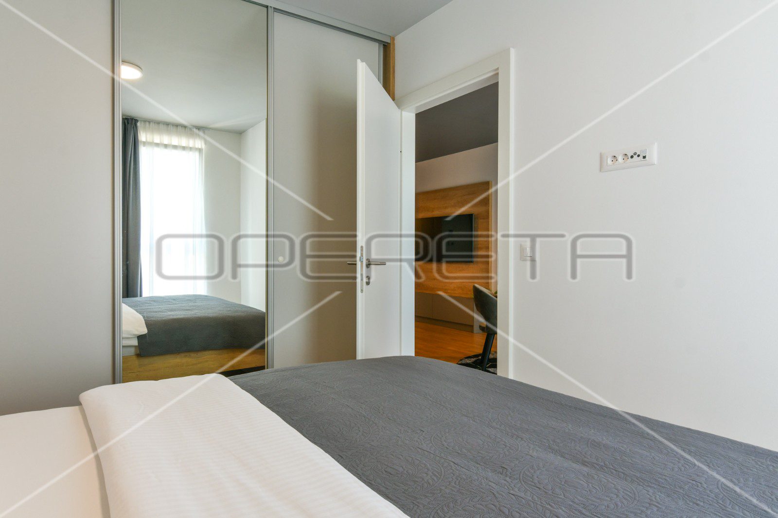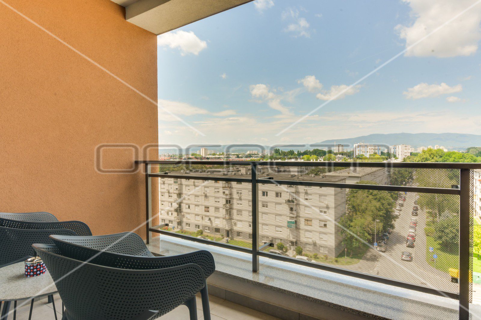 Iznajmljuje se stan na sedmome katu novoizgrađene zgrade s liftom i garažnim parking mjestom.