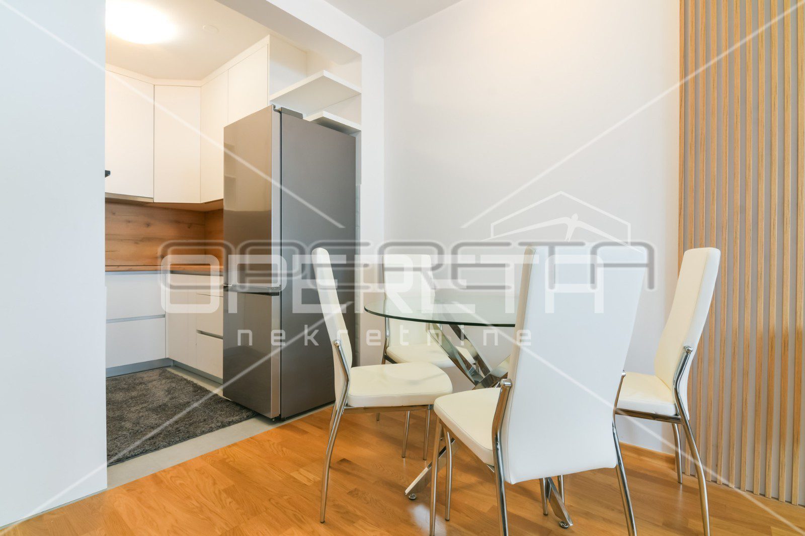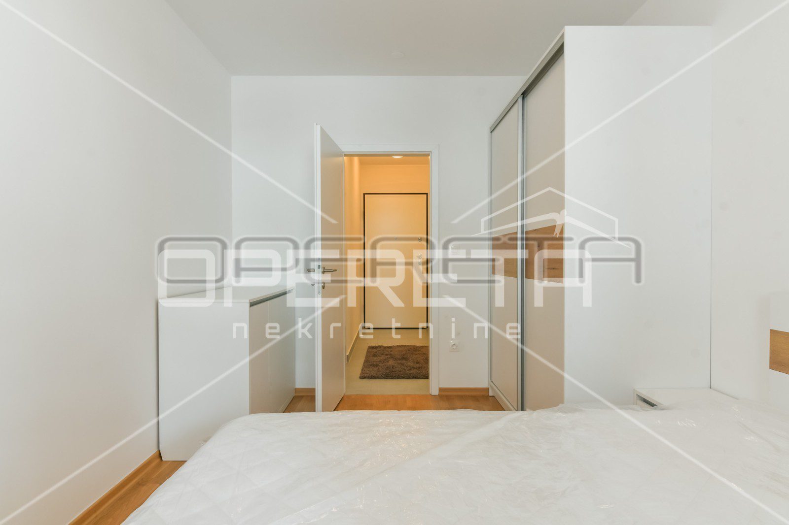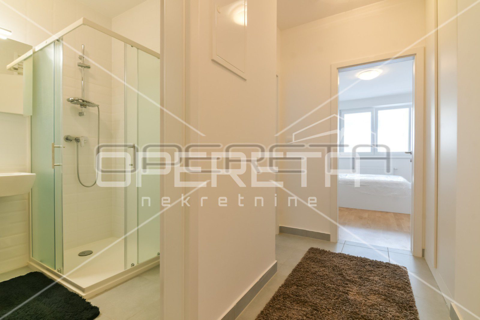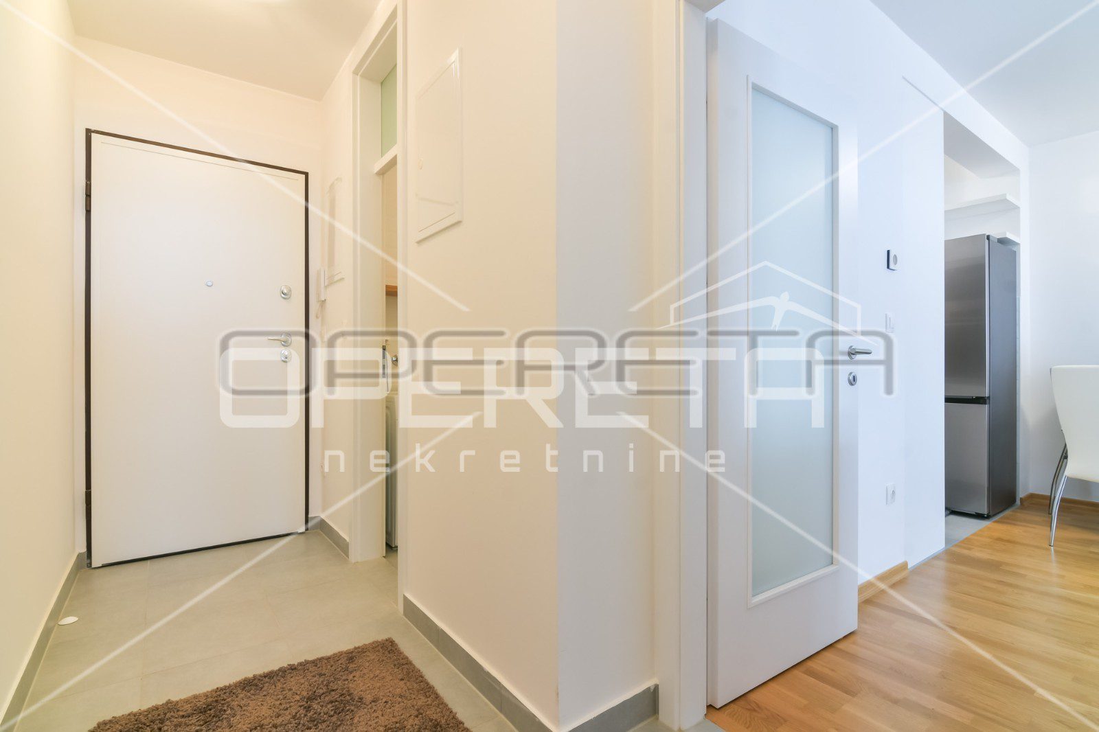 Sastoji se od ulaznog hodnika, kupaonice, spavaće sobe te open space kuhinje s dnevnom boravkom i blagovaonicom s izlazom na loggiu.