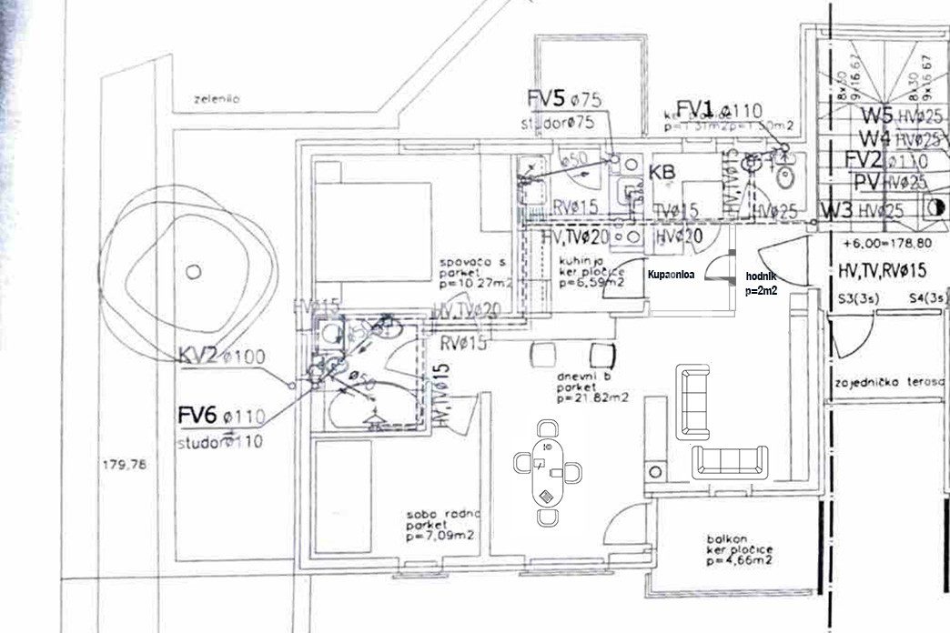 Uz stan dolazi parkirno mjesto, garaža i spremište u prizemlju zgrade.