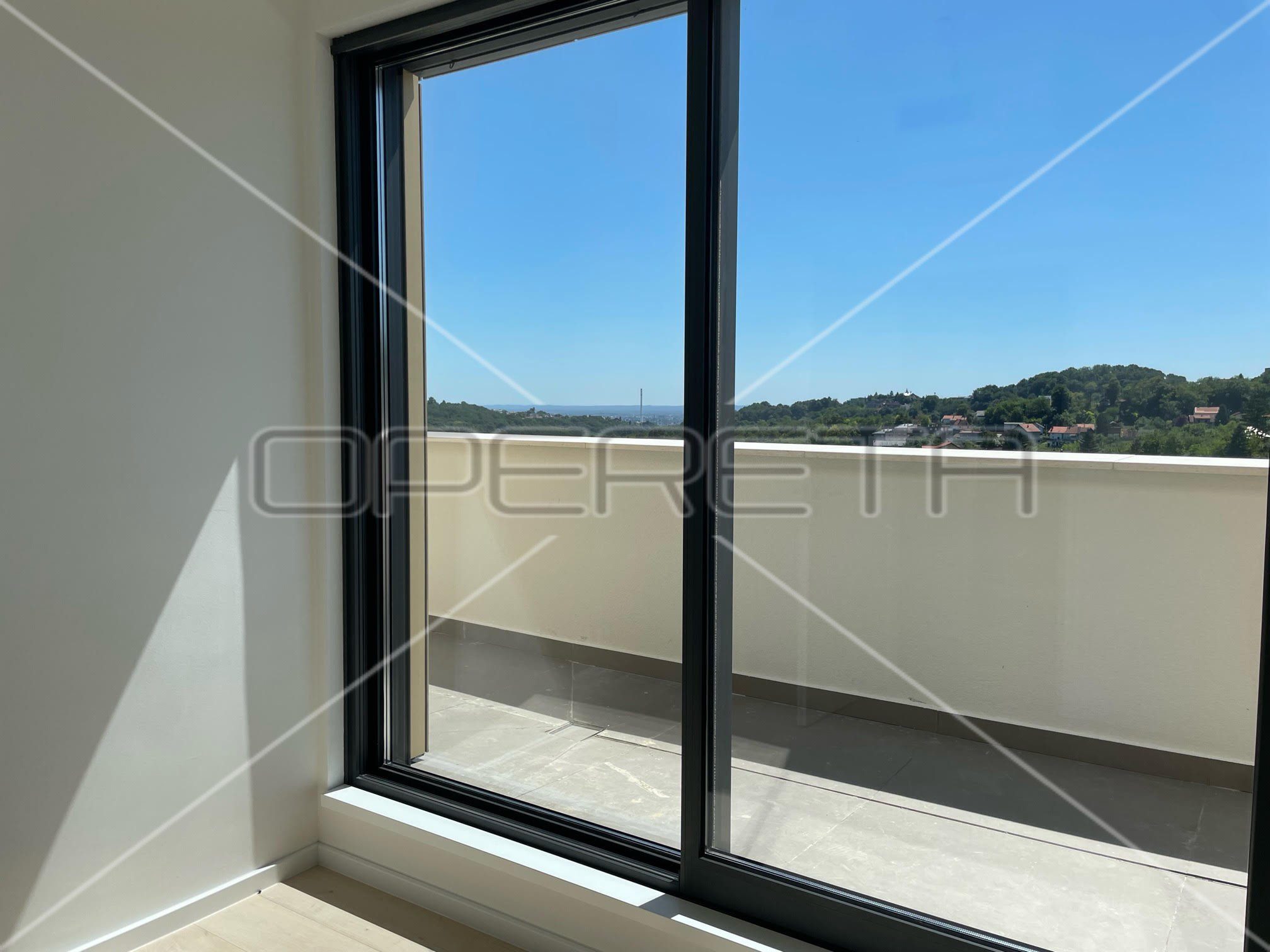 Prodaje se luksuzna novogradnja sa predivnim pogledom. Stan se sastoji od open space kuhinjom/boravkom, dvije spavaće sobe, wc, kupaona, i velika terasa od 60m2. Stanu pripada vanjsko parking mjesto, garažno parking mjesto i spremište.