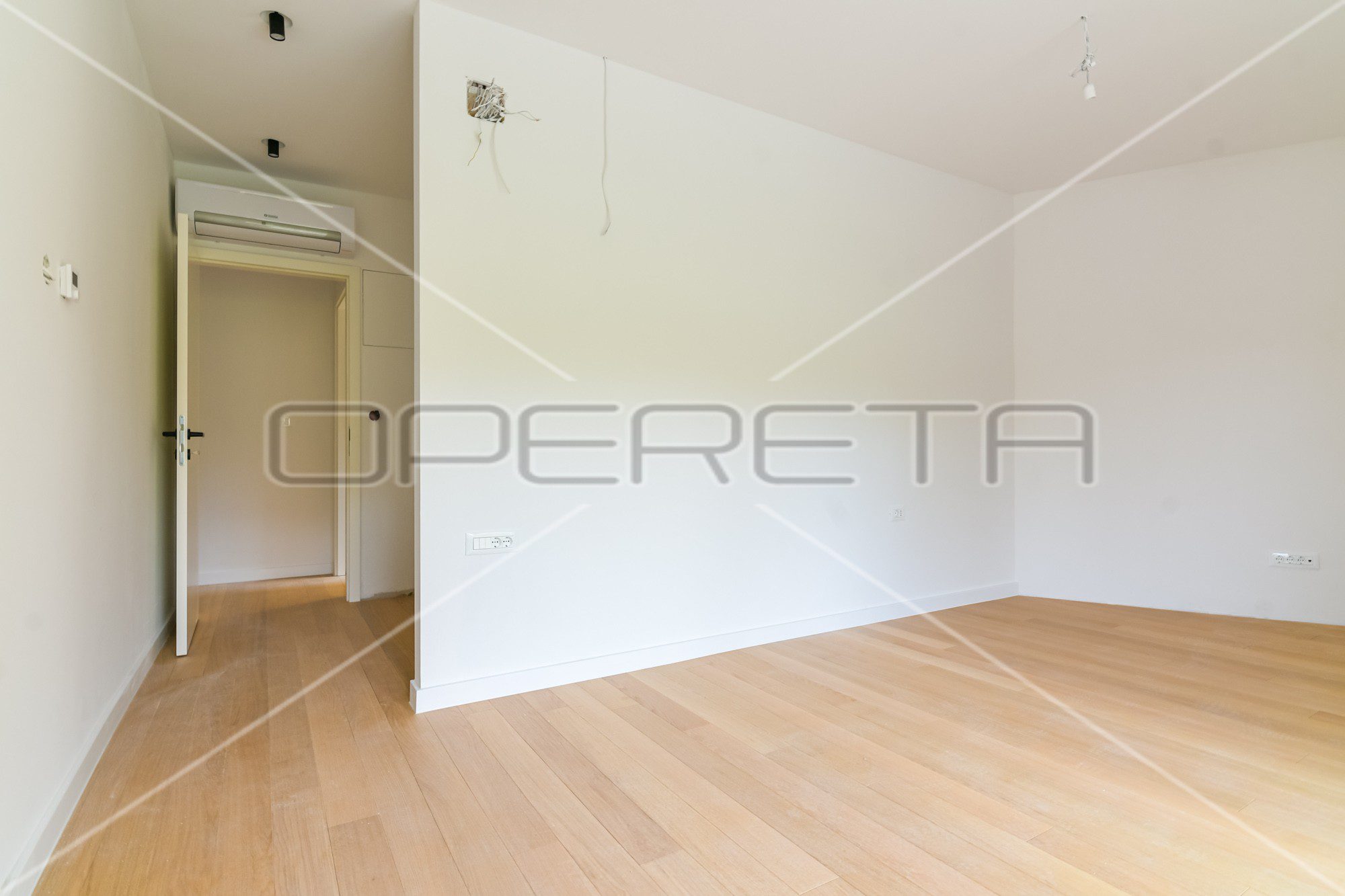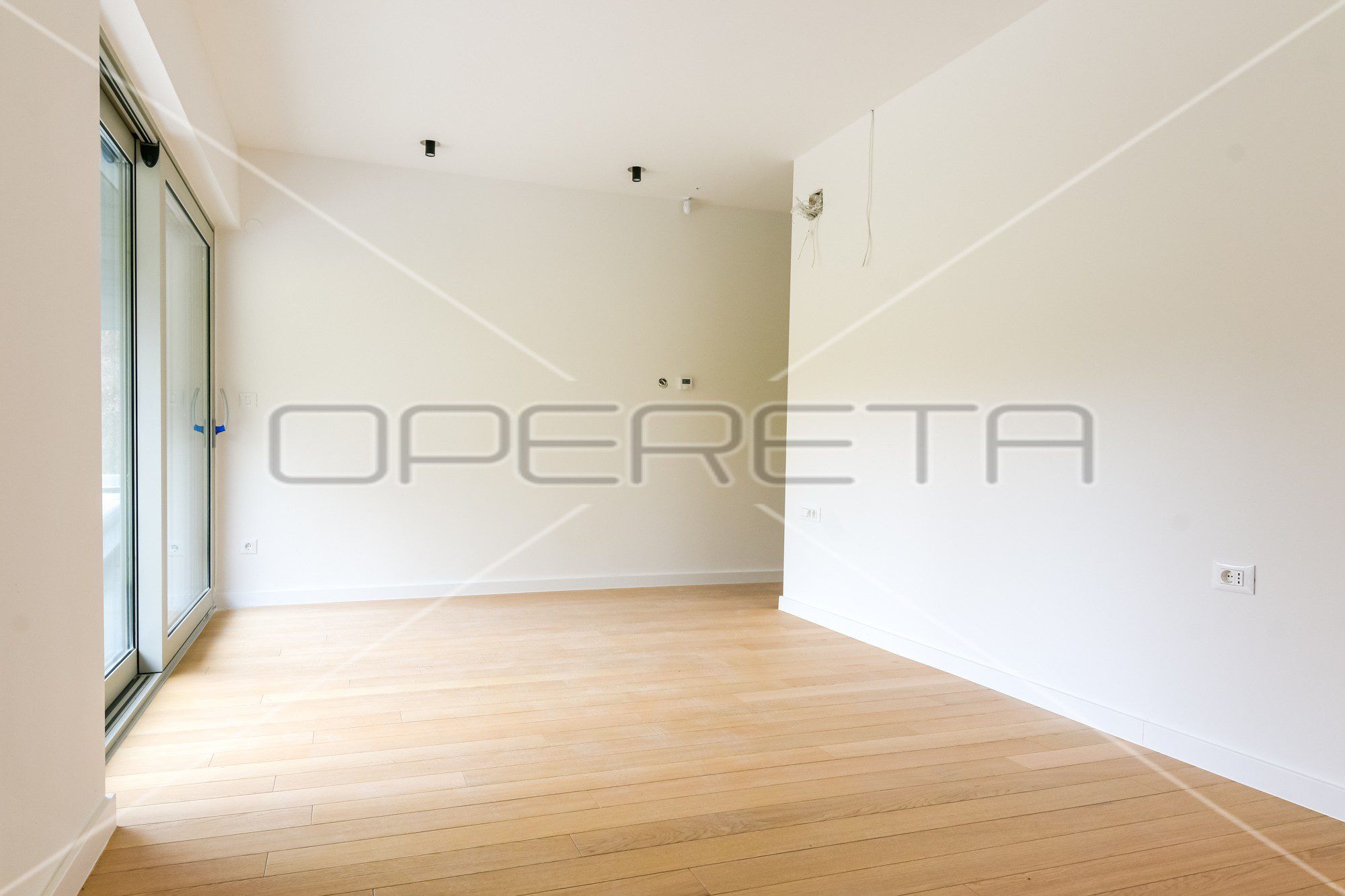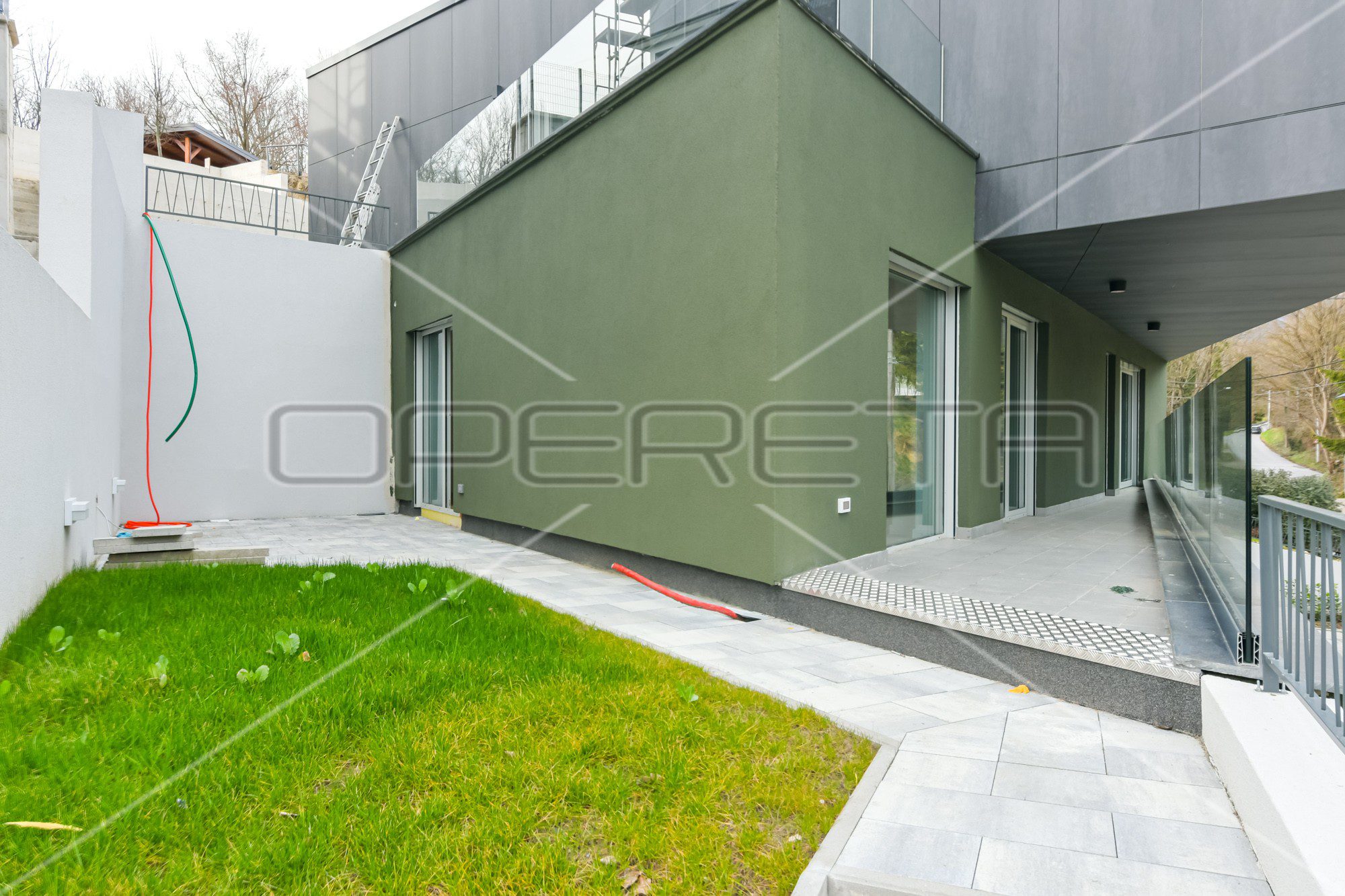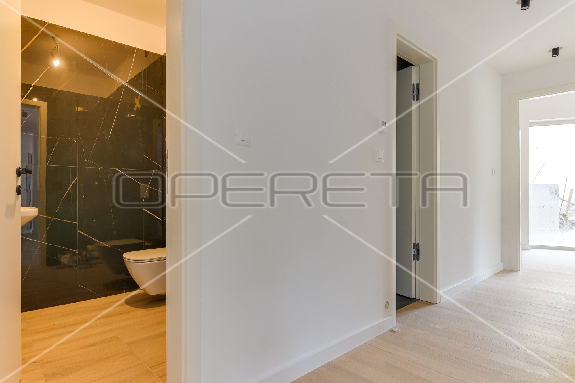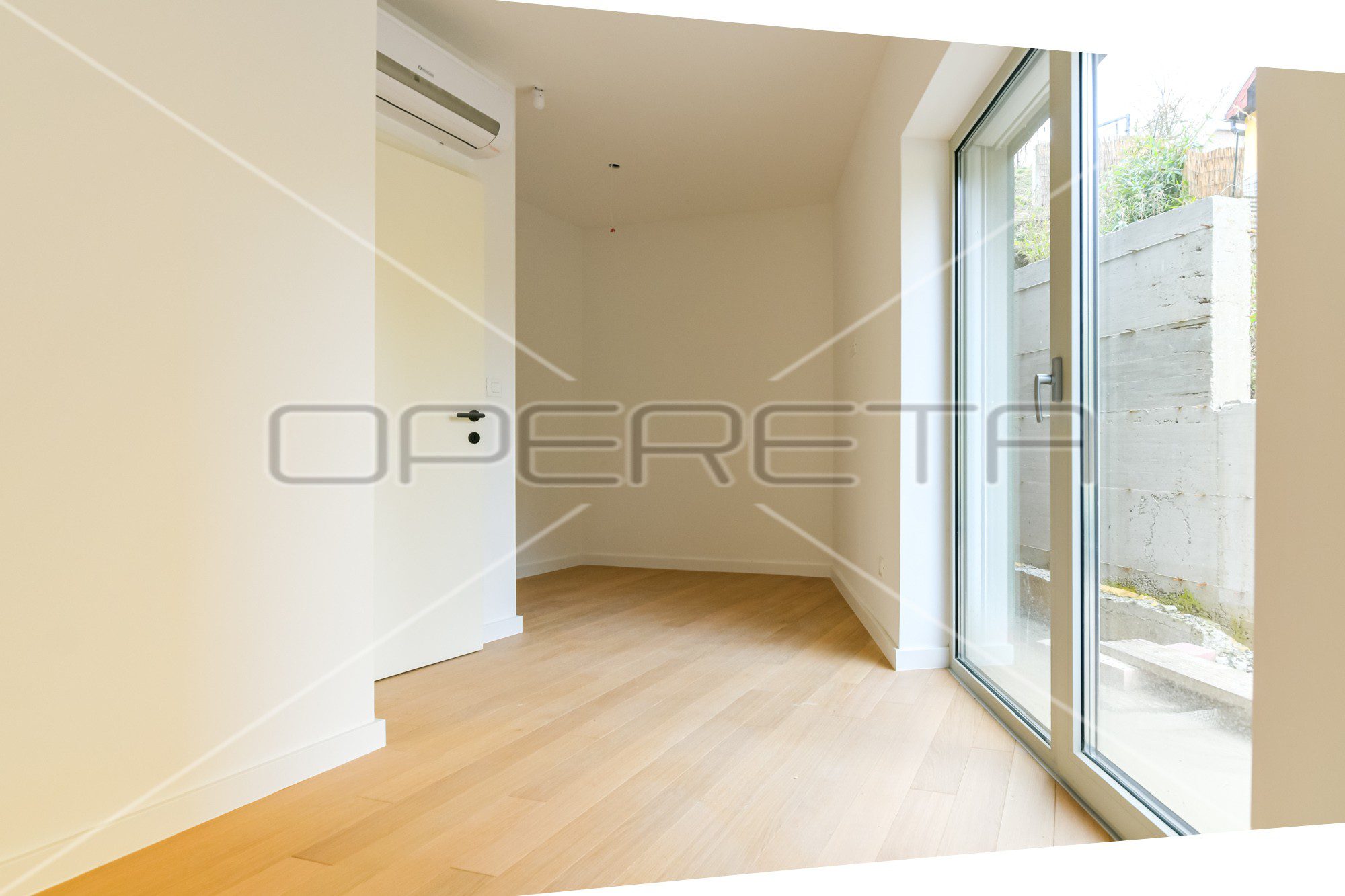 Urbana vila od svega dva stana. Stan se sastoji od ulaznog prostora, open space boravak/kuhinja, dvije kupaone, dvije spavaće sobe, terasa i vrt. Stanu također pripada garaža i vanjsko parking mjesto.